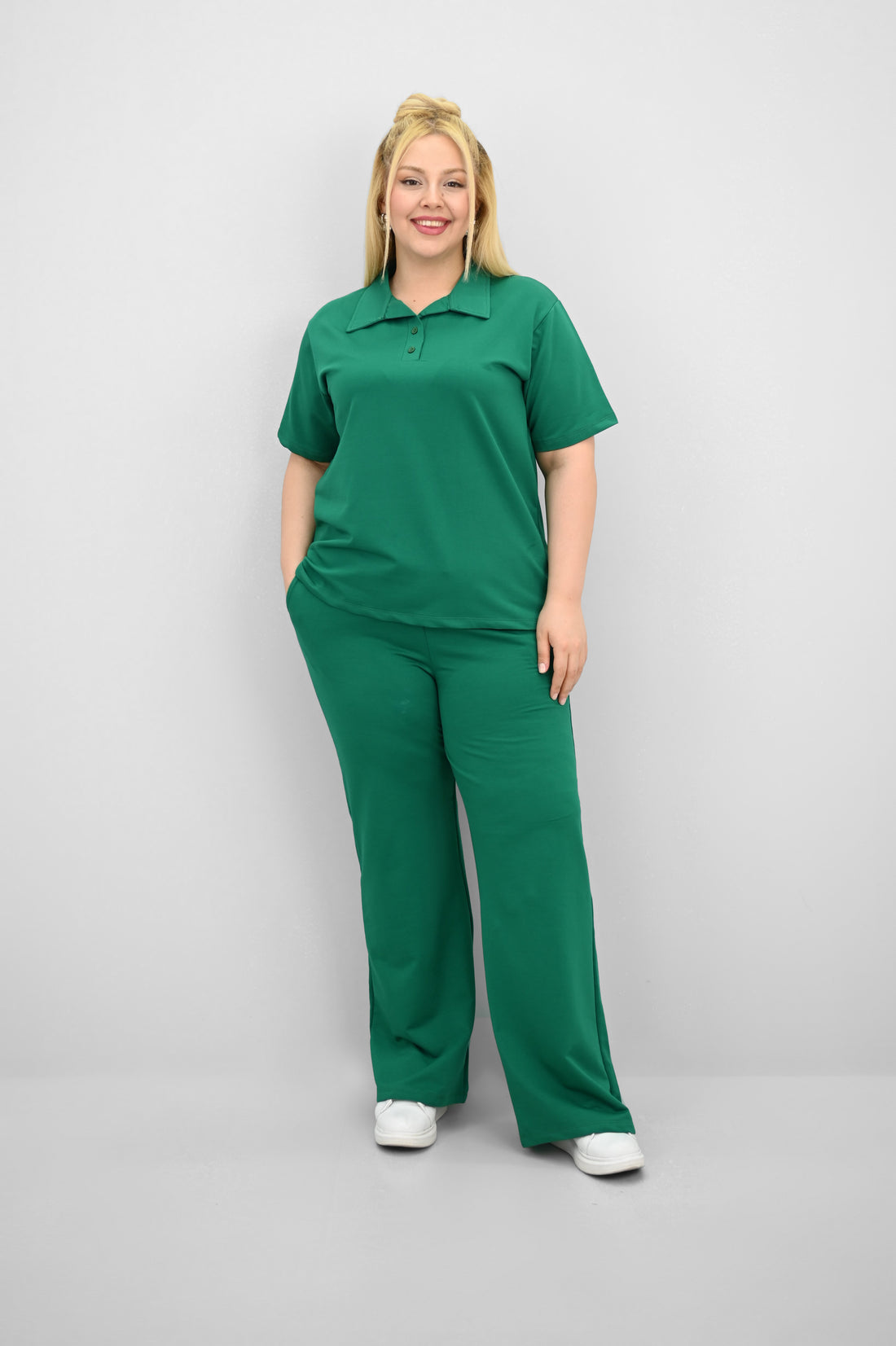 Kadın Büyük Beden Kısa Kollu Polo Yaka Eşofman Takımı 8188-25