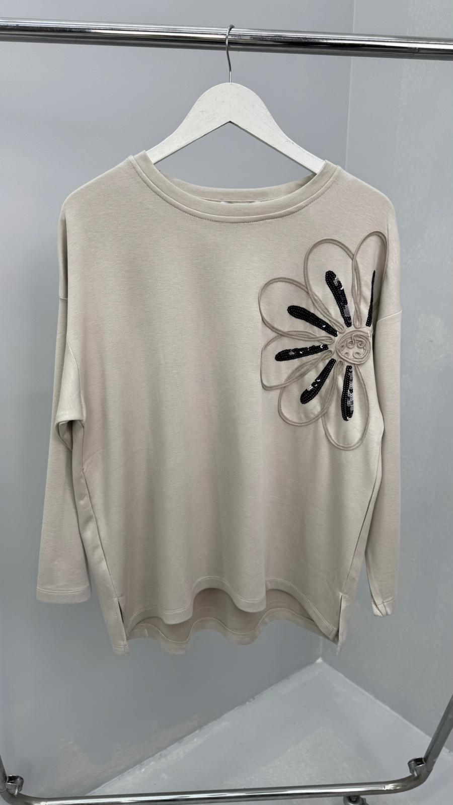 Kadın Büyük Beden Uzun Kollu Çiçek Desenli Pul Payetli Modal Kumaş Bluz 2021