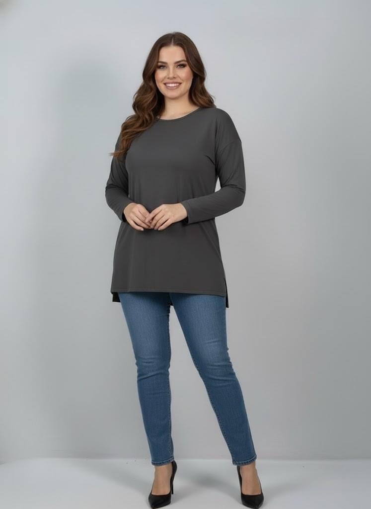 Kadın Büyük Beden Uzun Kollu Yırtmaçlı Basic Bluz 1984