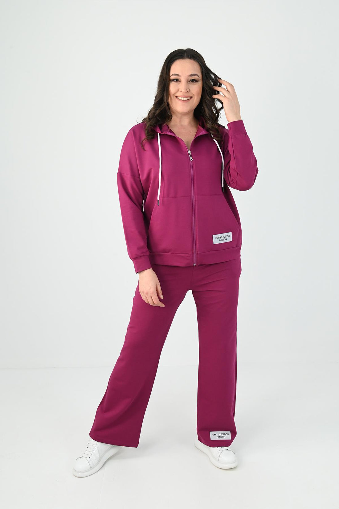 Kadın Büyük Beden Etiket Detaylı Kapüşonlu Eşofman Takımı 8077-24