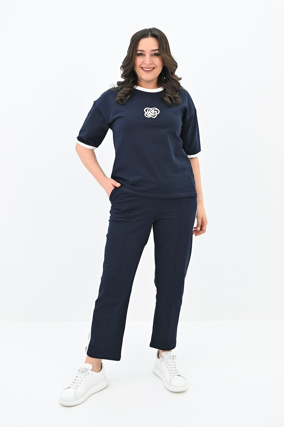 Kadın Sim Detaylı kısa Kollu Büyük Beden Eşofman Takımı 3687-23