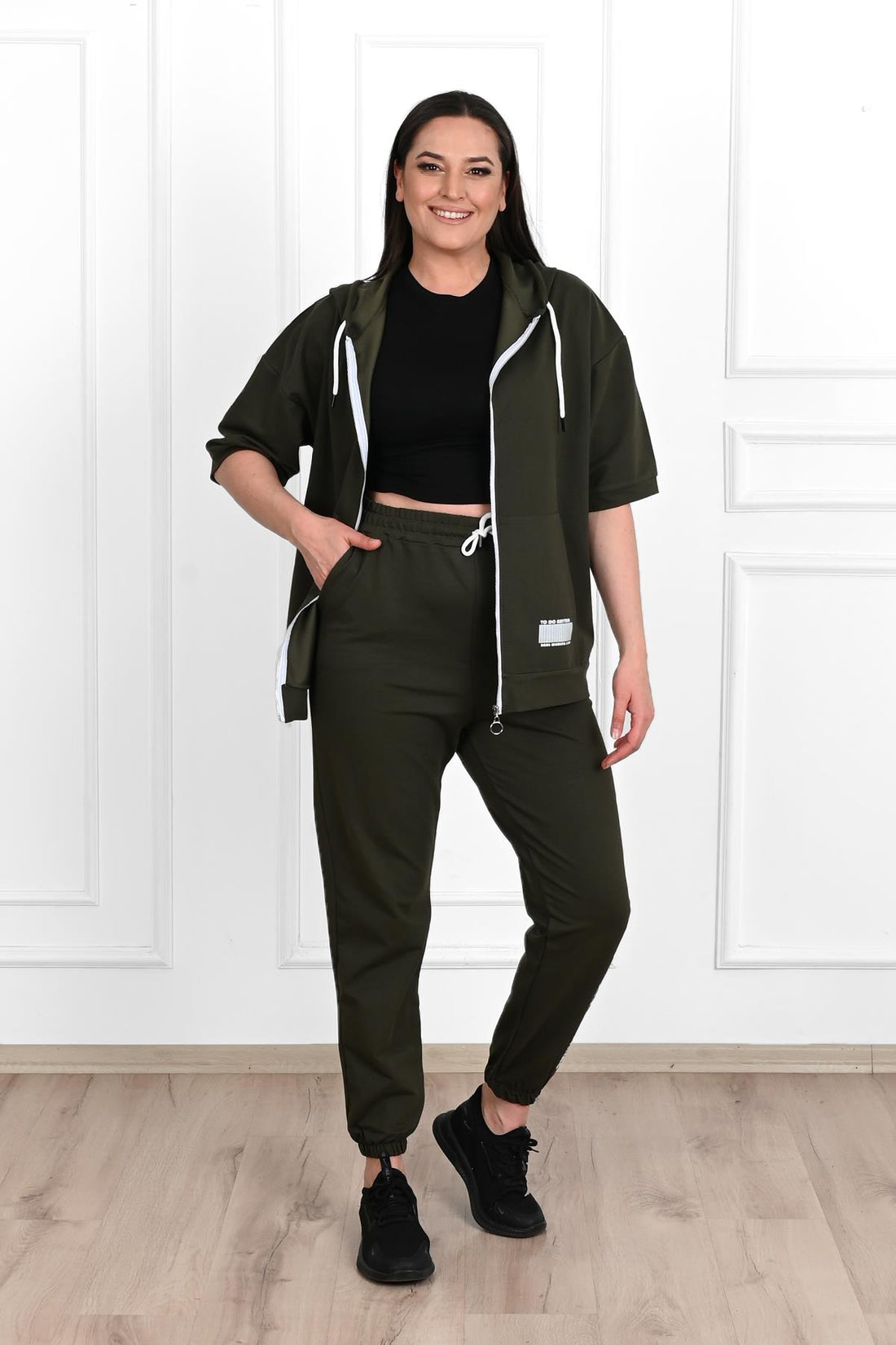 Kadın Kısa Kollu Kapüşonlu Büyük Beden Eşofman Takımı 3705-23