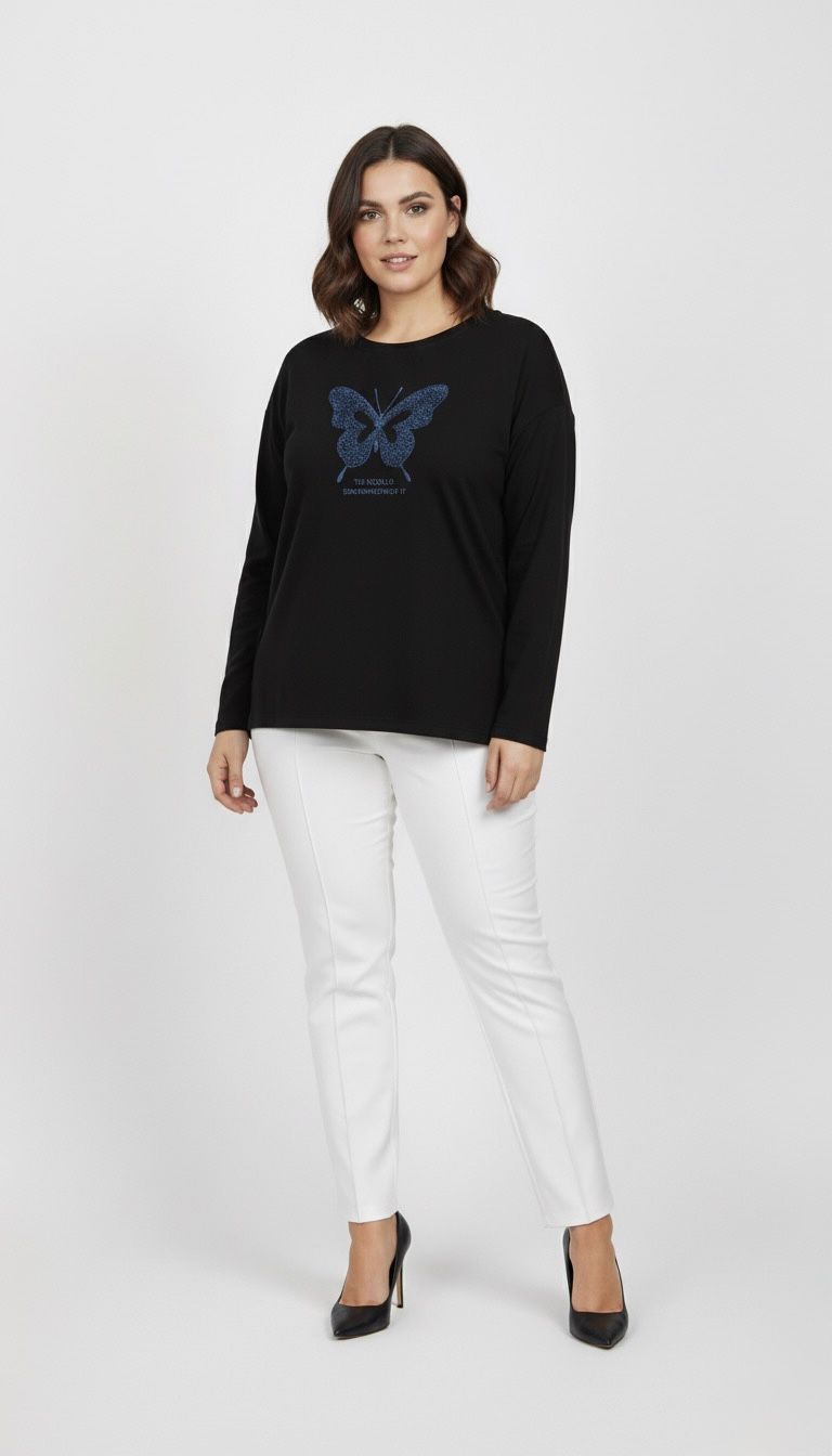 Kadın Büyük Beden Uzun Kollu Kelebek Desenli Modal Kumaş Bluz 2017-2018-26