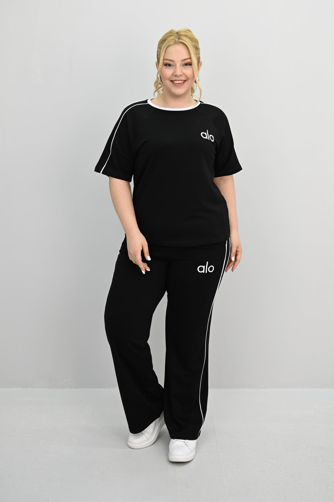 Kadın Büyük Beden Truvakar Kol Çiçek Detaylı İki İplik Eşofman Takımı 8224-26