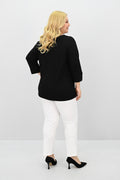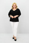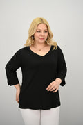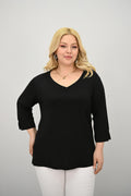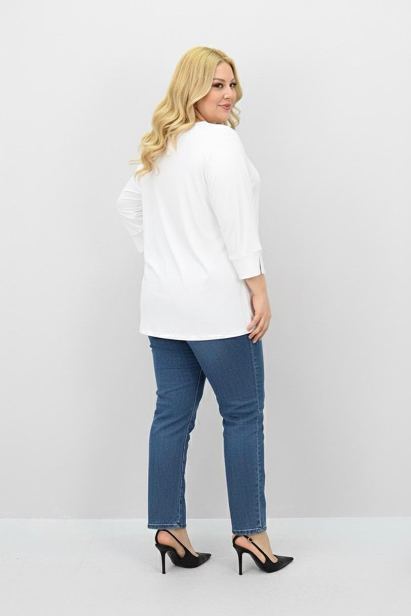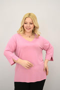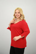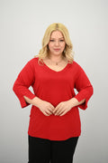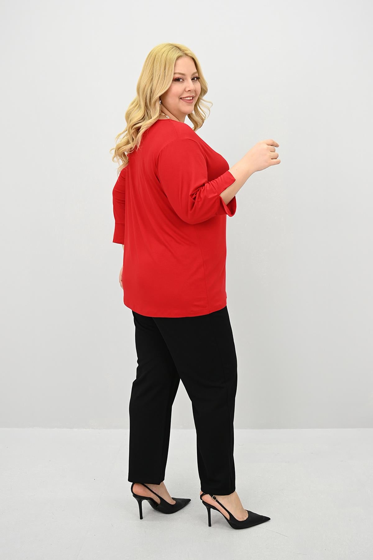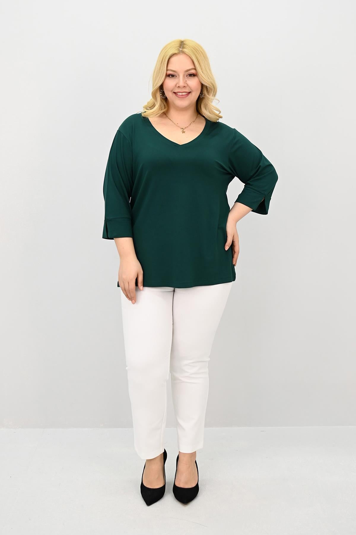 Şıklığı ve rahatlığı bir araya getiren bu bluz, 40-50 bedene uyumludur. Günlük kombinlerden şık davetlere kadar geniş bir kullanım alanı sunar. V yaka bantlı model ile modern ve zarif bir duruş sunar. Kol uçlarında yırtmaç detayı sayesinde hareket özgürlüğü sağlar. Rahat kalıp ile vücudu sıkmadan konforlu bir kullanım sunar. Viskon kumaş dokusu sayesinde hafif ve nefes alabilen bir yapıya sahiptir. Manken ’in üzerindeki beden 44 bedendir. (Bedenler arası +/- 2cm fark olmaktadır.) Model Ölçüleri Boy: 1,80 Kilo: 90 Göğüs: 90 Bel: 89 Basen: 116