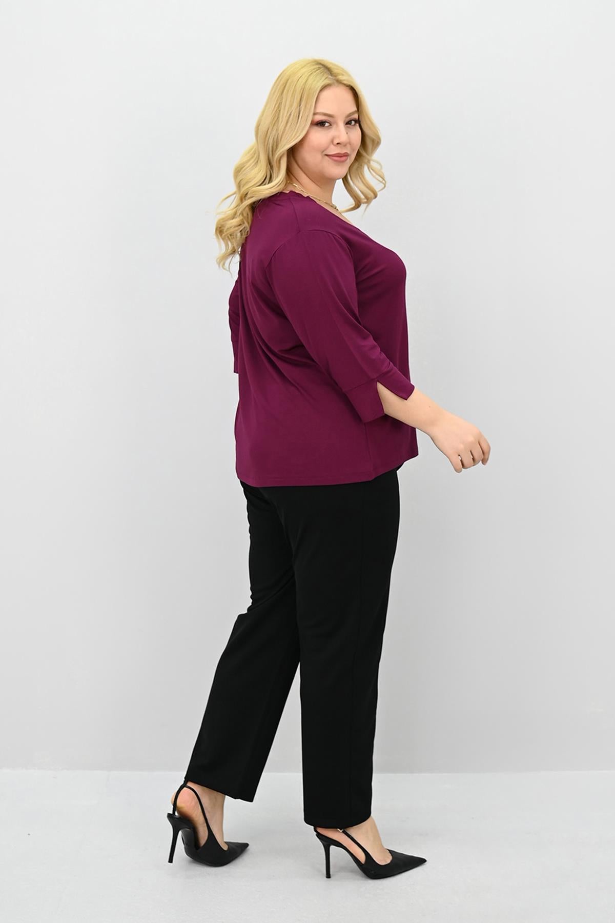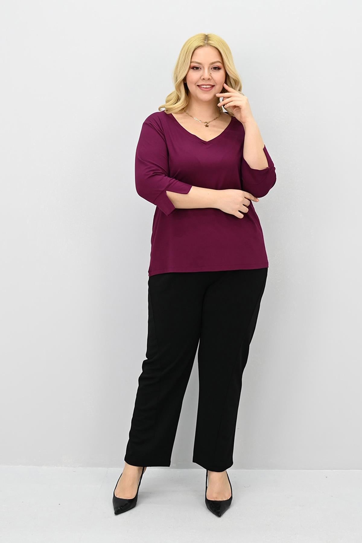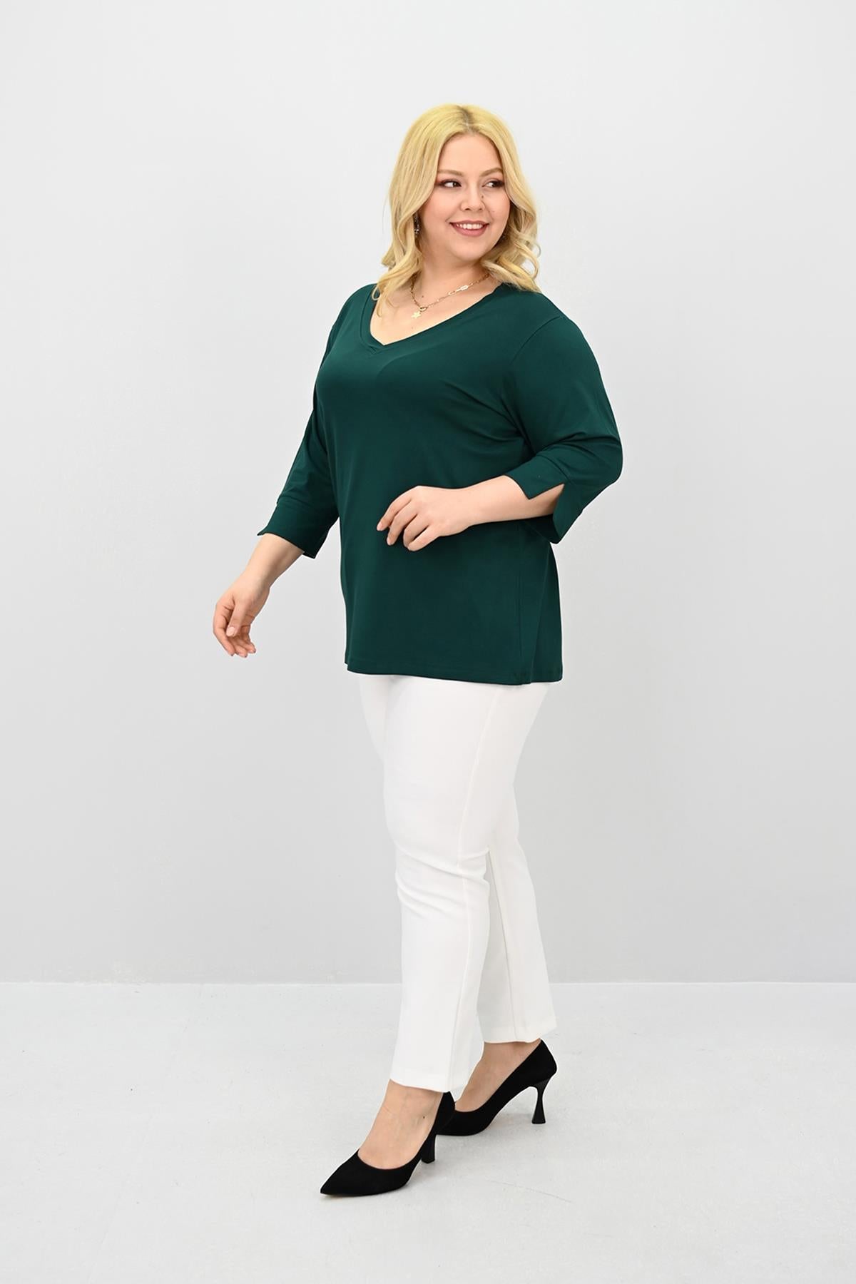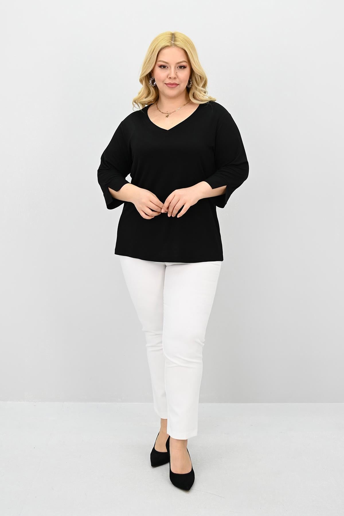 Kadın Büyük Beden Bantlı V yaka Bluz 1919-25