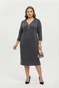 Kadın Büyük Beden Fermuar Yakalı Truvakar Kol Pamuklu Elbise 5440-26
