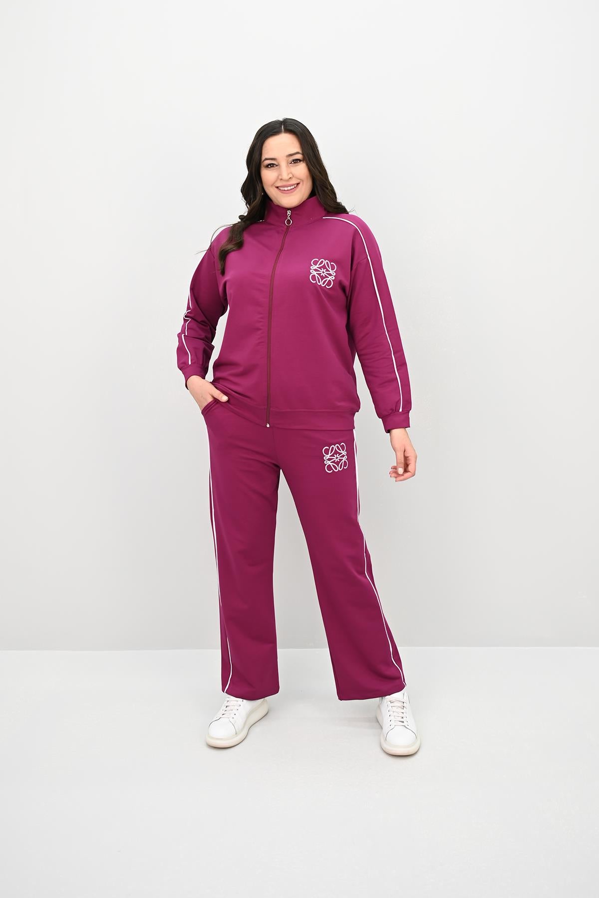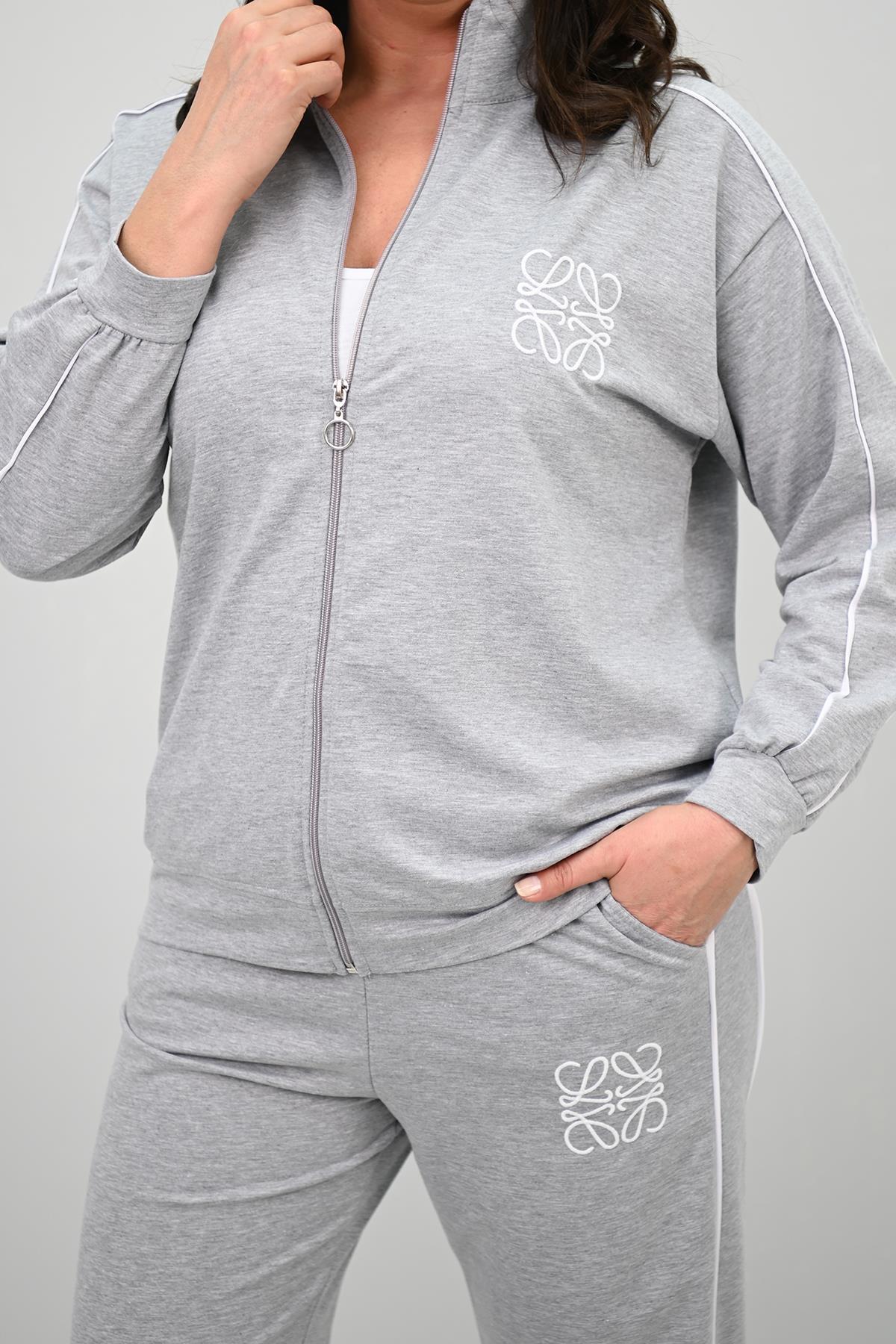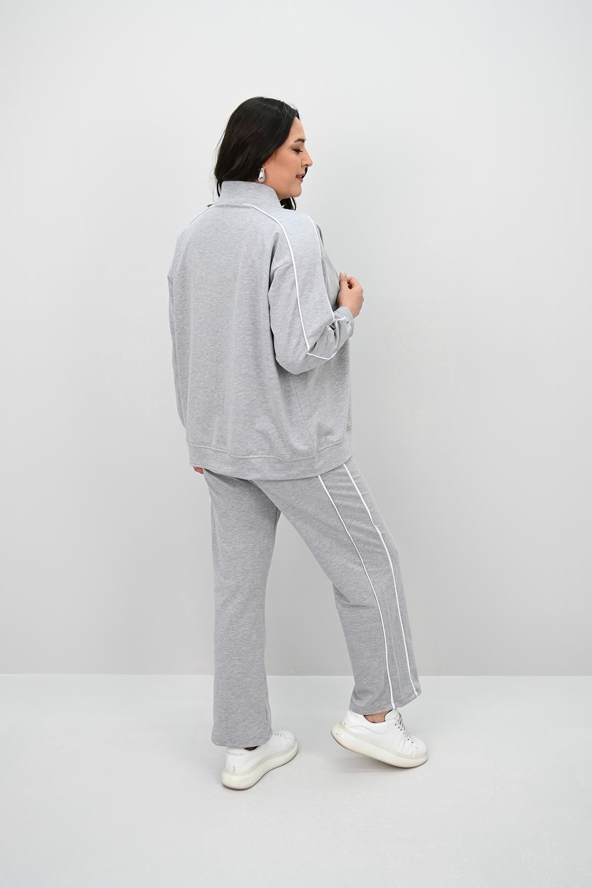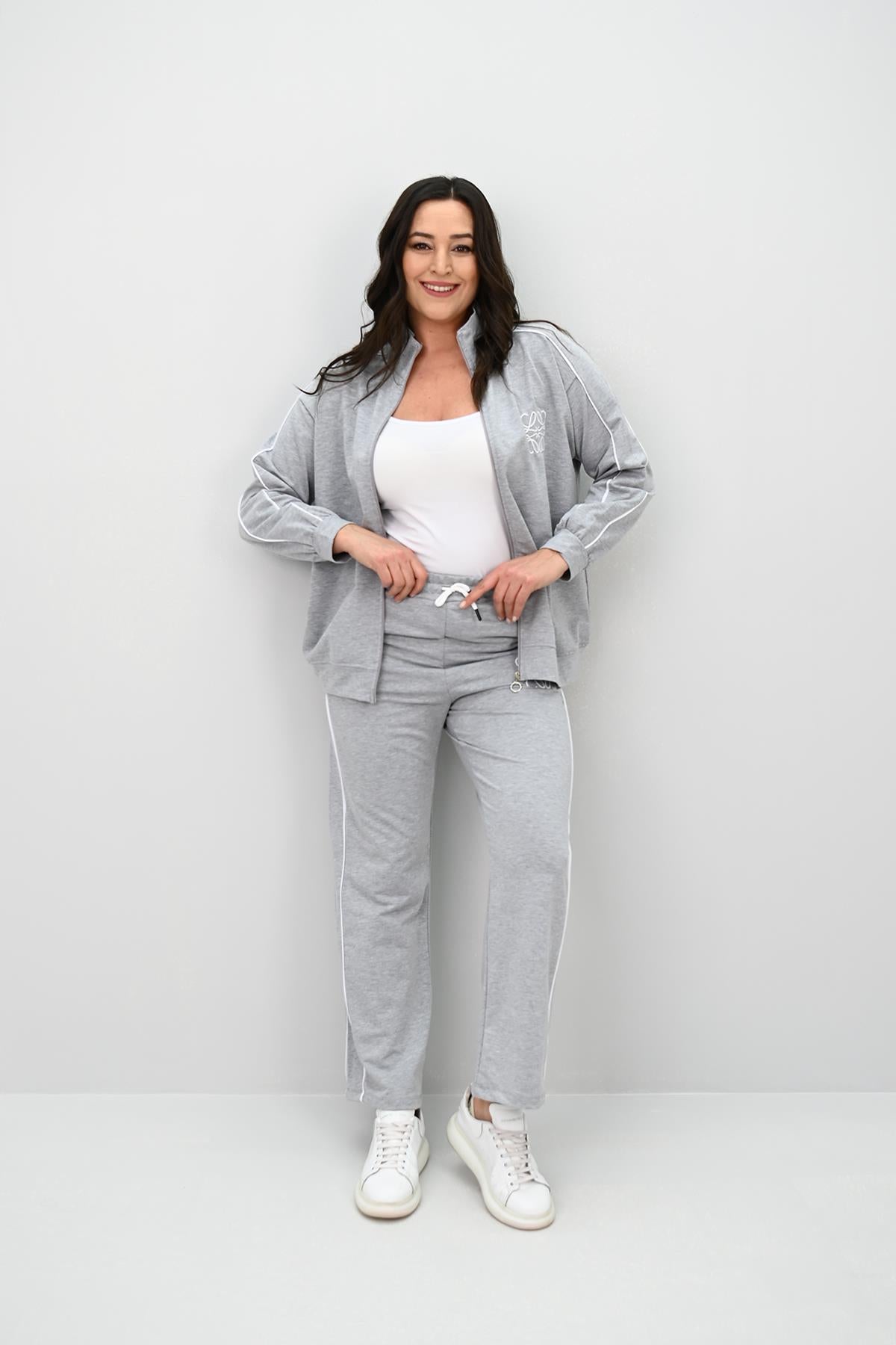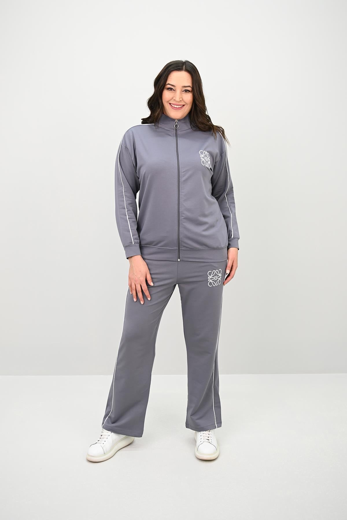 Kadın Büyük Beden Fermuarlı İki İplik İşleme Detaylı Eşofman Takımı 8152-25-1