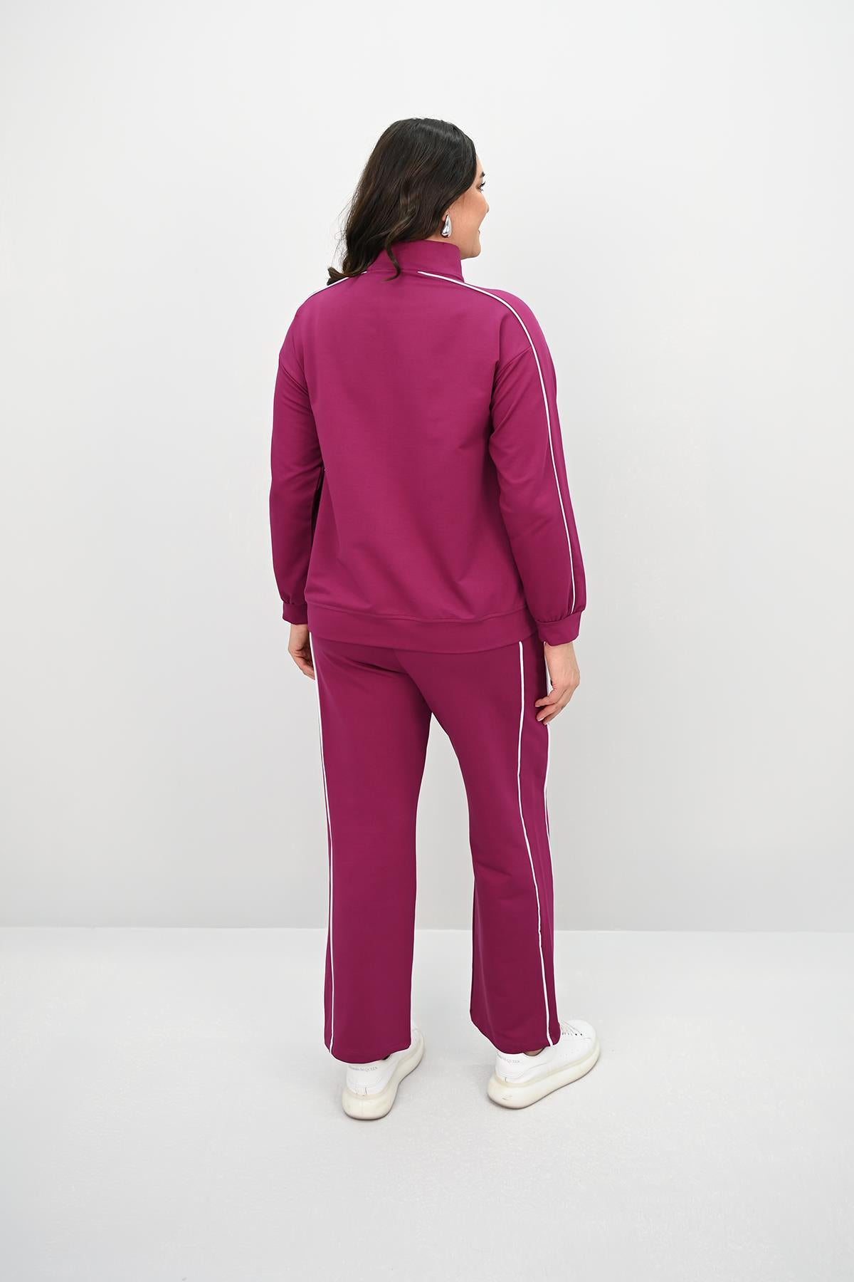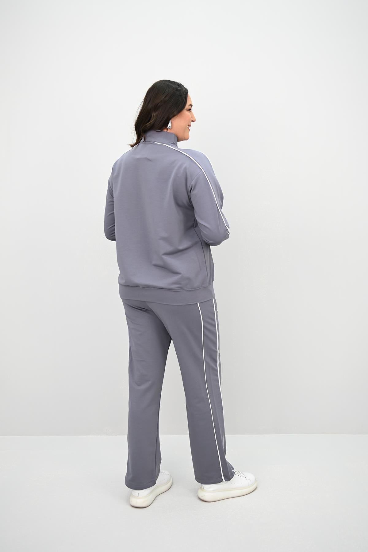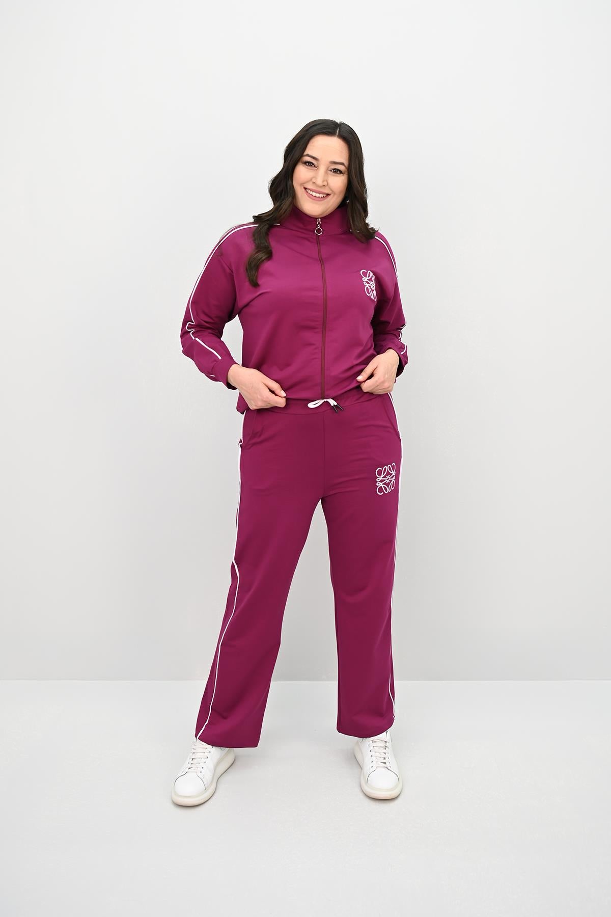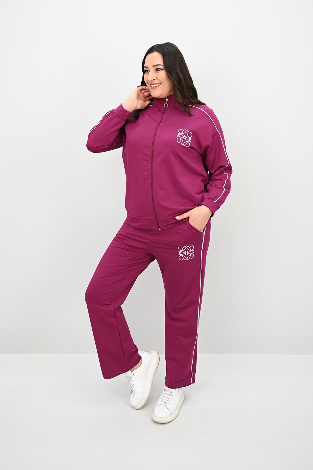 Kadın Büyük Beden Fermuarlı İki İplik İşleme Detaylı Eşofman Takımı 8152-25-1