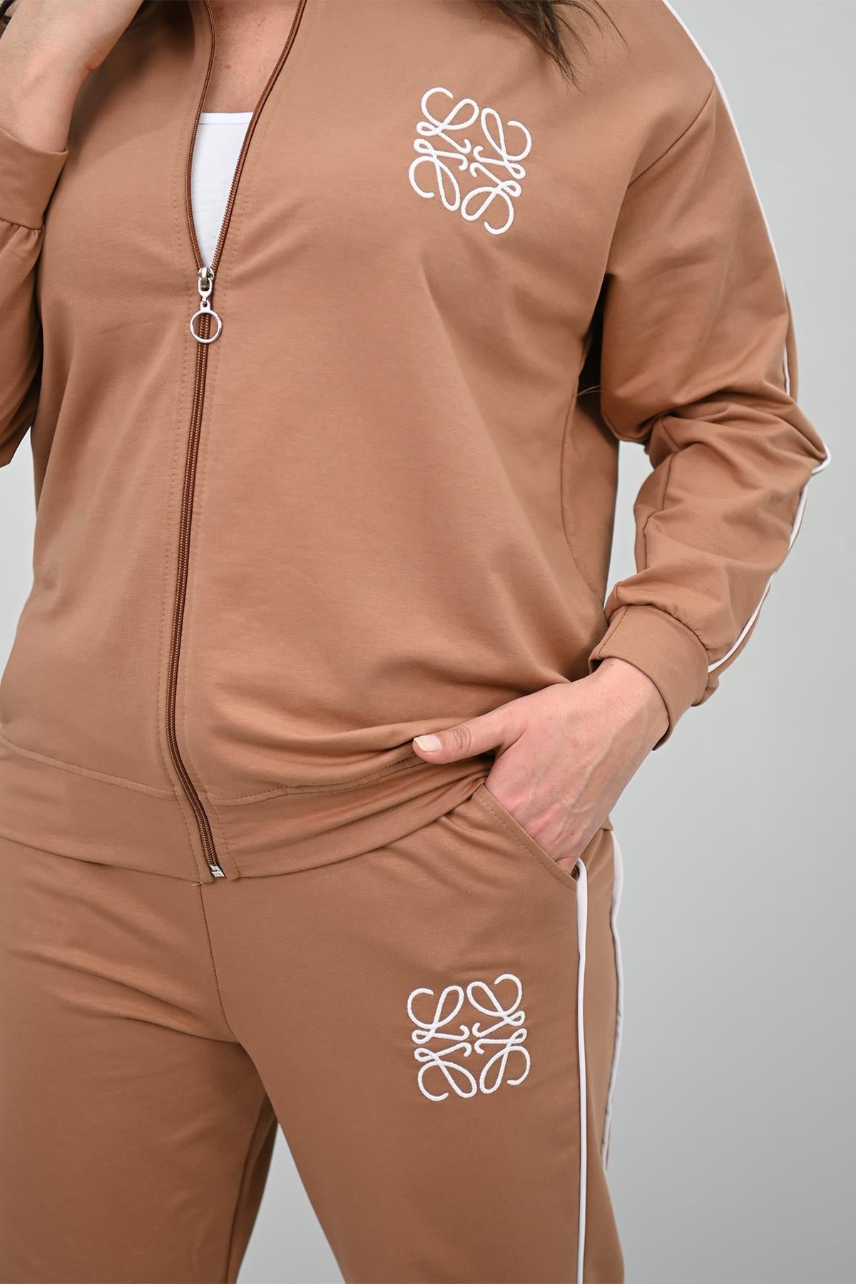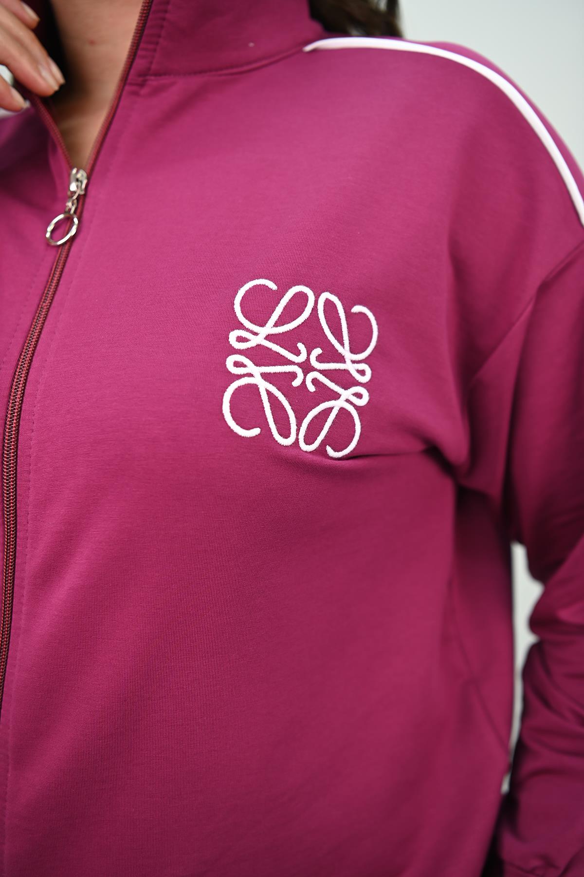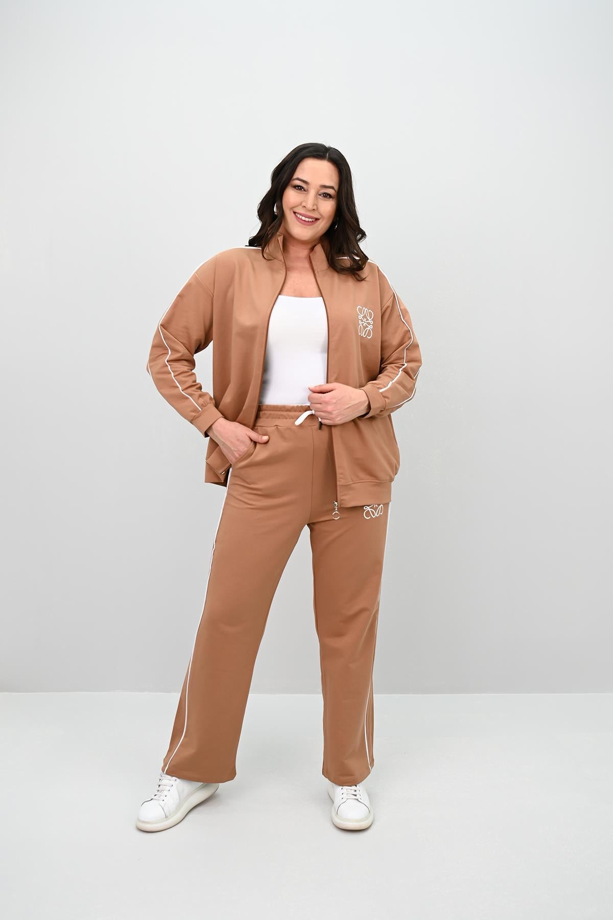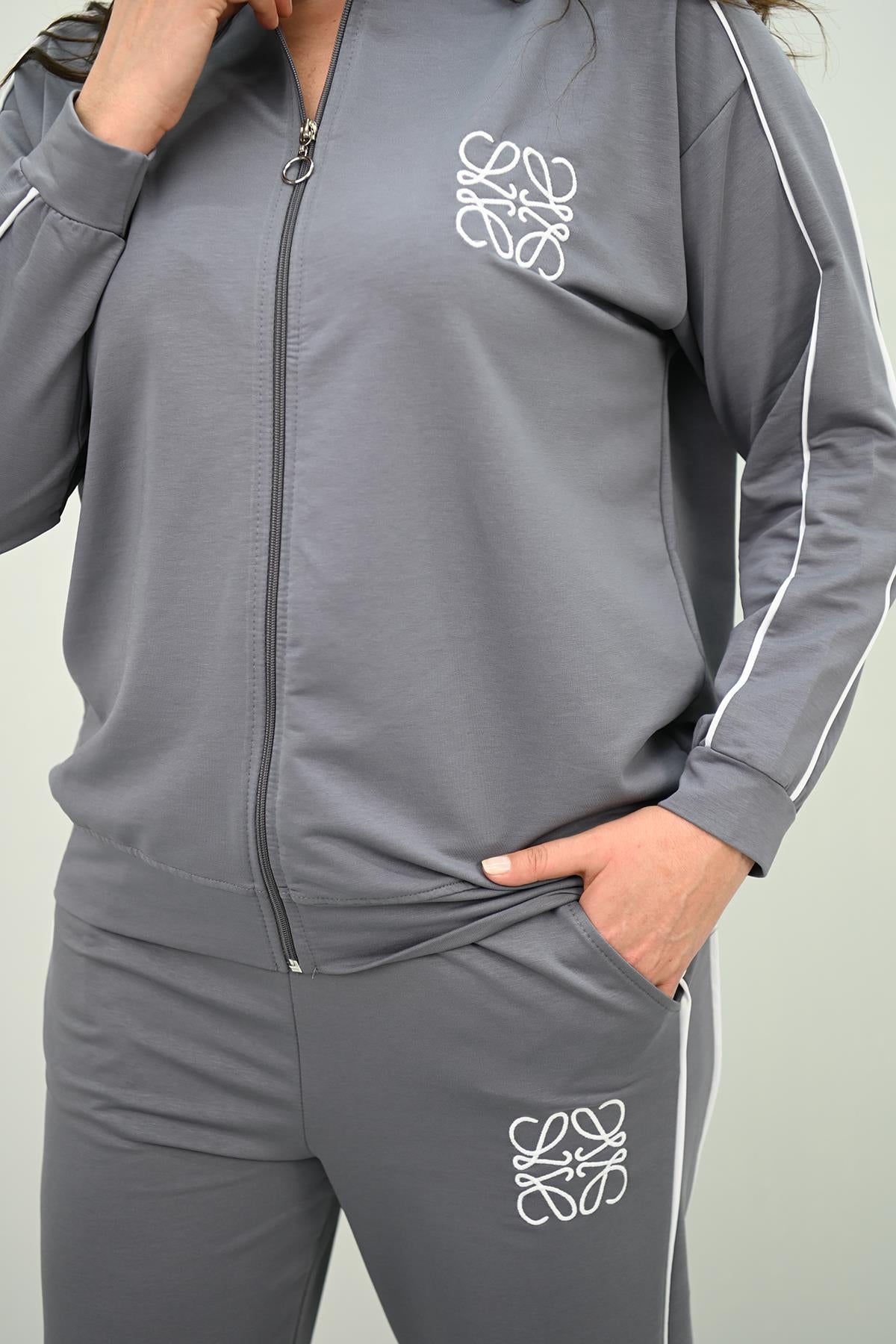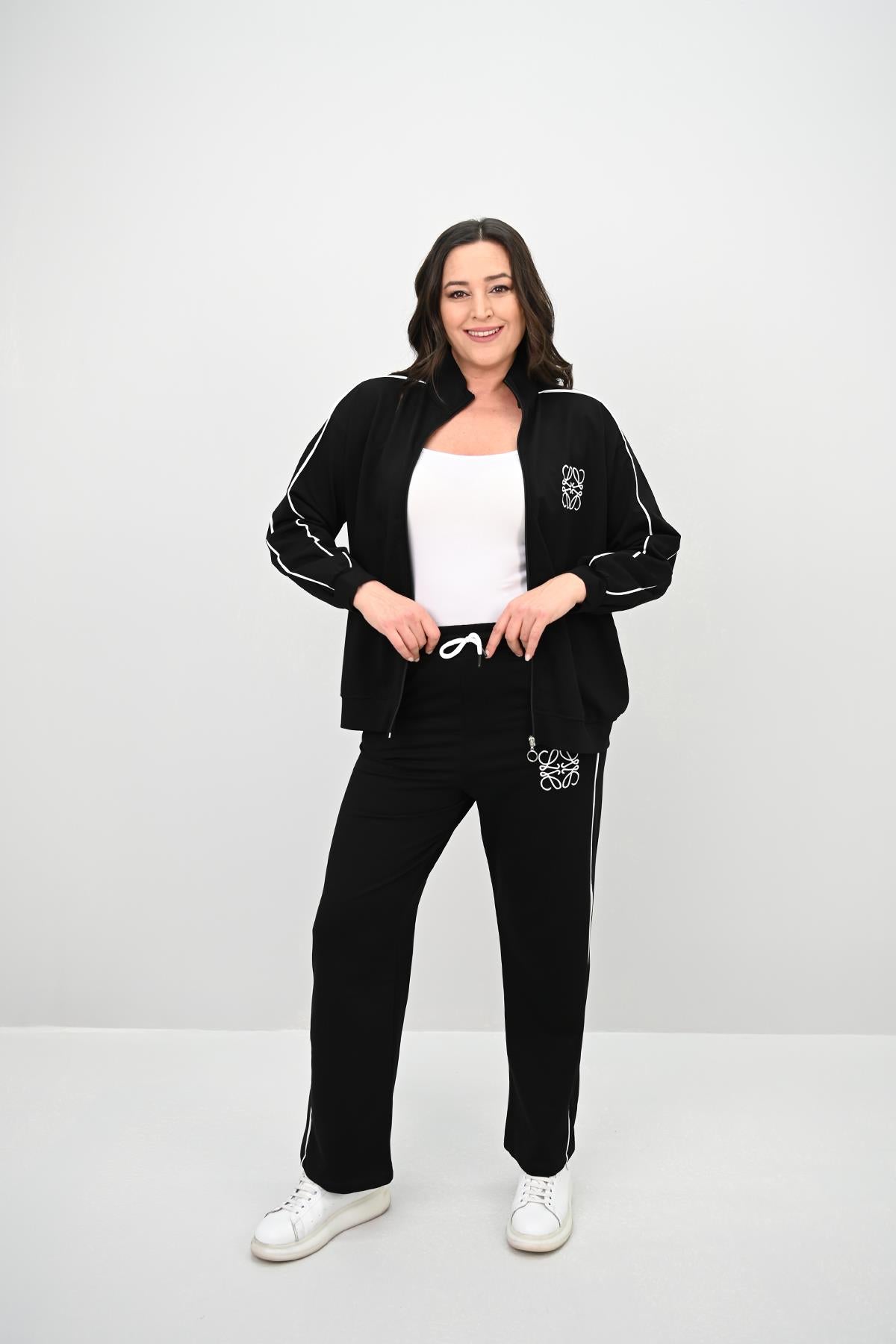 Kadın Büyük Beden Fermuarlı İki İplik İşleme Detaylı Eşofman Takımı 8152-25-1