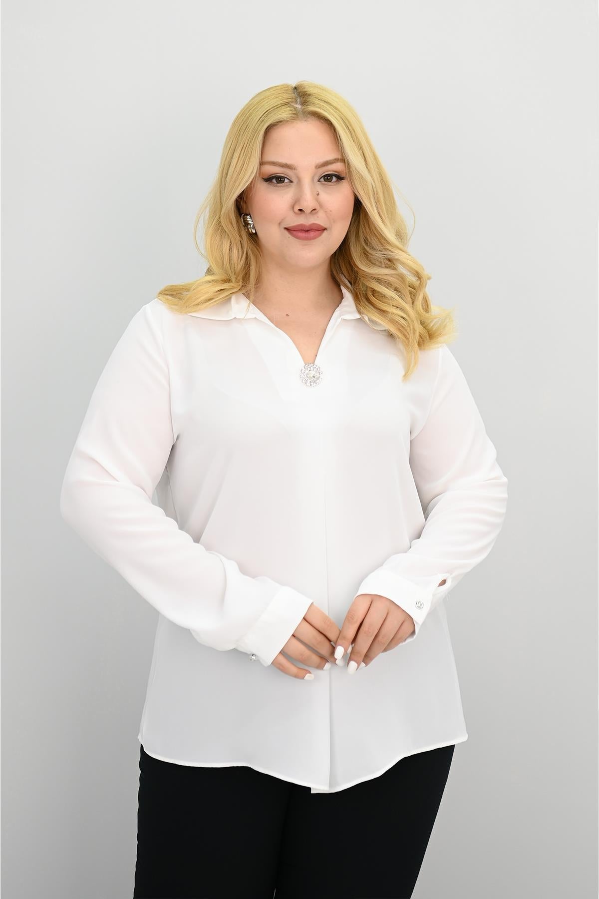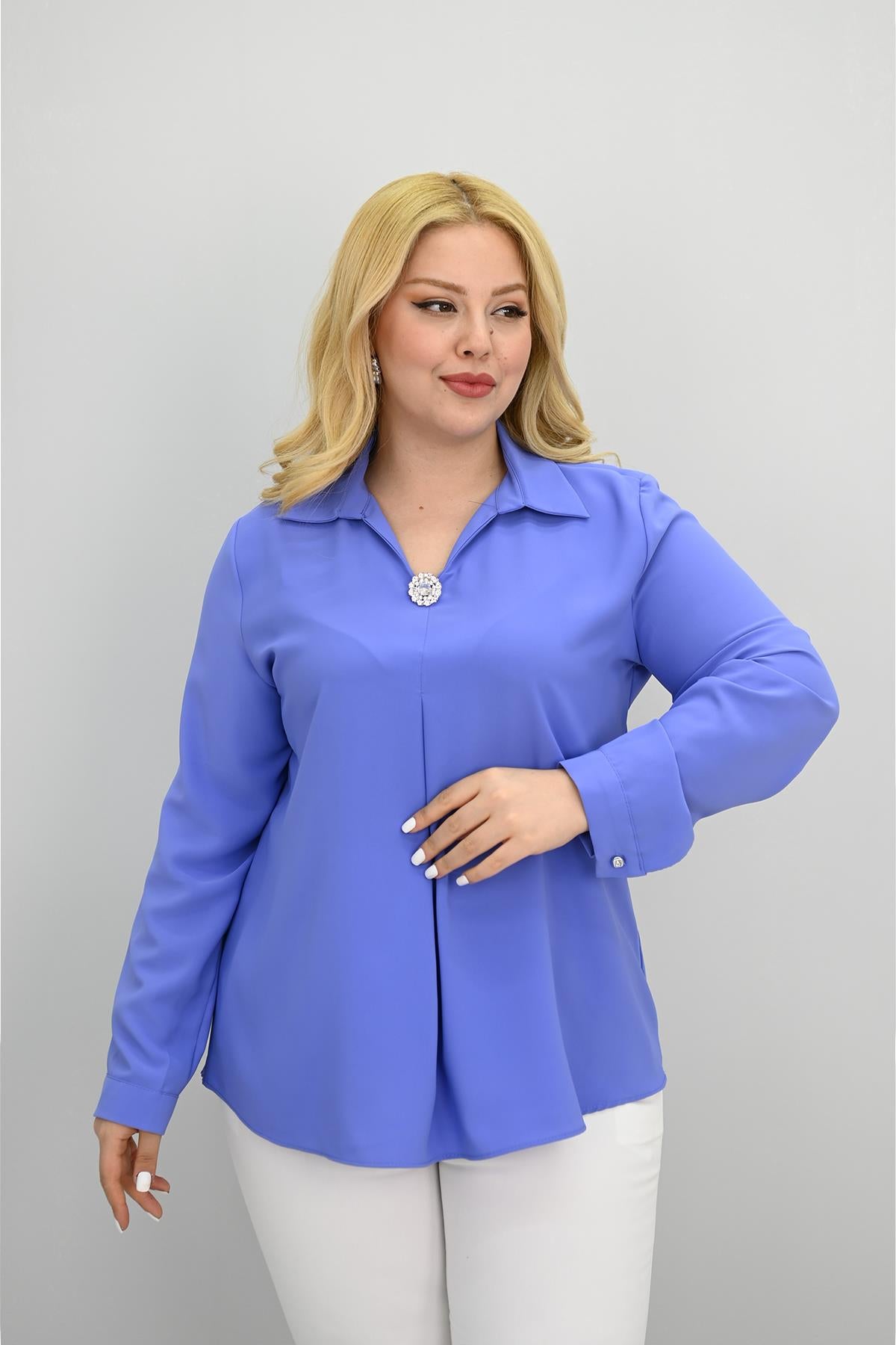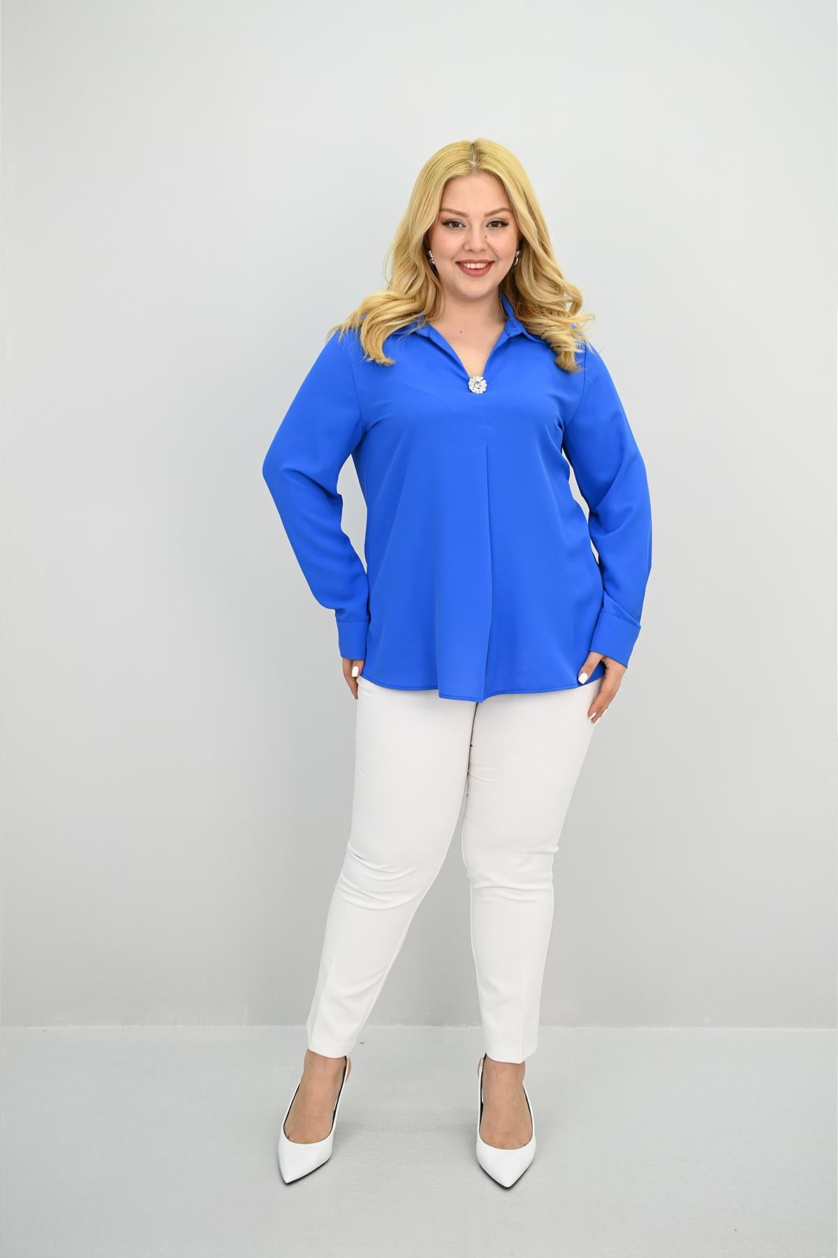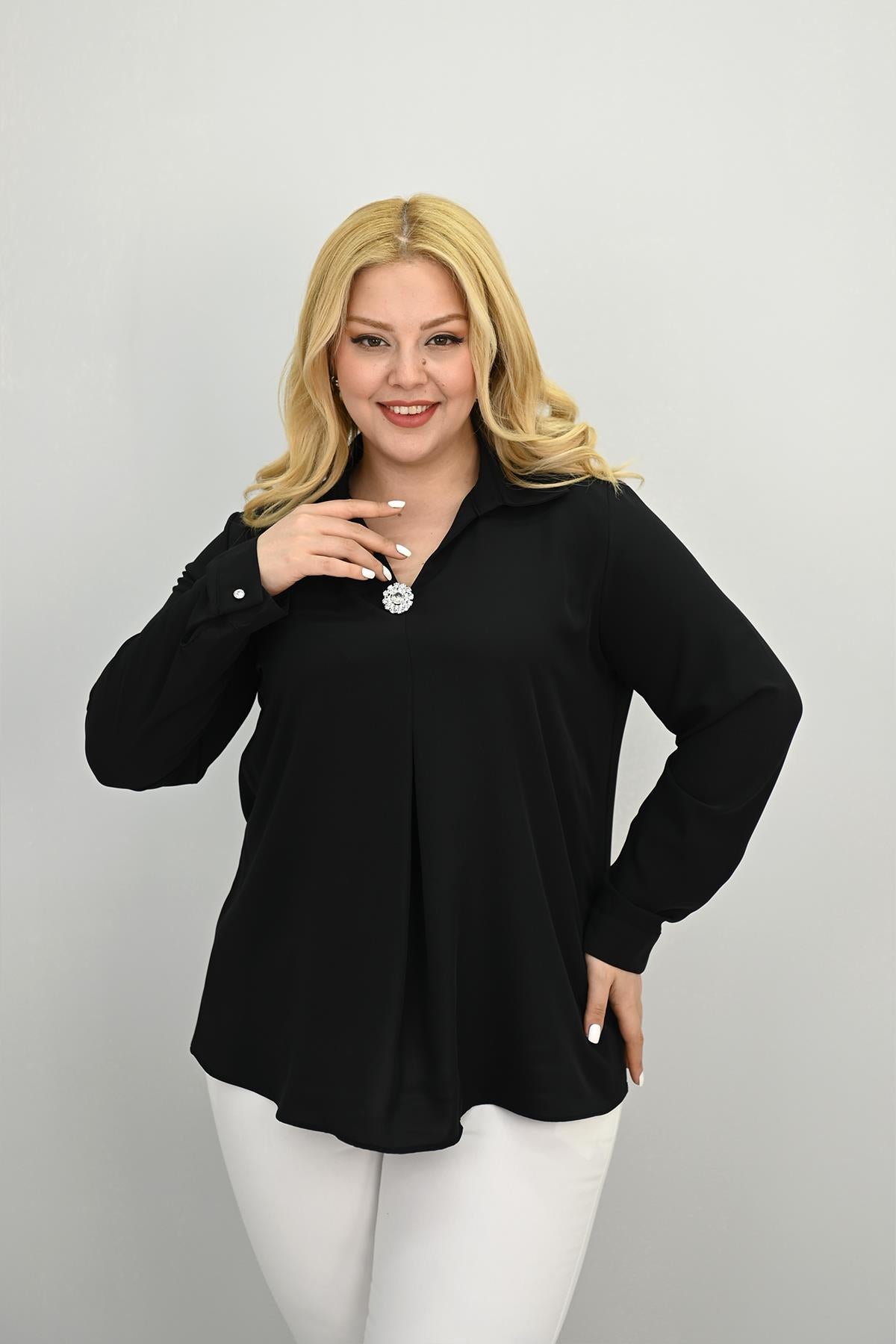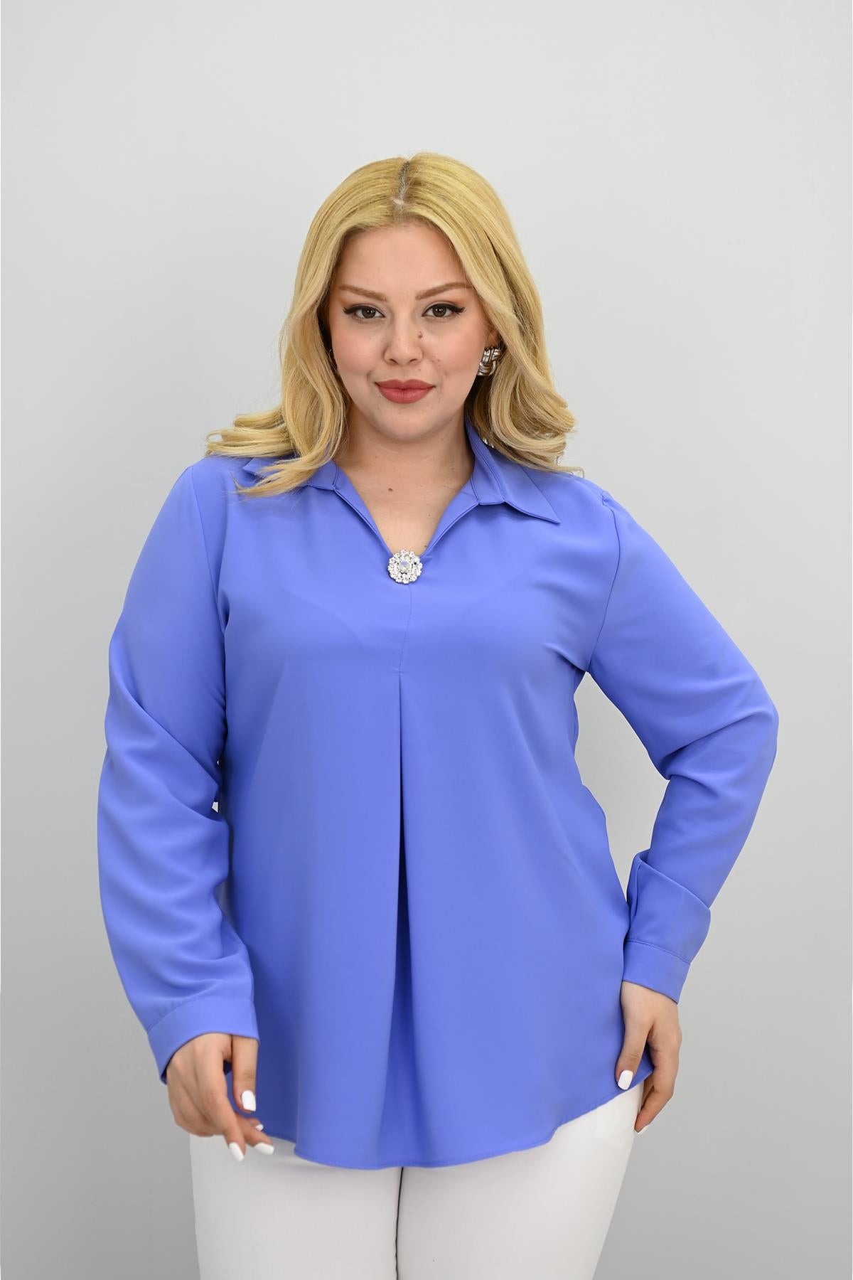 Kadın Büyük Beden Gömlek Yaka Broş Detaylı Bluz 0032-25