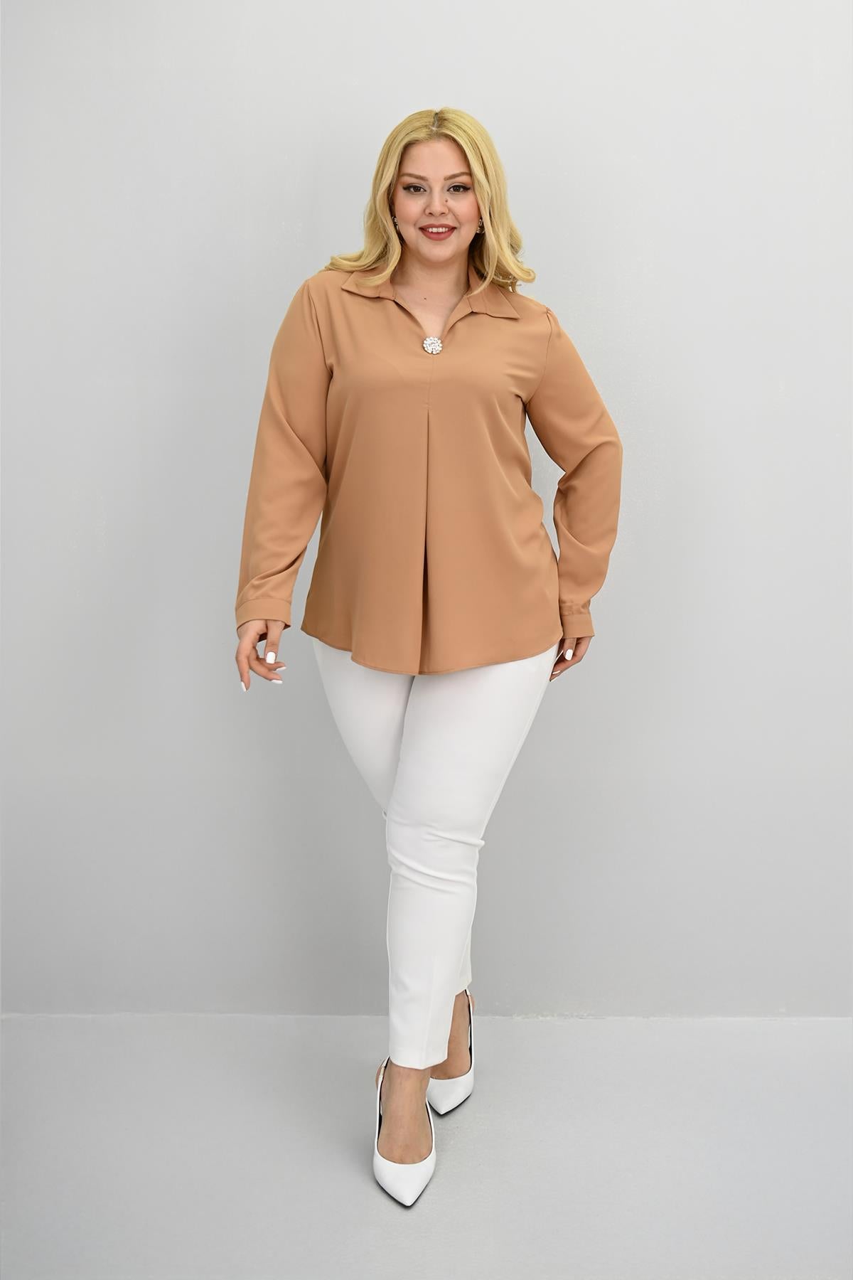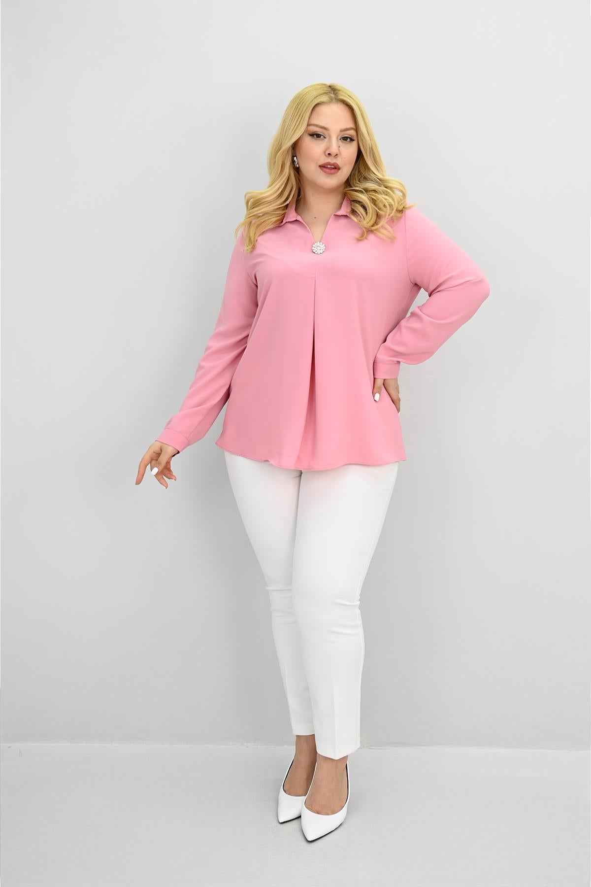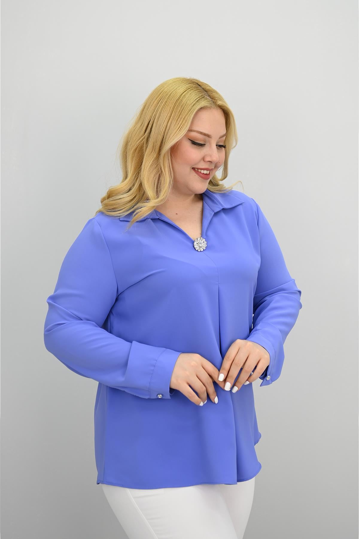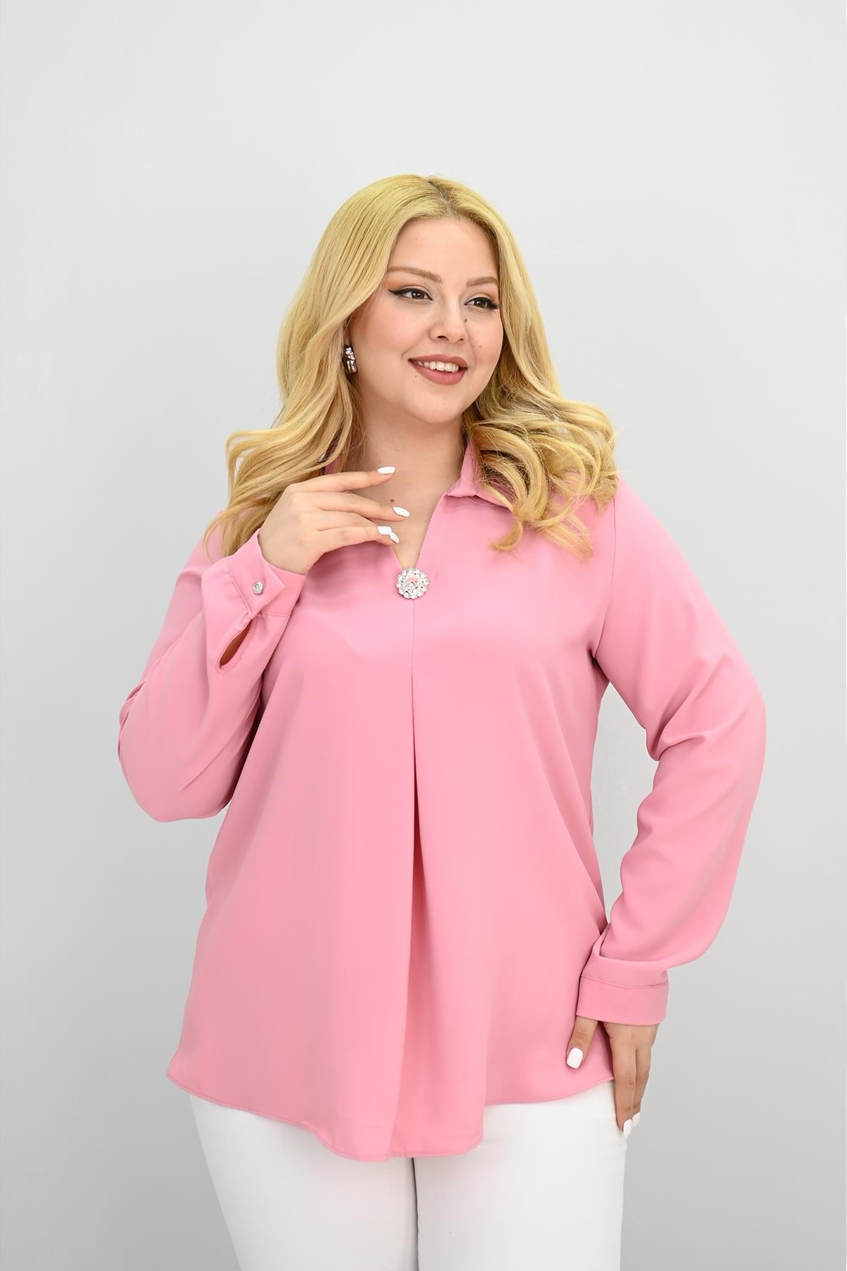 Kadın Büyük Beden Gömlek Yaka Broş Detaylı Bluz 0032-25