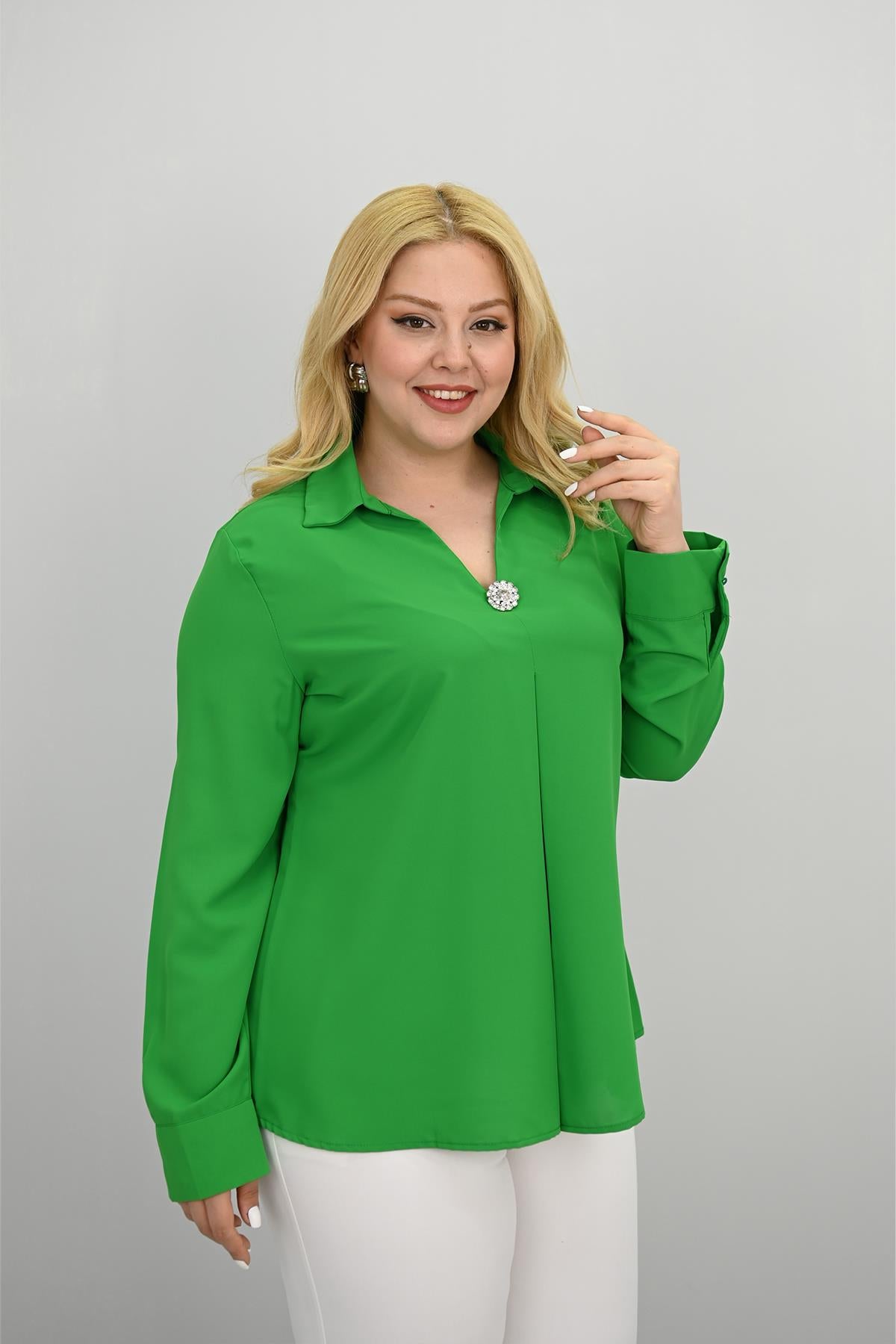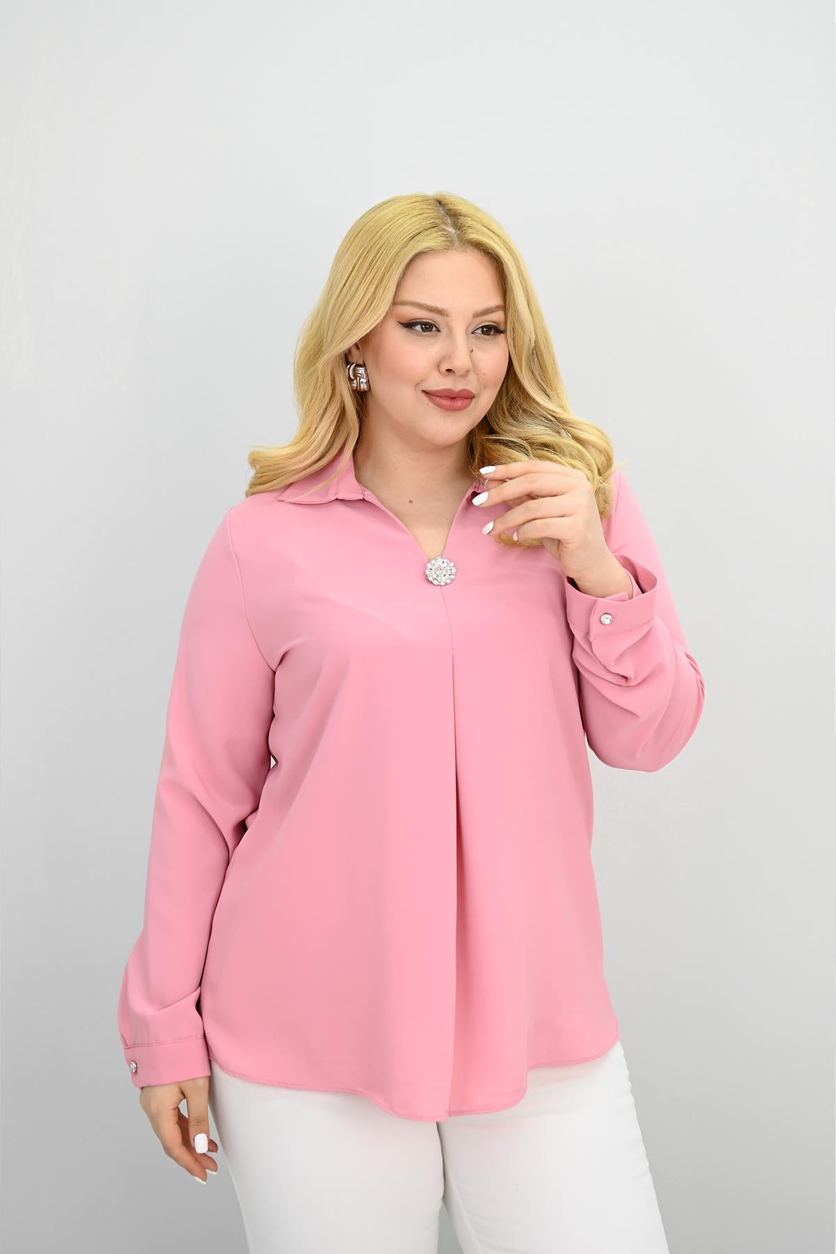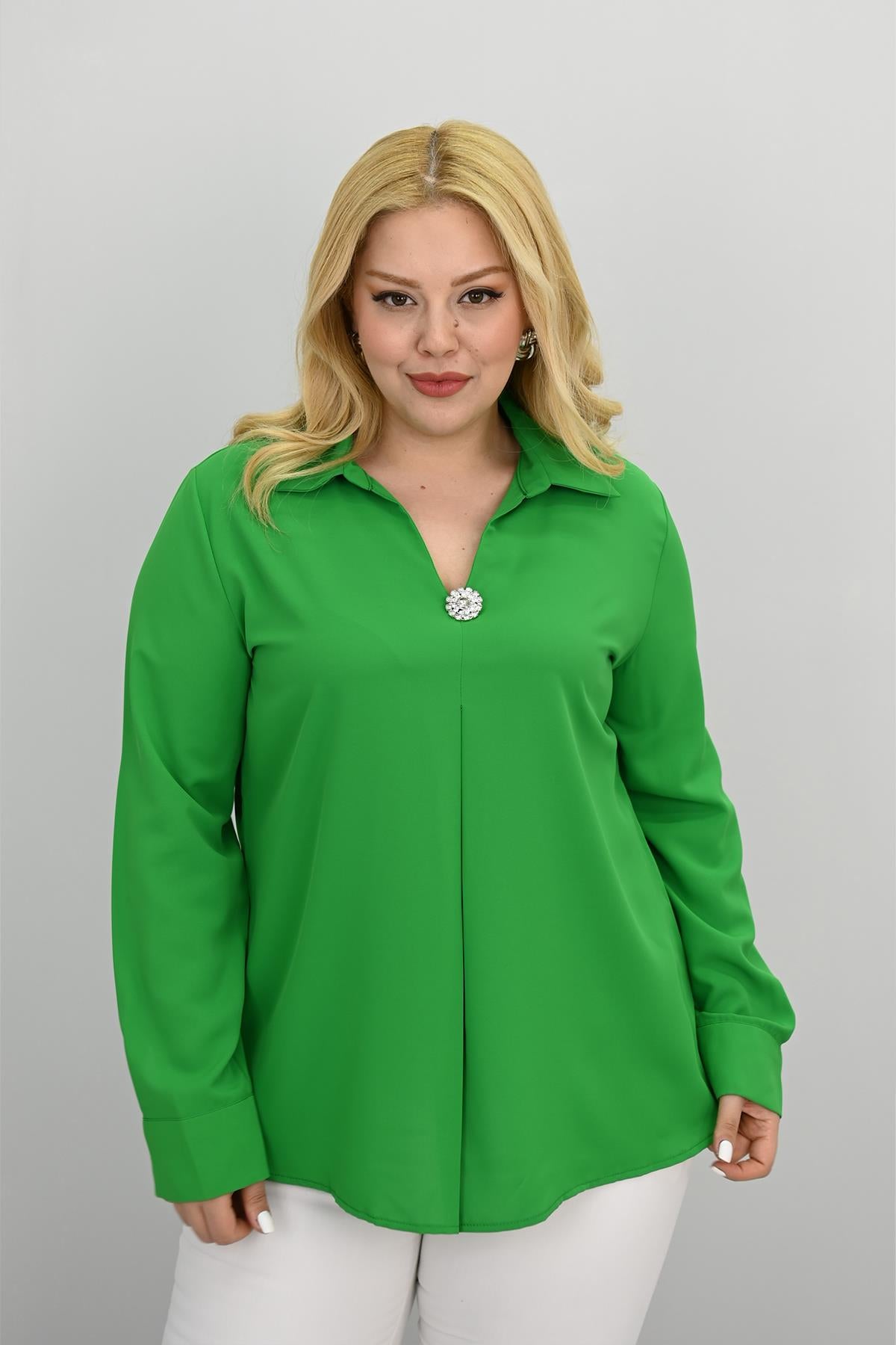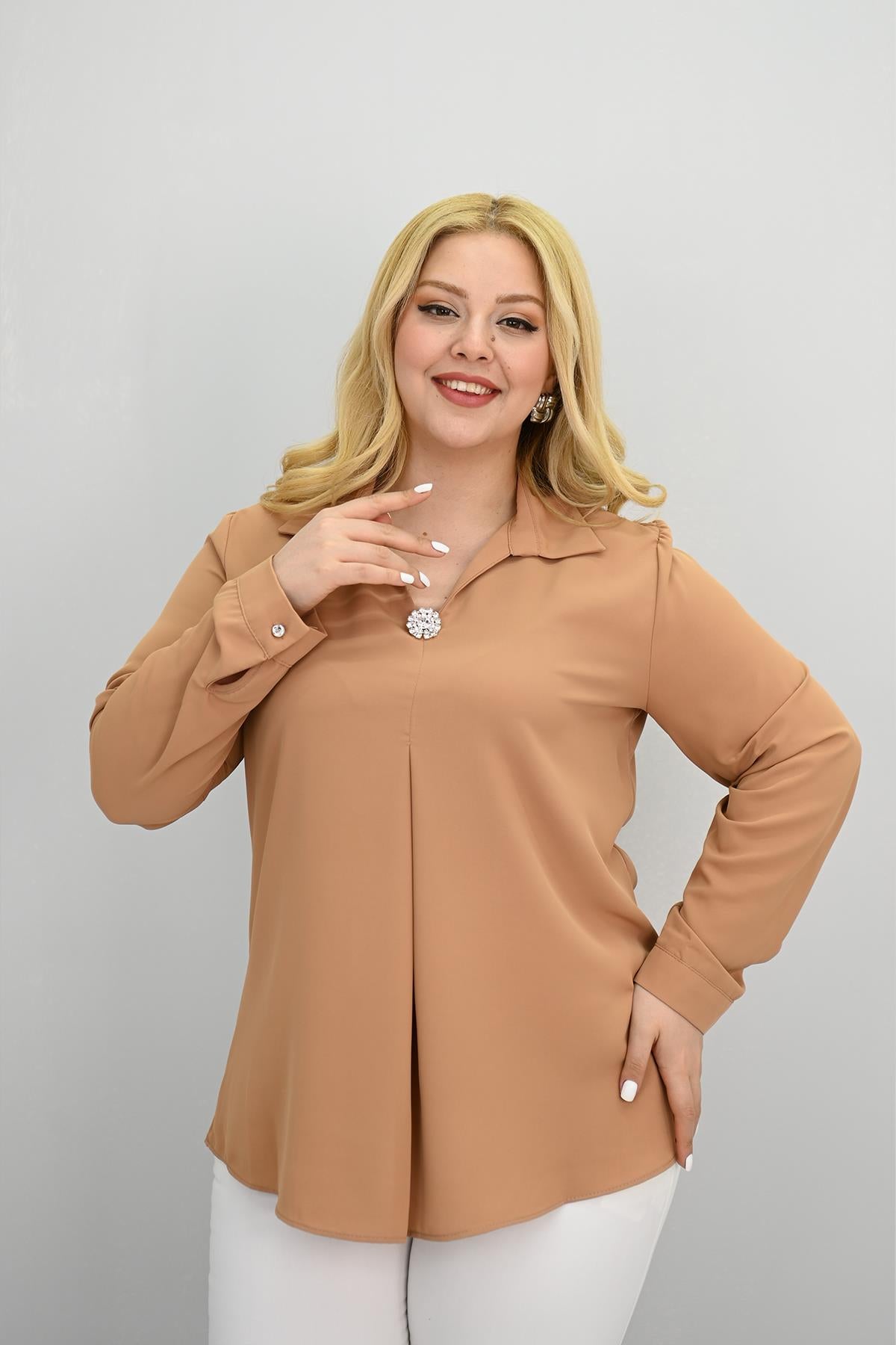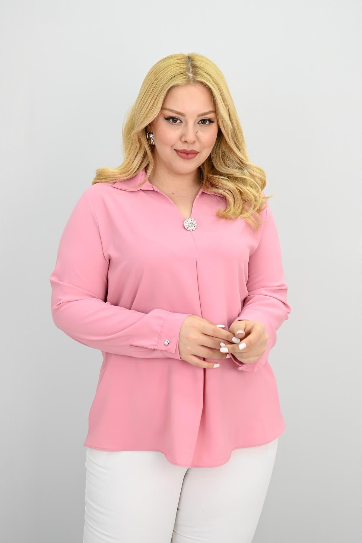 Kadın Büyük Beden Gömlek Yaka Broş Detaylı Bluz 0032-25