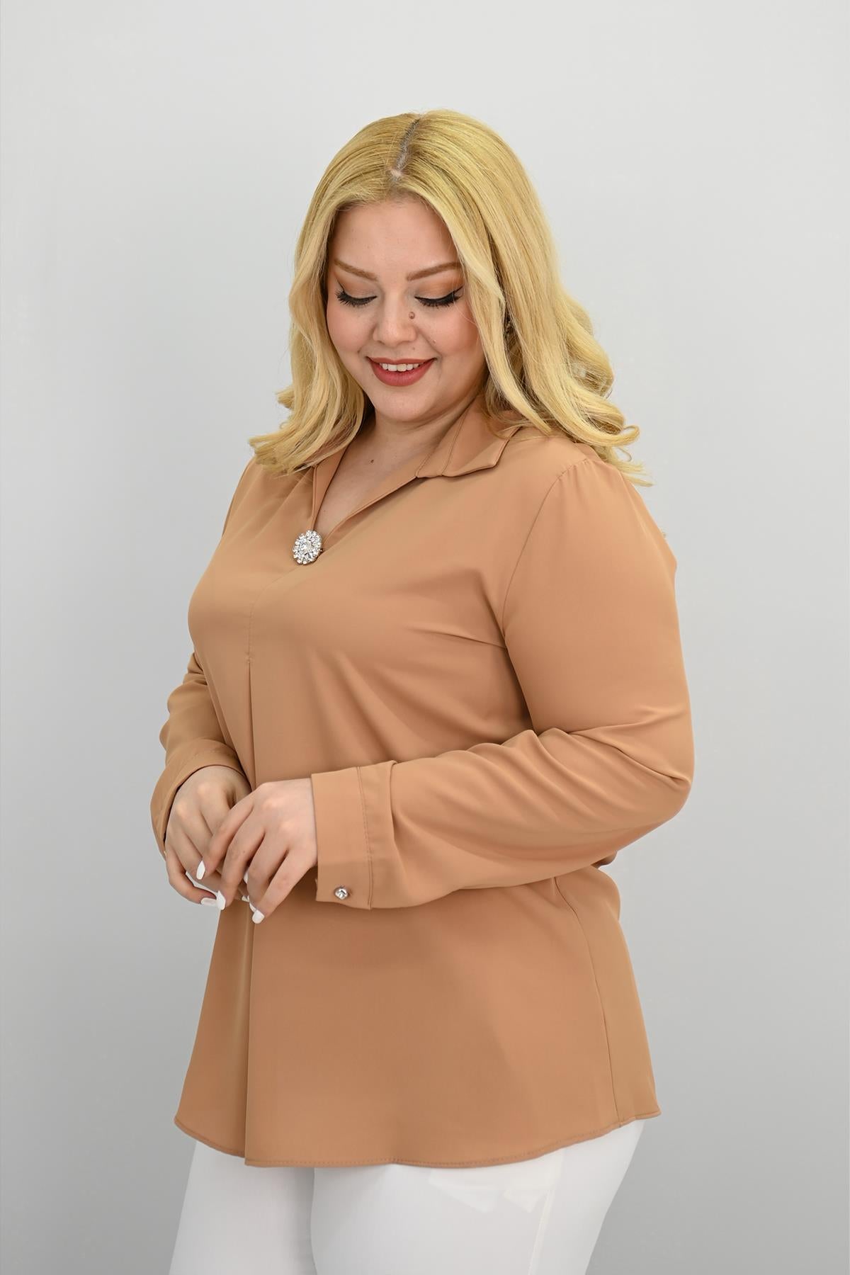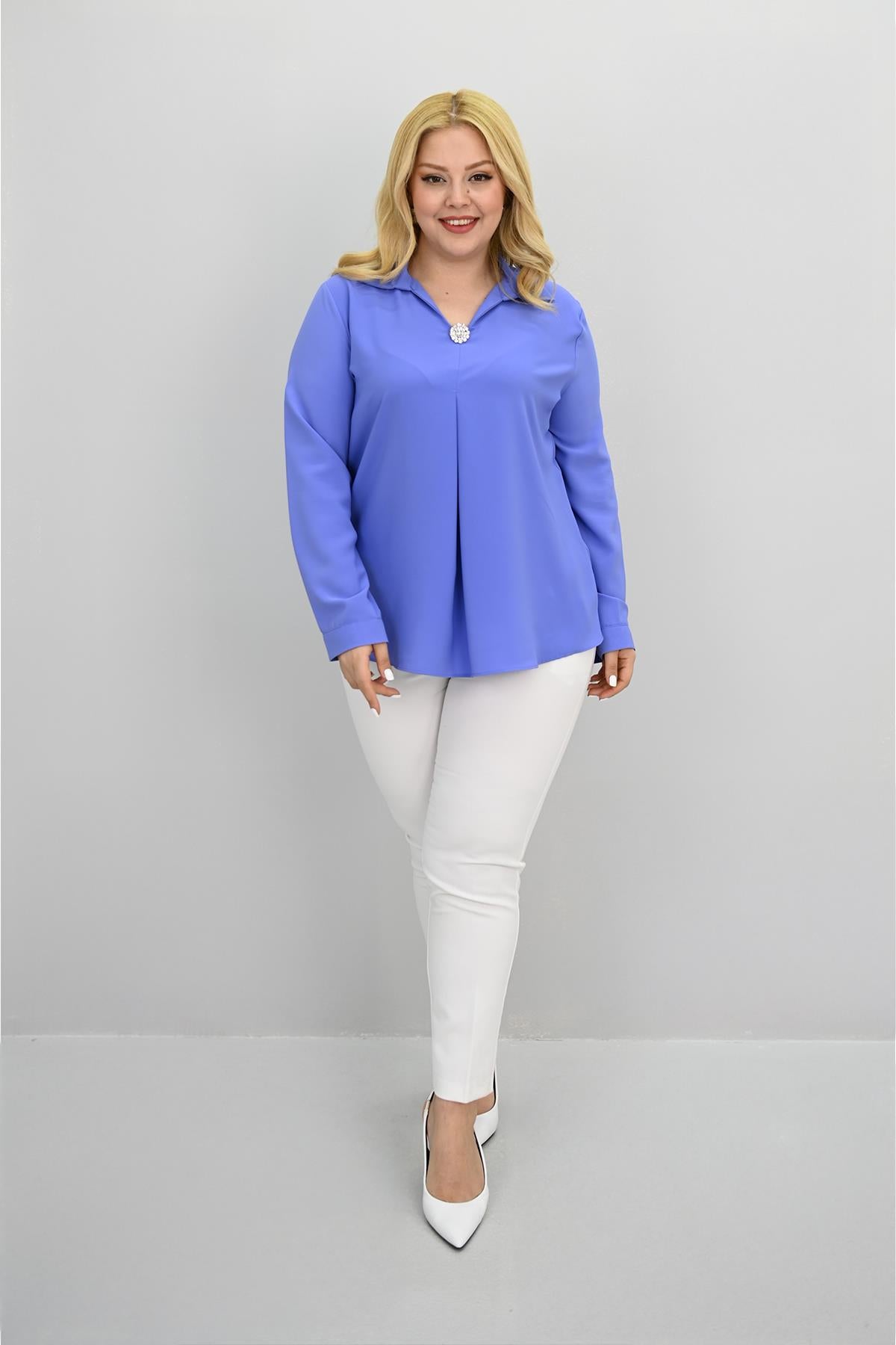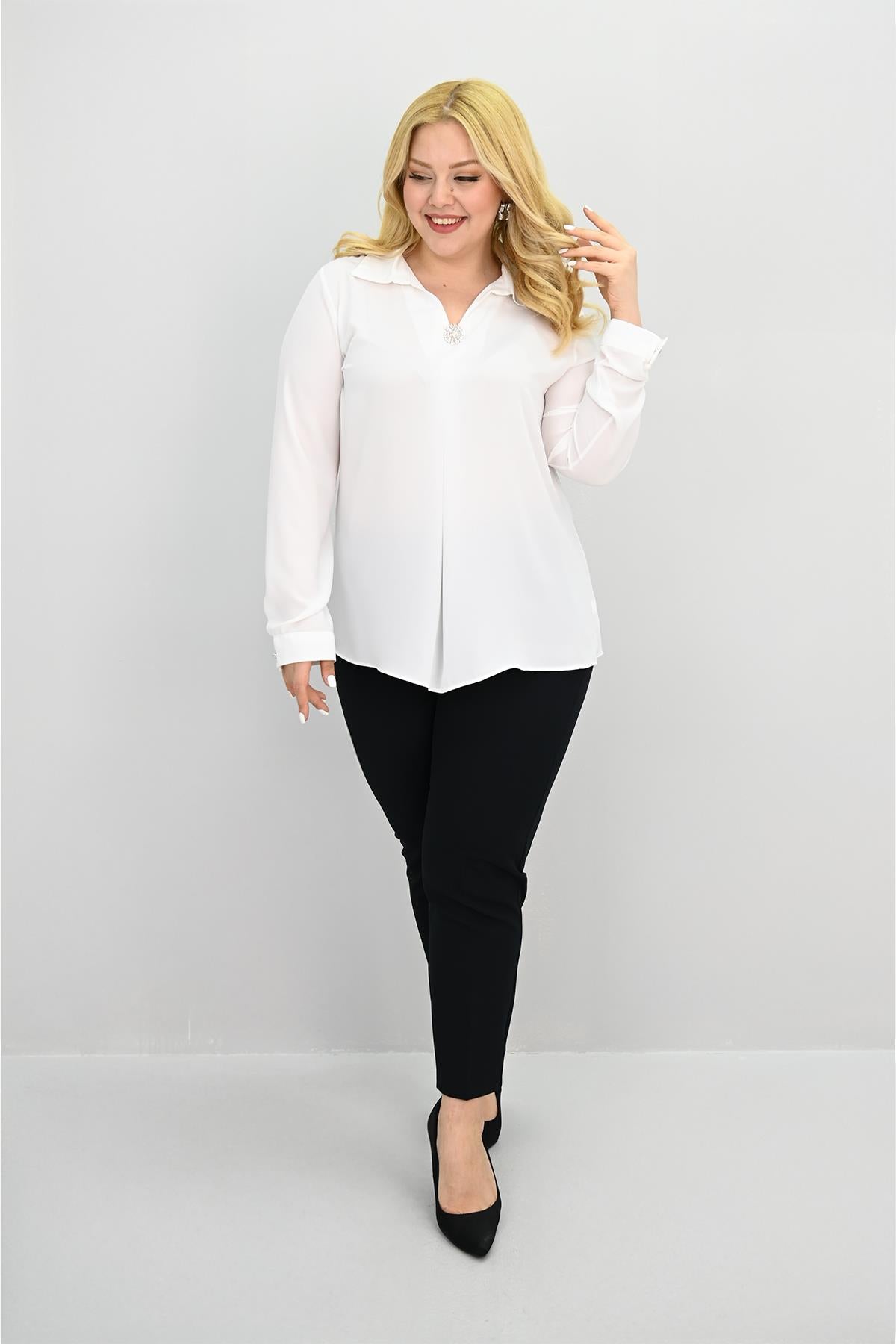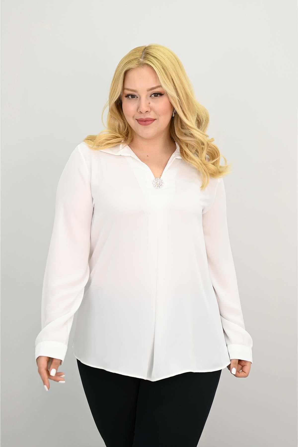 Kadın Büyük Beden Gömlek Yaka Broş Detaylı Bluz 0032-25