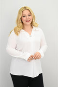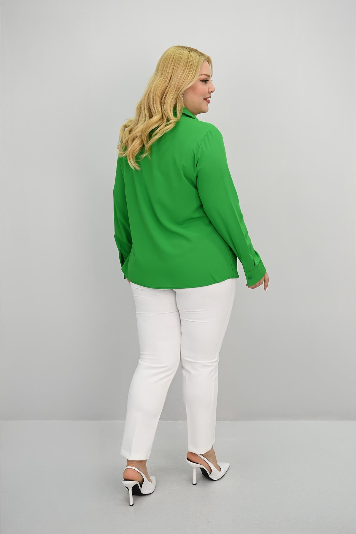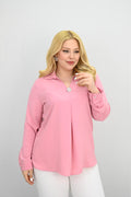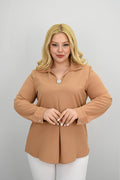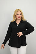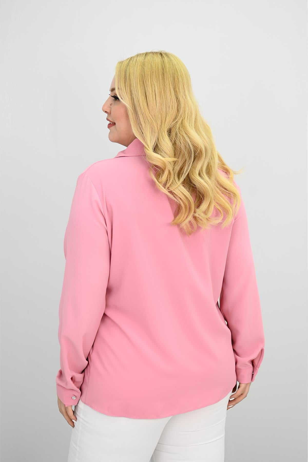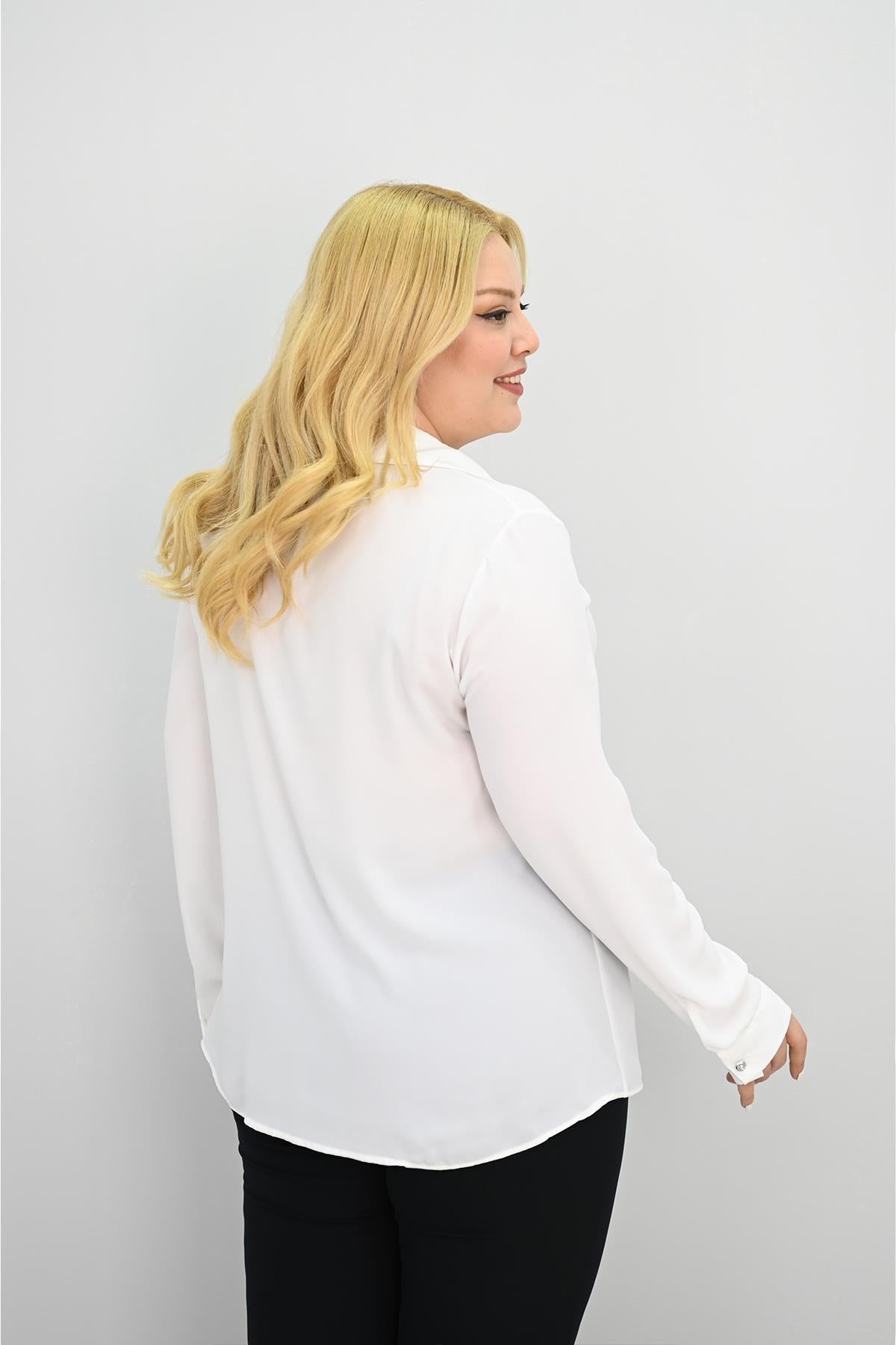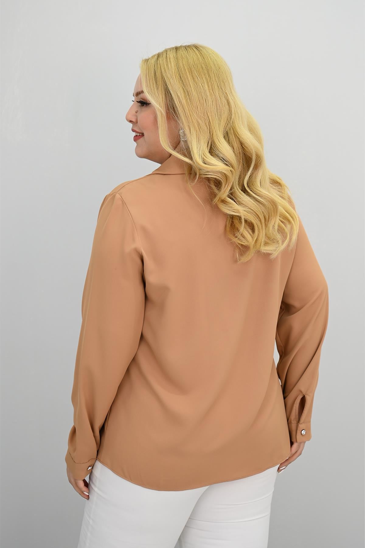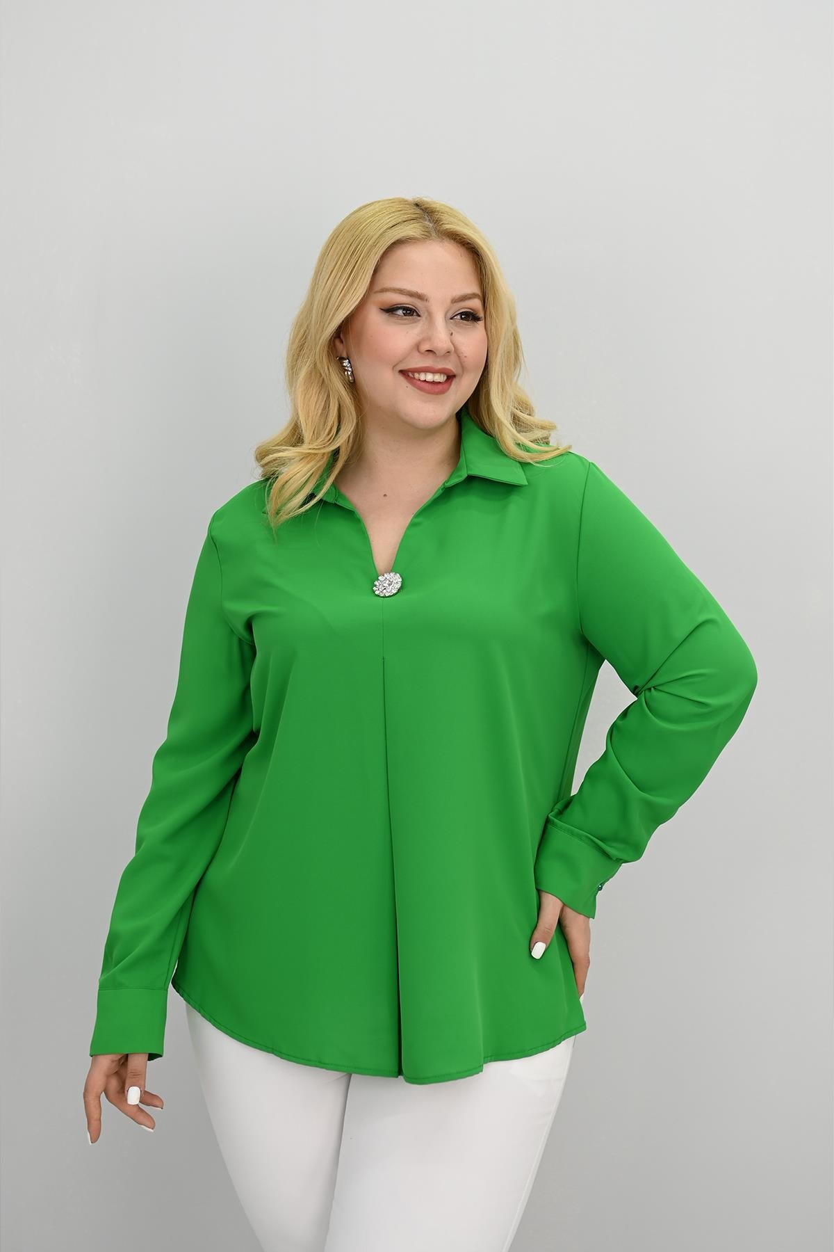 Kadın Büyük Beden Gömlek Yaka Broş Detaylı Bluz 0032-25