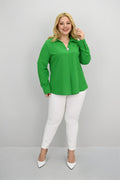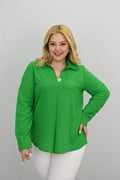Kadın Büyük Beden Gömlek Yaka Broş Detaylı Bluz, 42-50 bedene uyumludur. Zarif ve şık tarzıyla dolabınızın vazgeçilmez parçası olmaya adaydır. Uzun kollu ve gömlek yaka modeldir. Ön kısmında yer alan broş aksesuar, bluze zarif bir dokunuş katarken dikkat çekici bir görünüm sunar. Hafif dokuma viskon kumaştan üretilmiş olan bu model, gün boyu konfor sağlar. Hem ofis şıklığı hem de günlük kullanım için idealdir. Manken ’in üzerindeki beden 44 bedendir. (Bedenler arası +/- 2cm fark olmaktadır.) Model Ölçüleri Boy: 1,72 Kilo: 90 Göğüs: 104 Bel: 88 Basen: 115