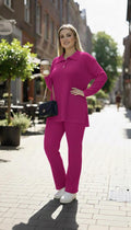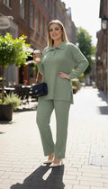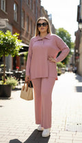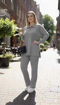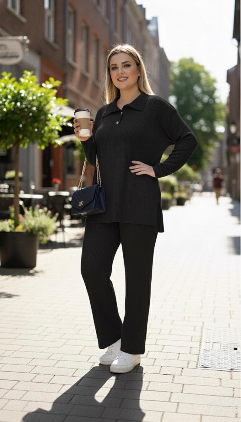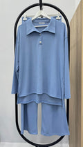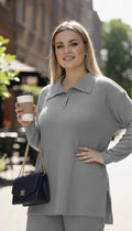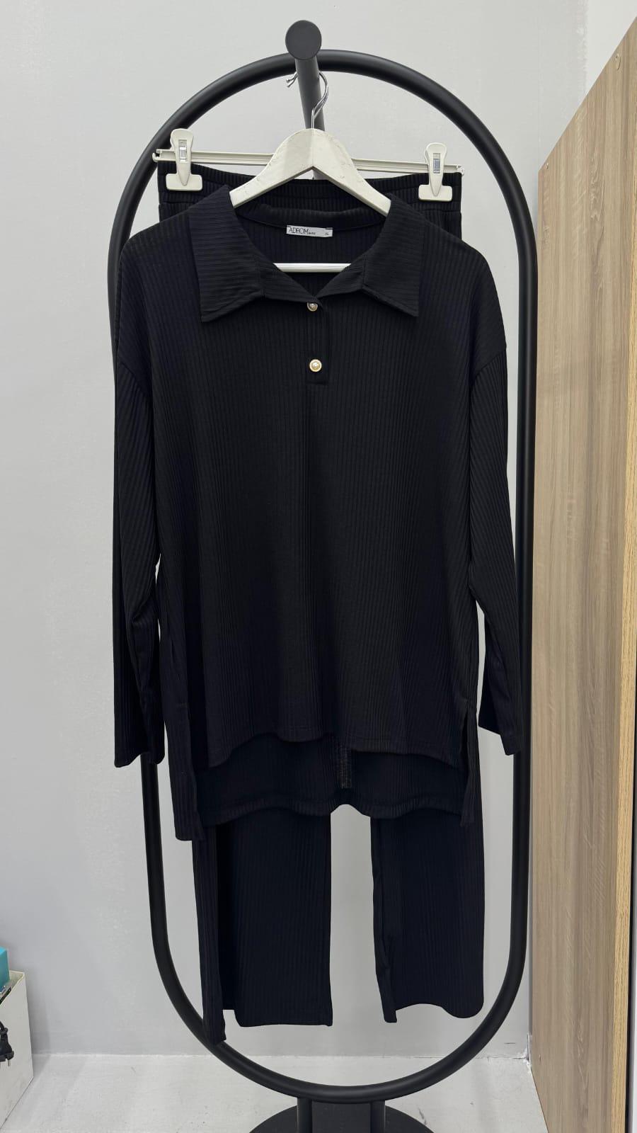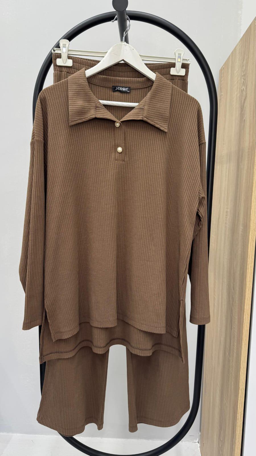 Kadın Büyük Beden Gömlek Yaka Düğmeli Kaşkorse Kumaş Eşofman Takımı 8232-26