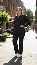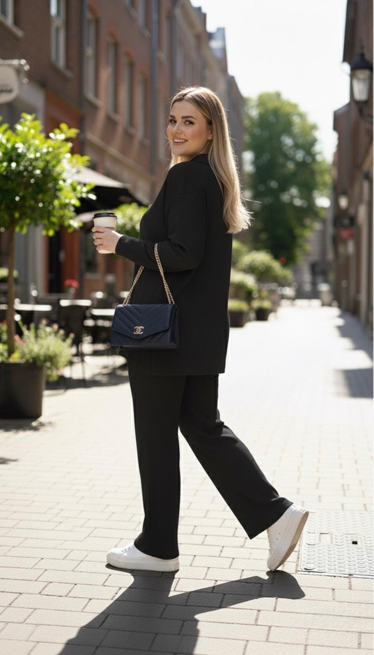 Şıklığı ve konforu bir arada sunan bu büyük beden eşofman takımı, 42-50 bedene uyumludur. Gömlek yaka düğmeli tasarımıyla spor giyimden daha fazlasını arayanlar için ideal bir seçimdir. Üst kısmında uzun kol detayının yanı sıra önü kısa arkası uzun kesimiyle modern ve rahat bir görünüm sağlar. Yan yırtmaçlı tasarım, hareket özgürlüğünü artırarak üst parçaya zarif bir akış kazandırır. Alt kısmı bol paça formunda olup beli lastikli yapısıyla gün boyu konfor sunar. Raporlu kaşkorse kumaşı esnek, yumuşak ve nefes alabilen dokusuyla vücudu sararken aynı zamanda şık bir duruş sağlar. Manken ’in üzerindeki beden 44 bedendir. (Bedenler arası +/- 2cm fark olmaktadır.) Model Ölçüleri Boy: 1,72 Kilo: 90 Göğüs: 104 Bel: 88 Basen: 115 Kumaş İçeriği : %75 Pamuk %25 Polyester Üst Ön Boy : 70 cm’dir. Üst Arka Boy : 76 cm’dir. Göğüs : 126 cm’dir. Kol Uzunluğu : 53 cm’dir. Basen : 120 cm’dir. Alt Boy : 112 cm’dir.