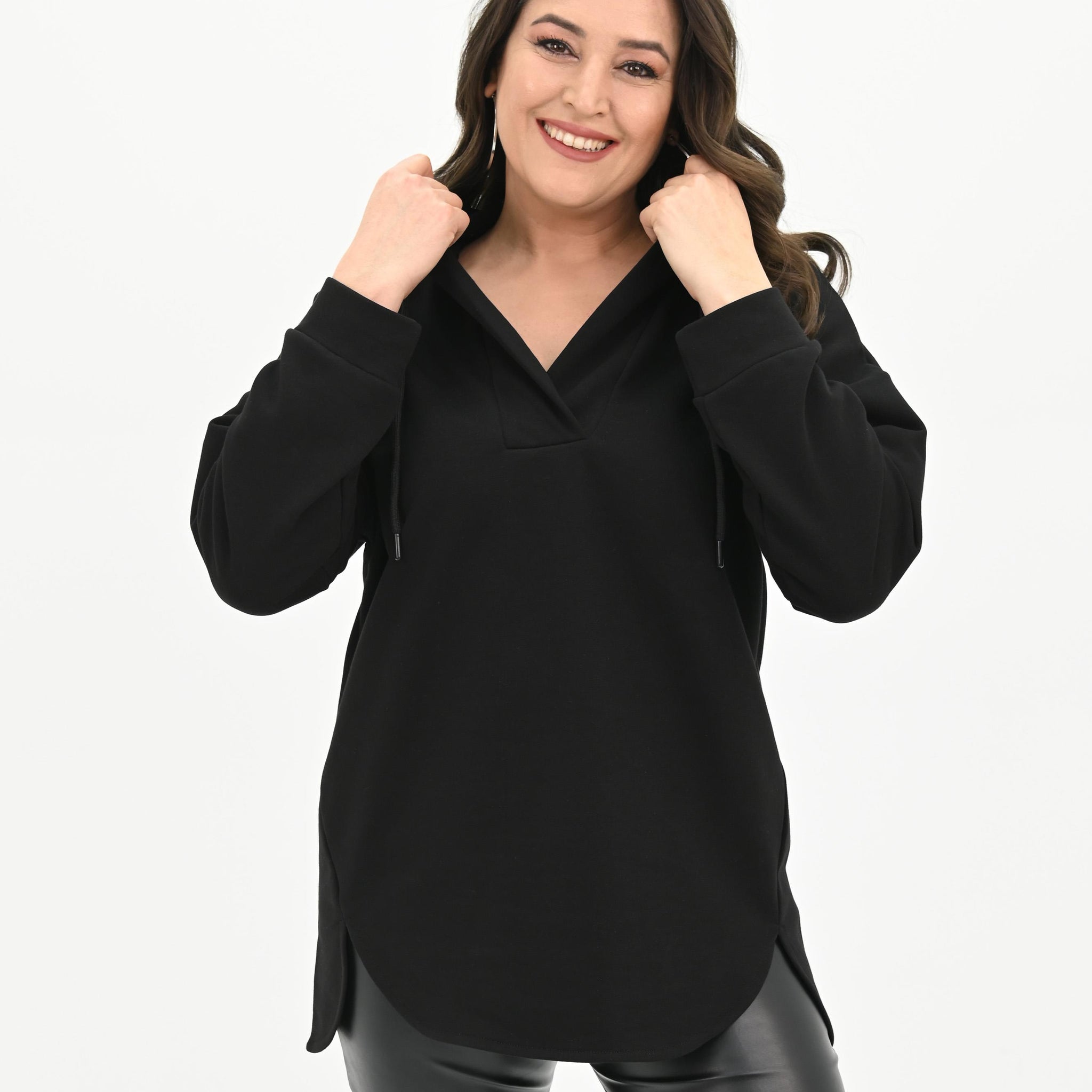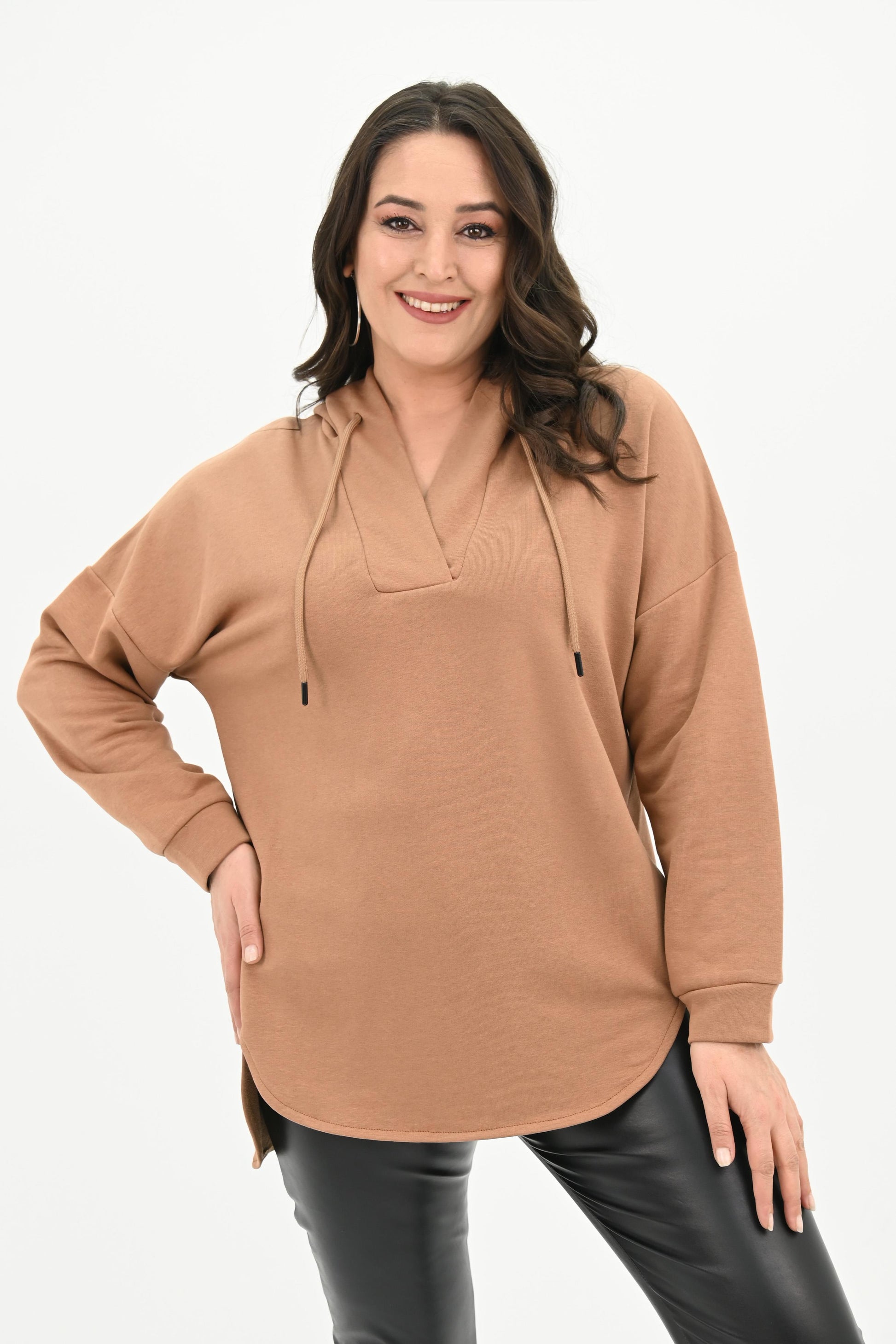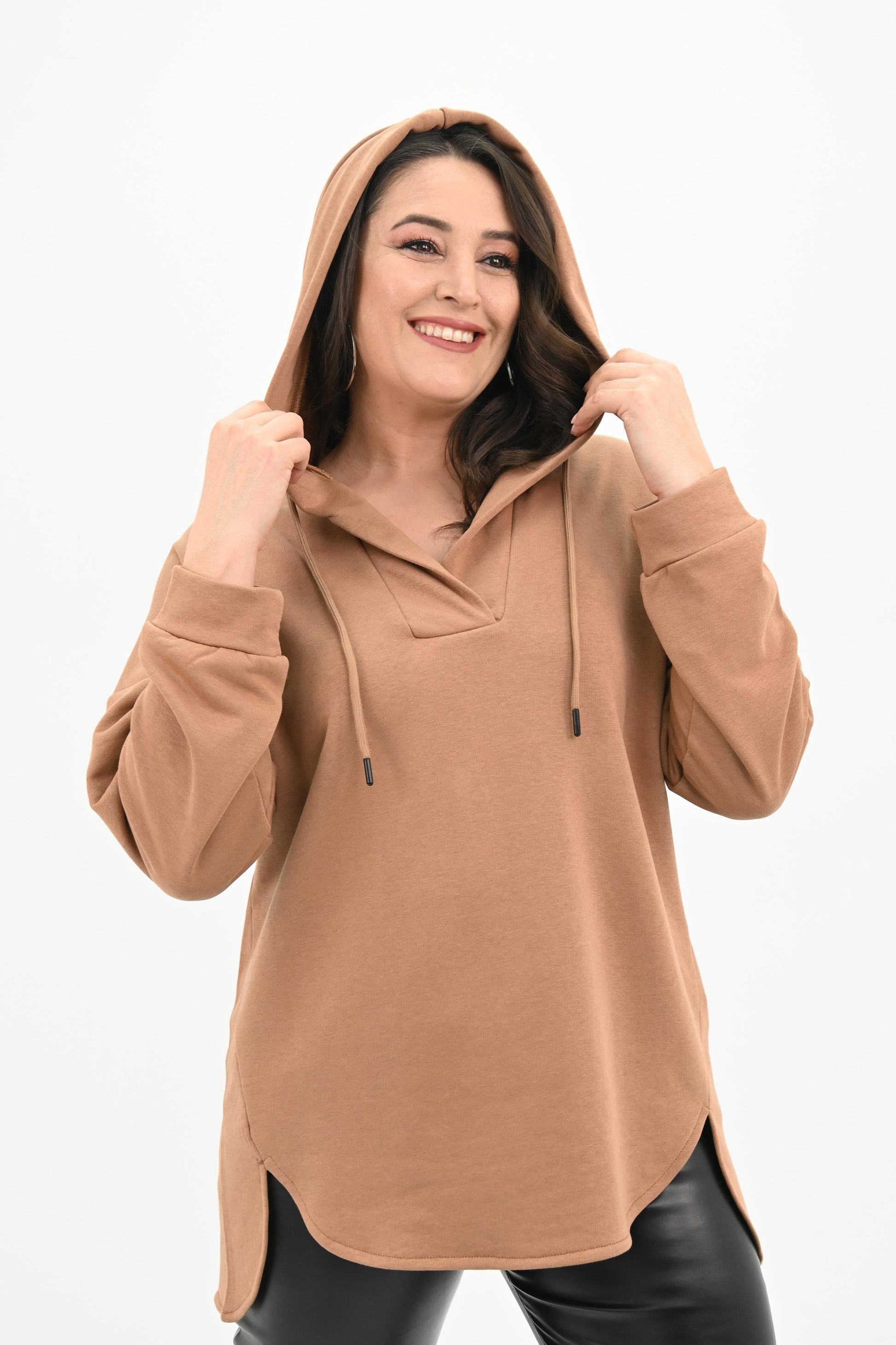 Kadın Büyük Beden Kapüşonlu Oversize Sweatshirt 1895-25