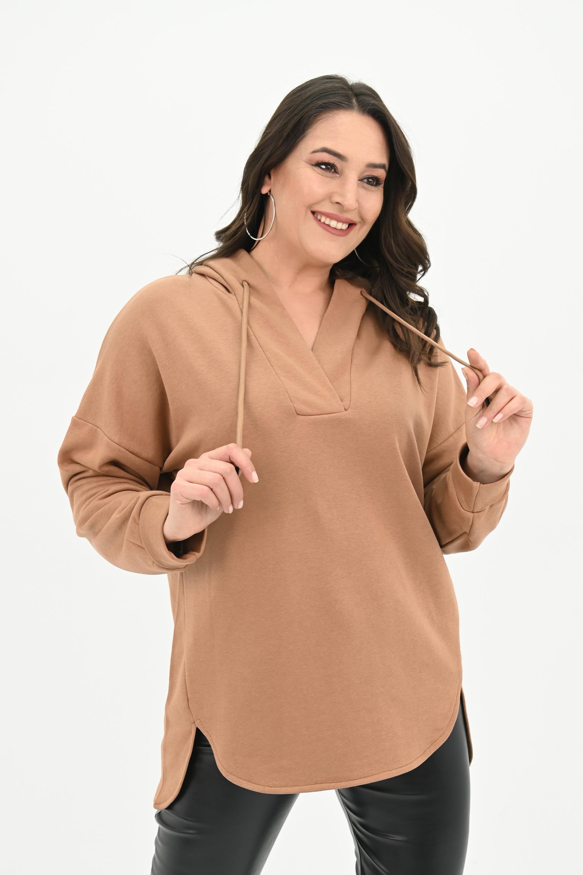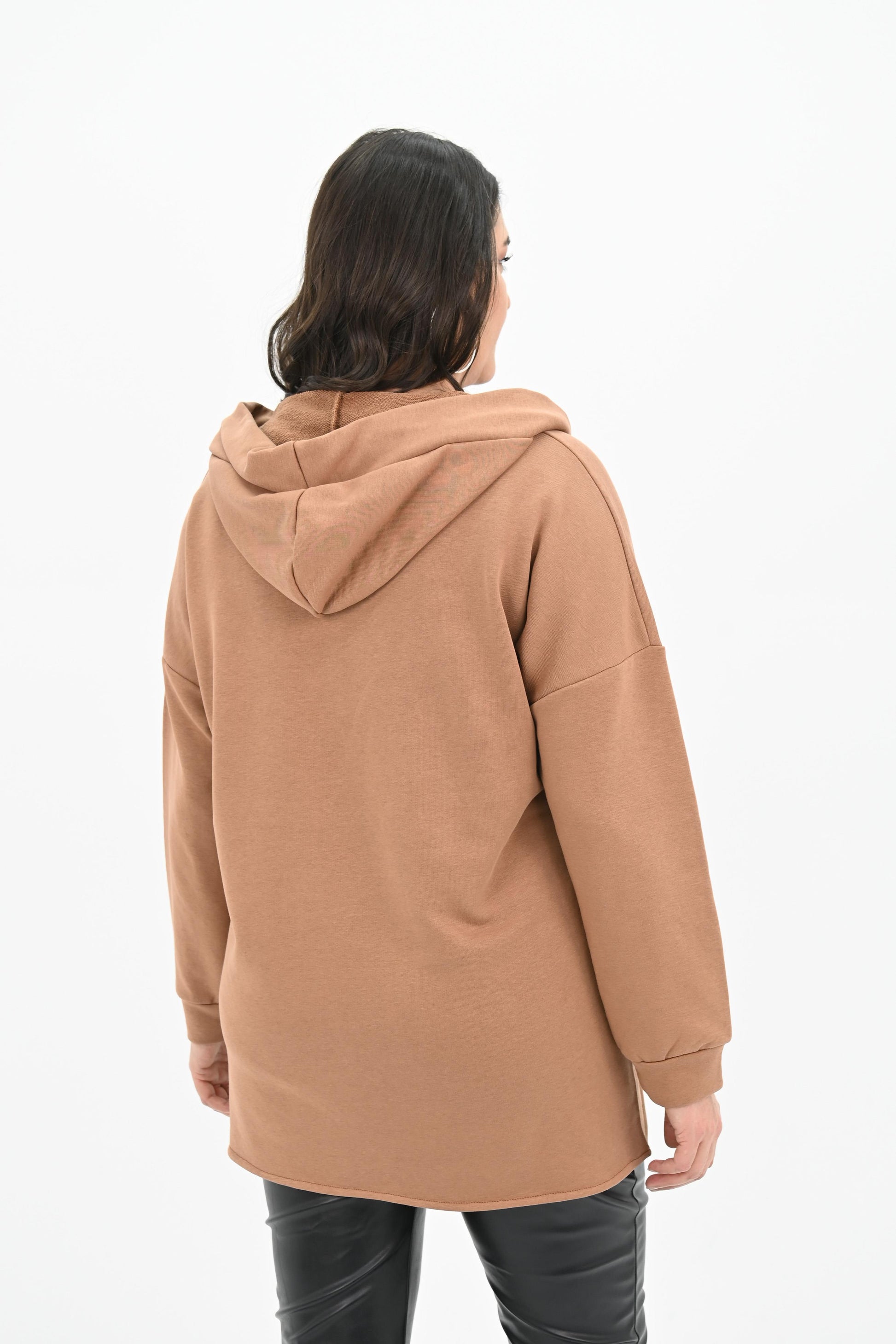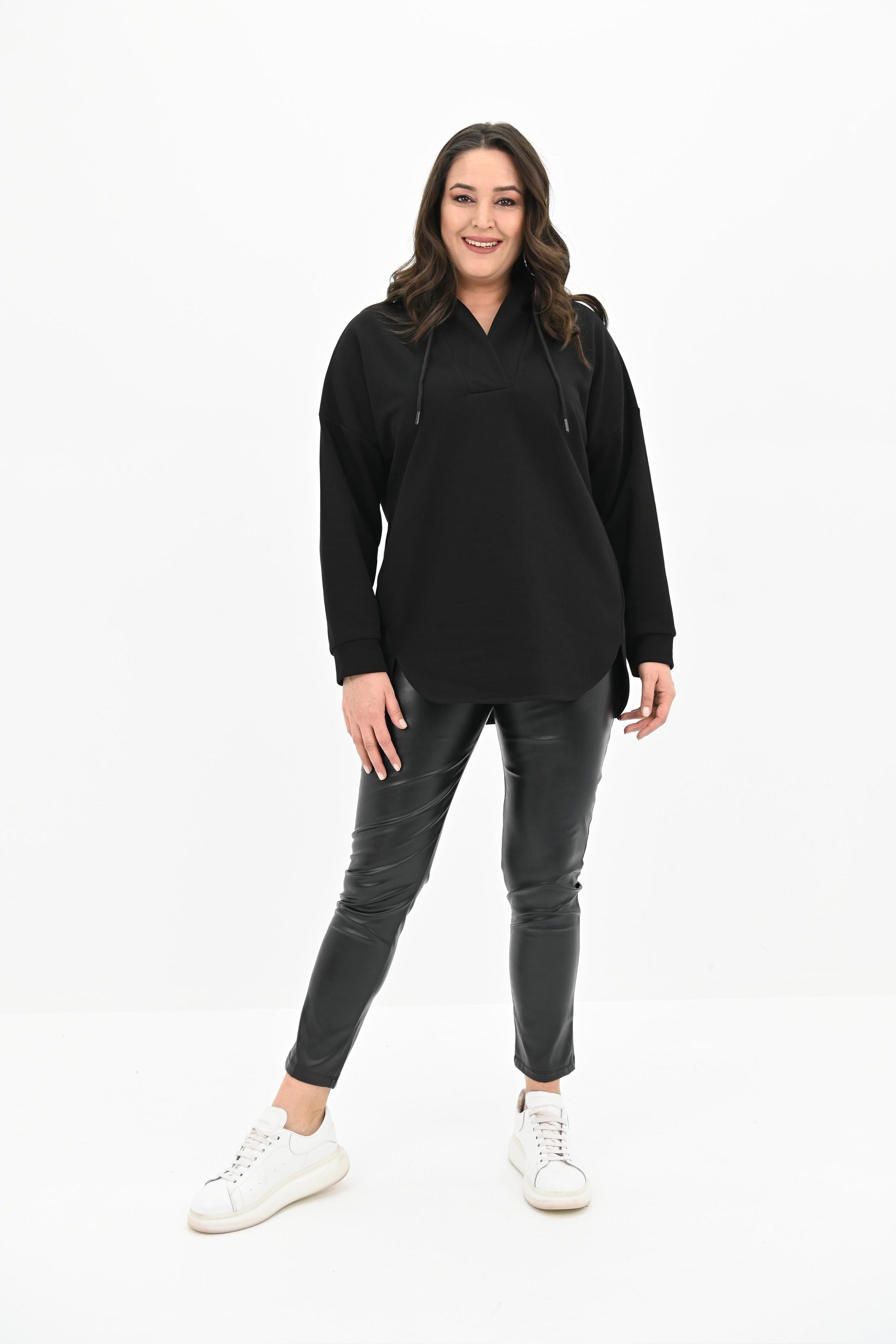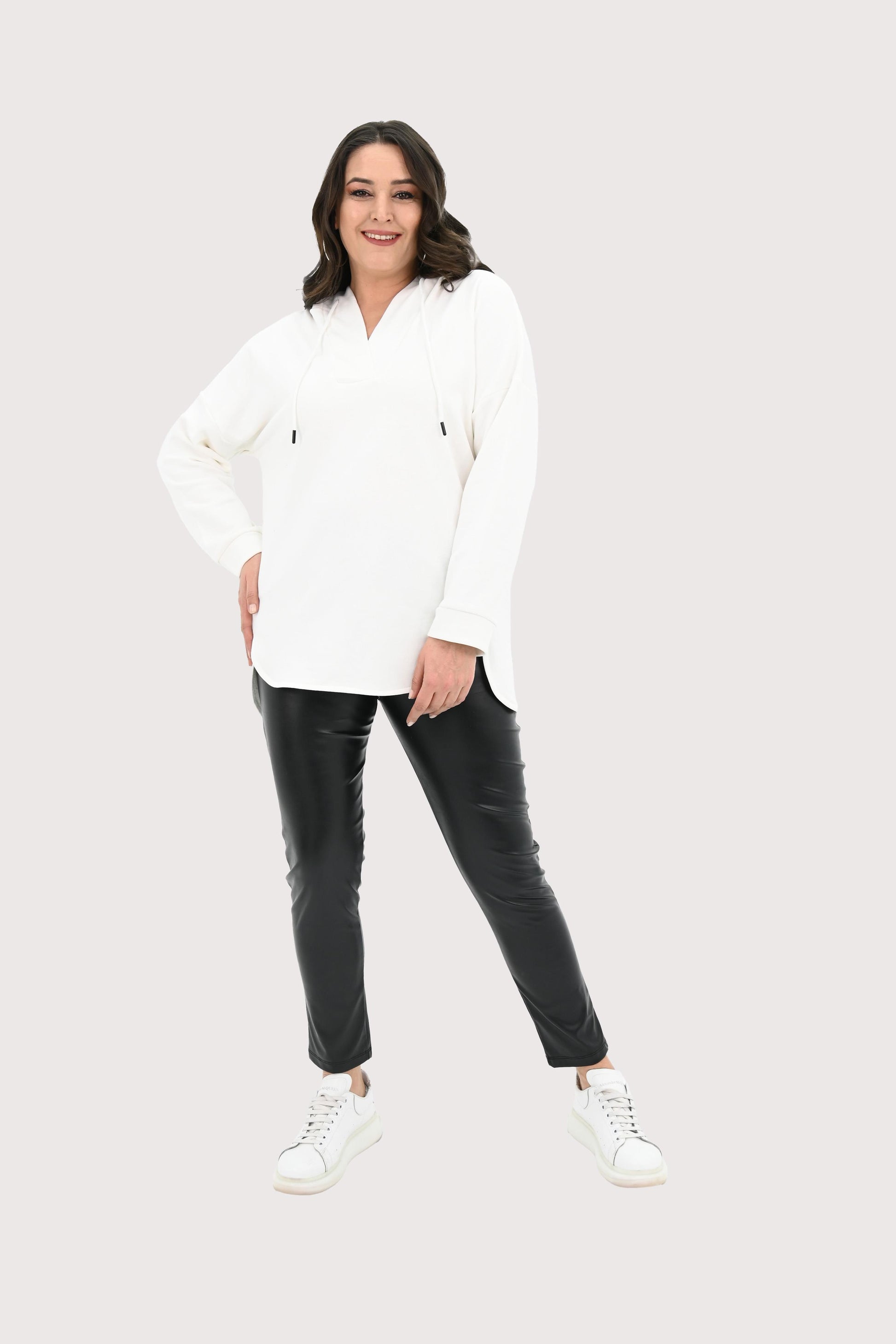 Kadın Büyük Beden Kapüşonlu Oversize Sweatshirt 1895-25