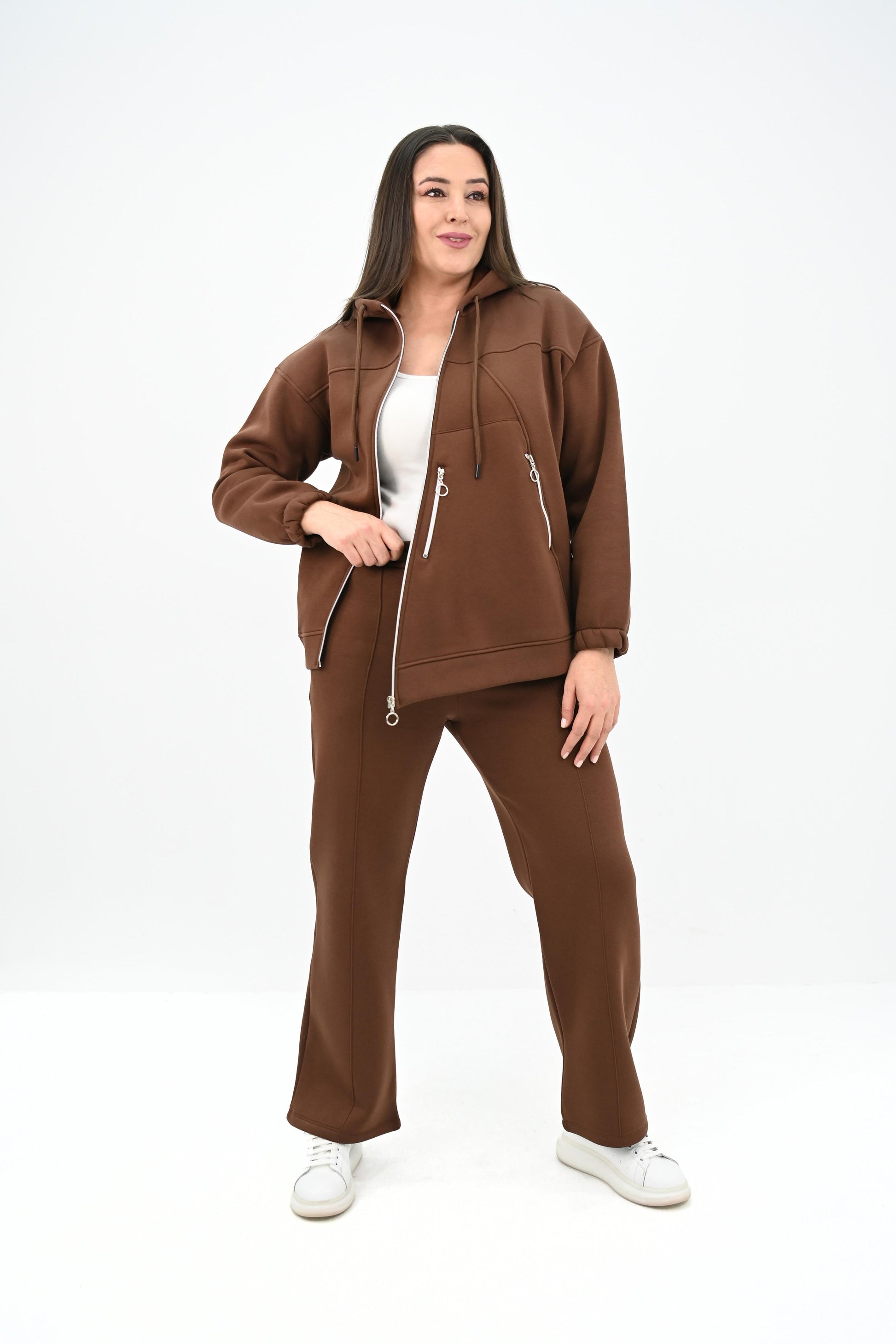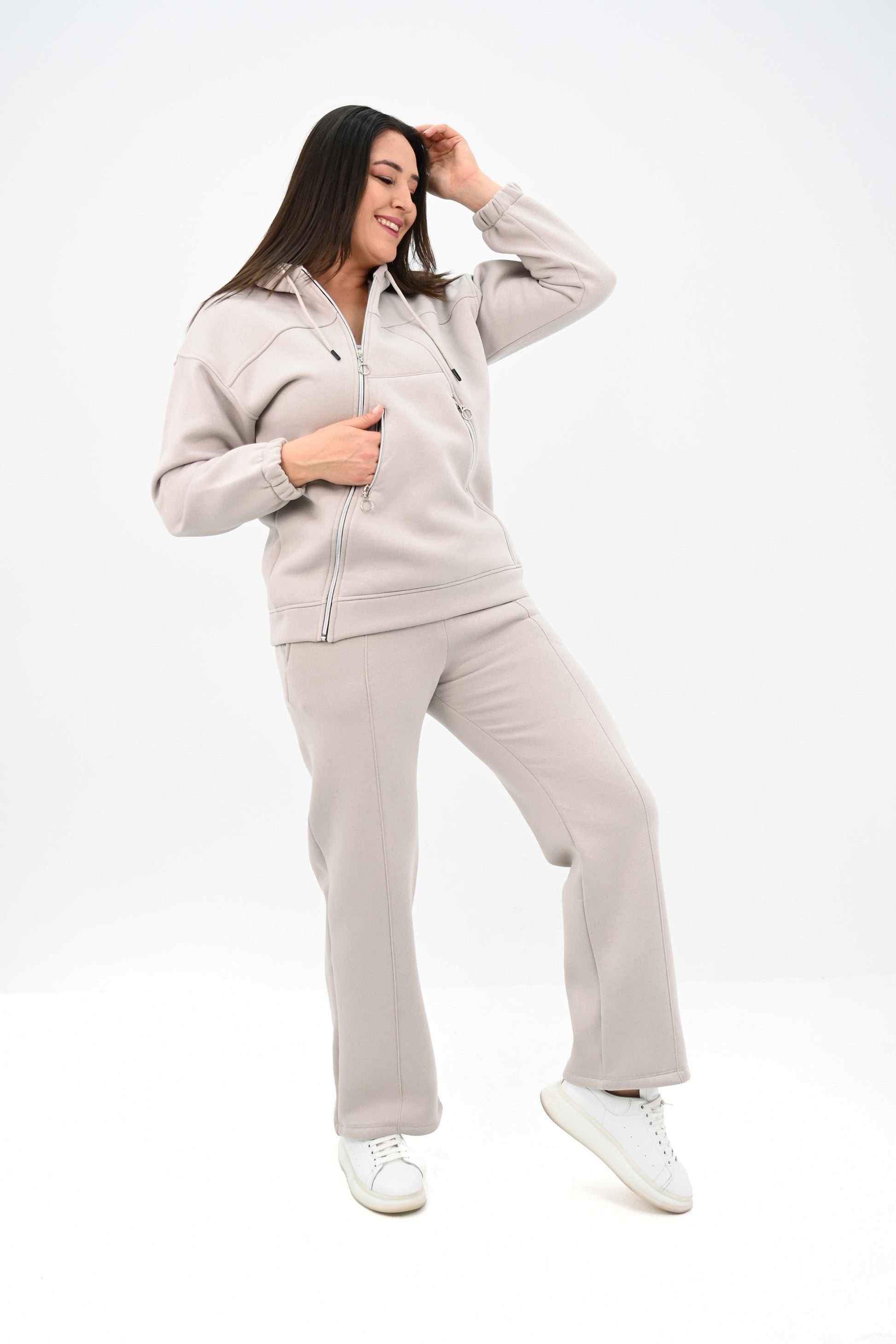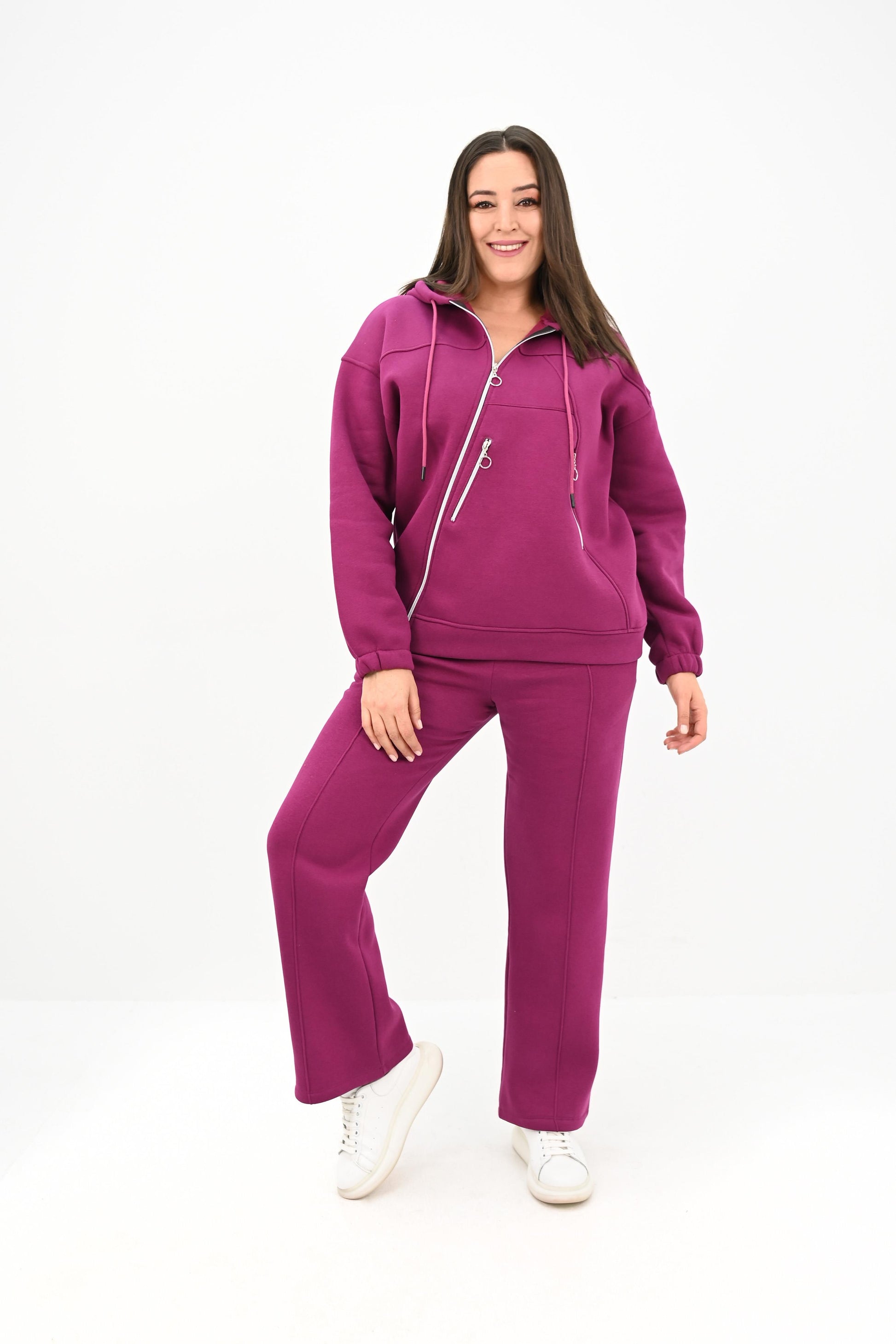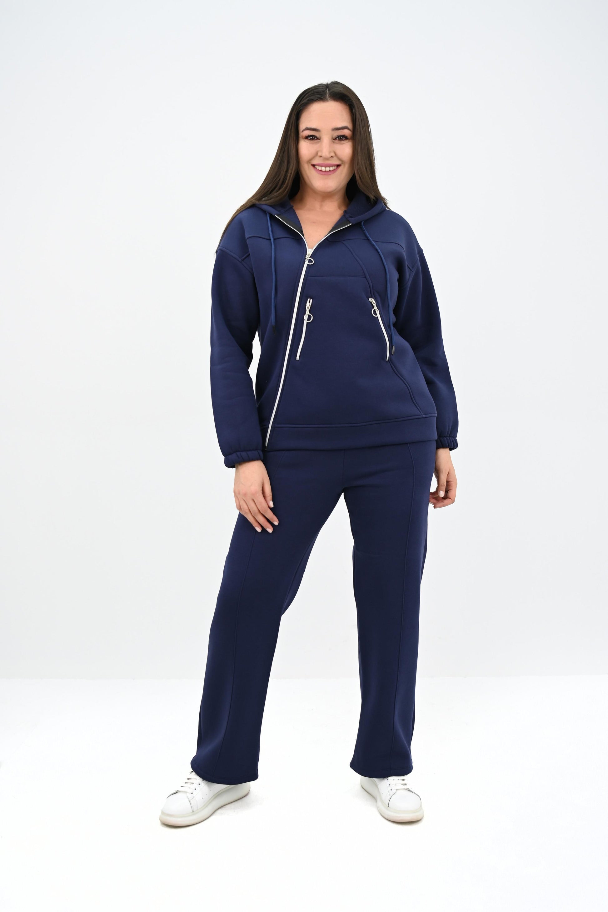 Kadın Büyük Beden Kapüşonlu Yan Fermuar Detaylı Eşofman Takımı 8163-25