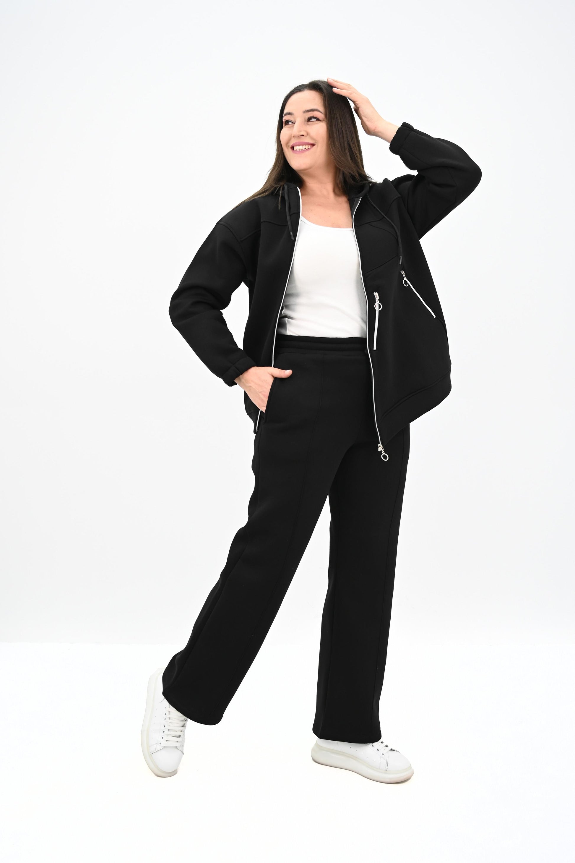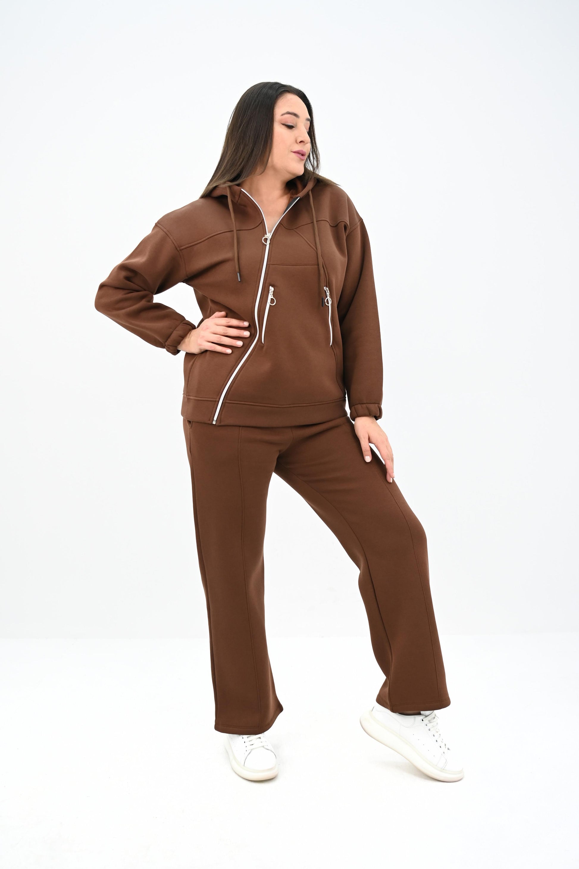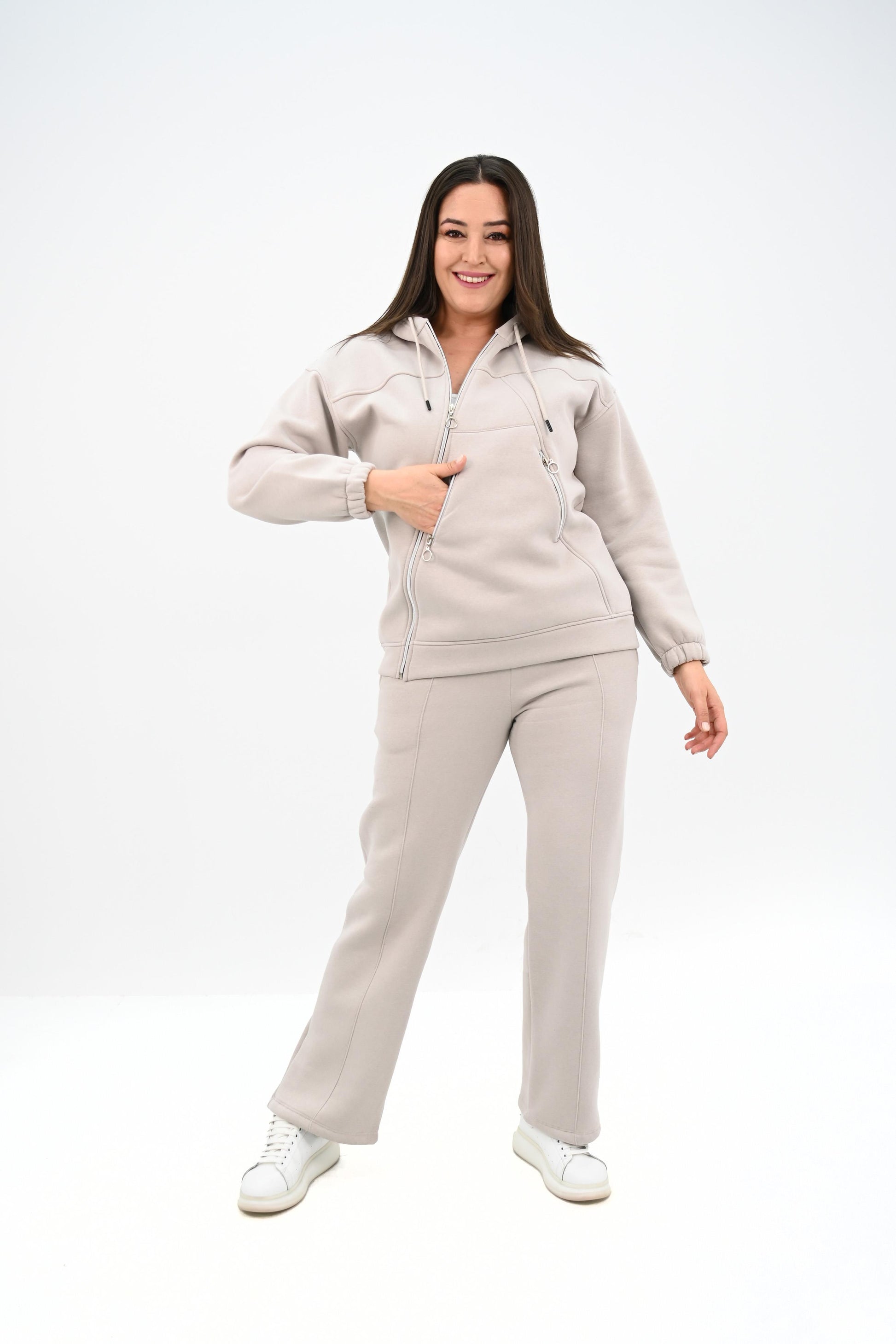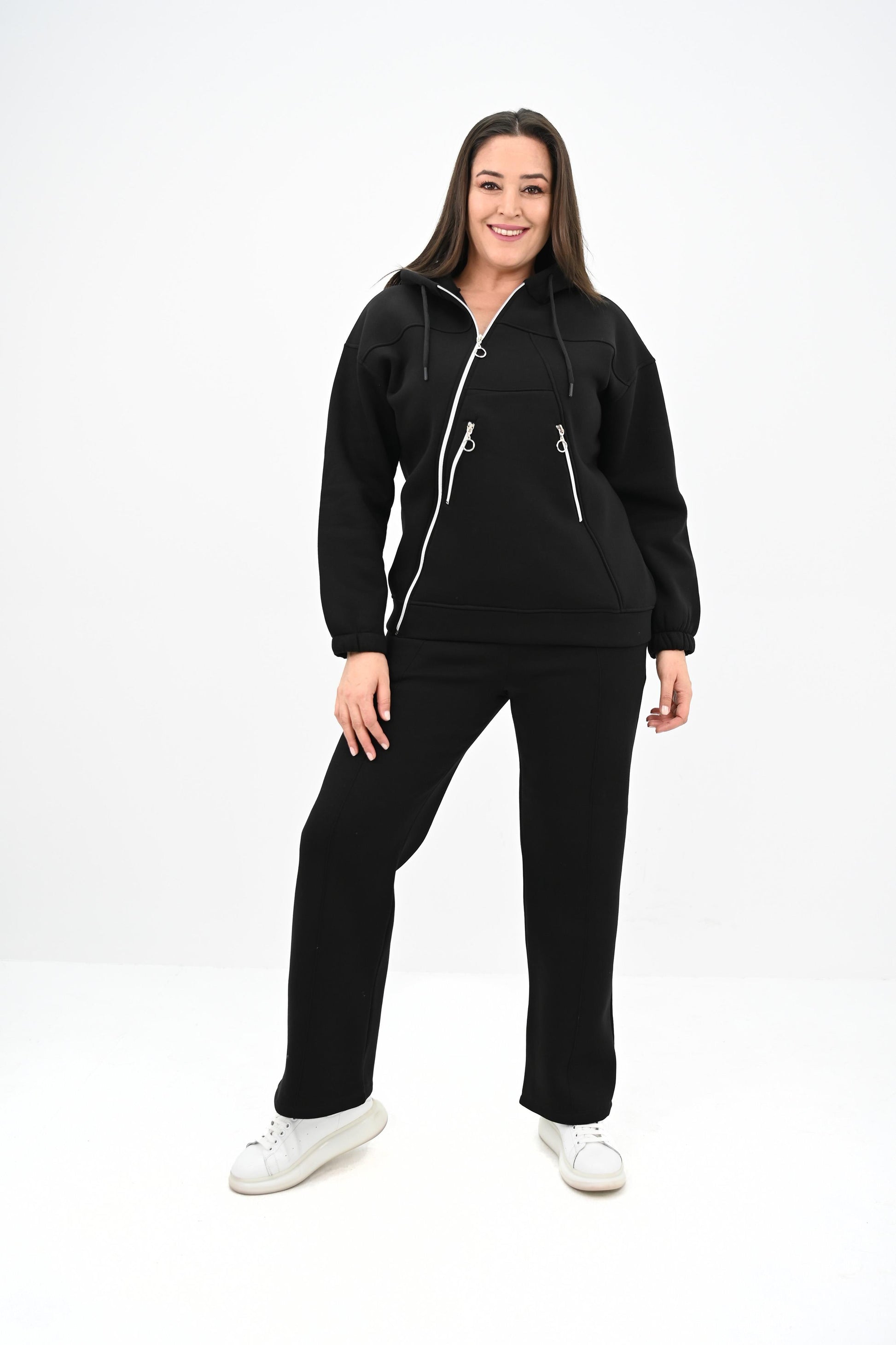 Kadın Büyük Beden Kapüşonlu Yan Fermuar Detaylı Eşofman Takımı 8163-25