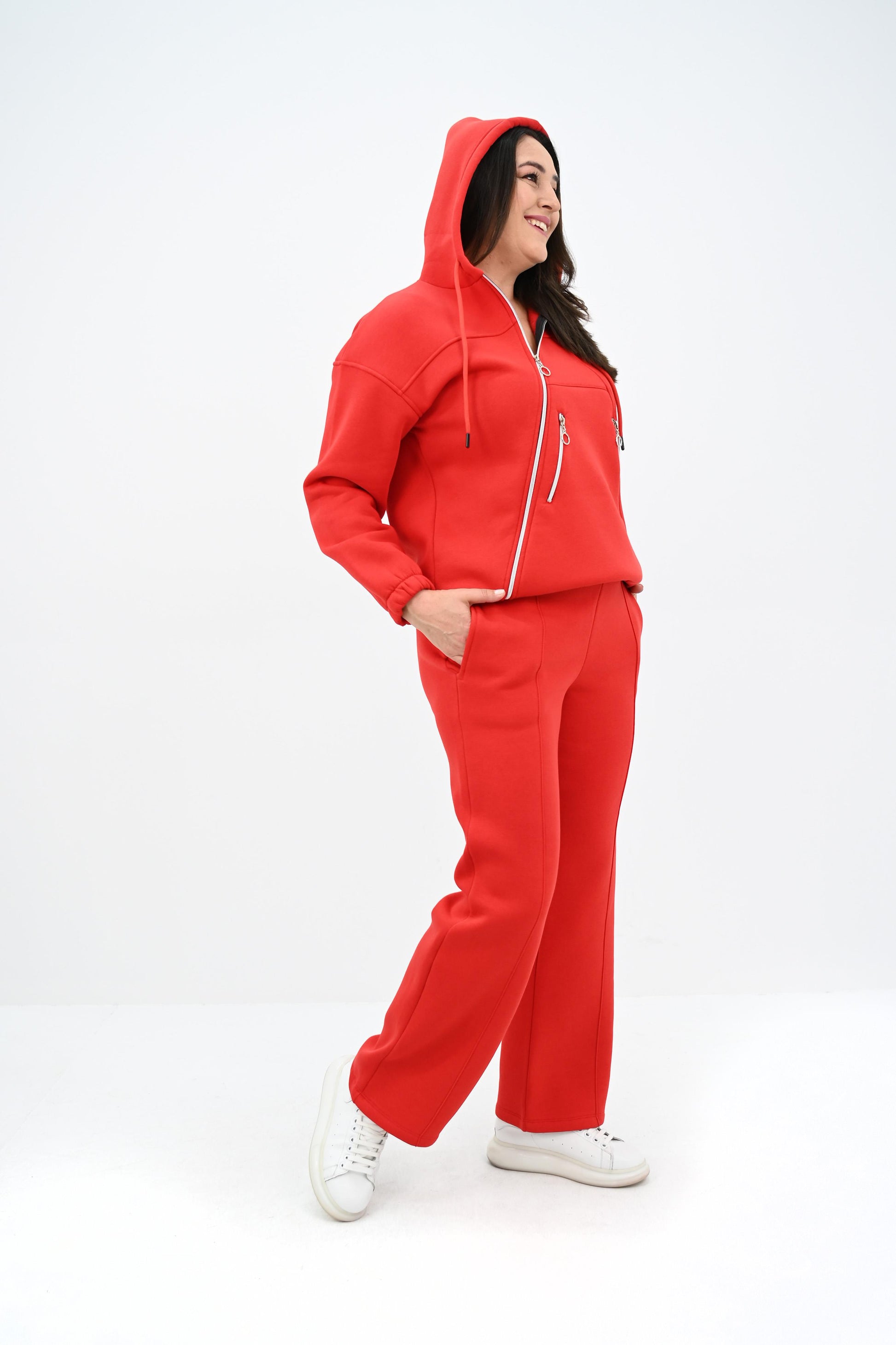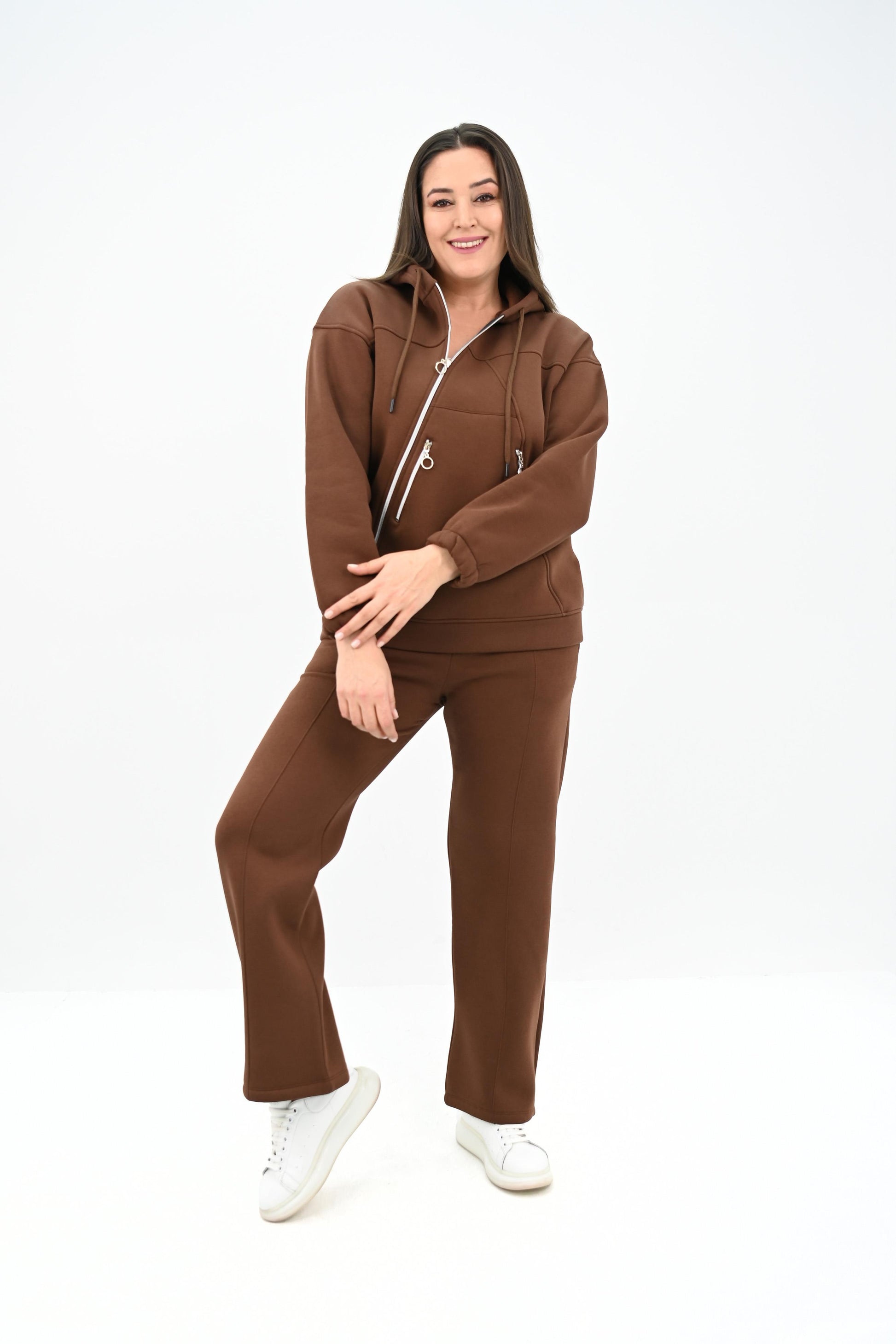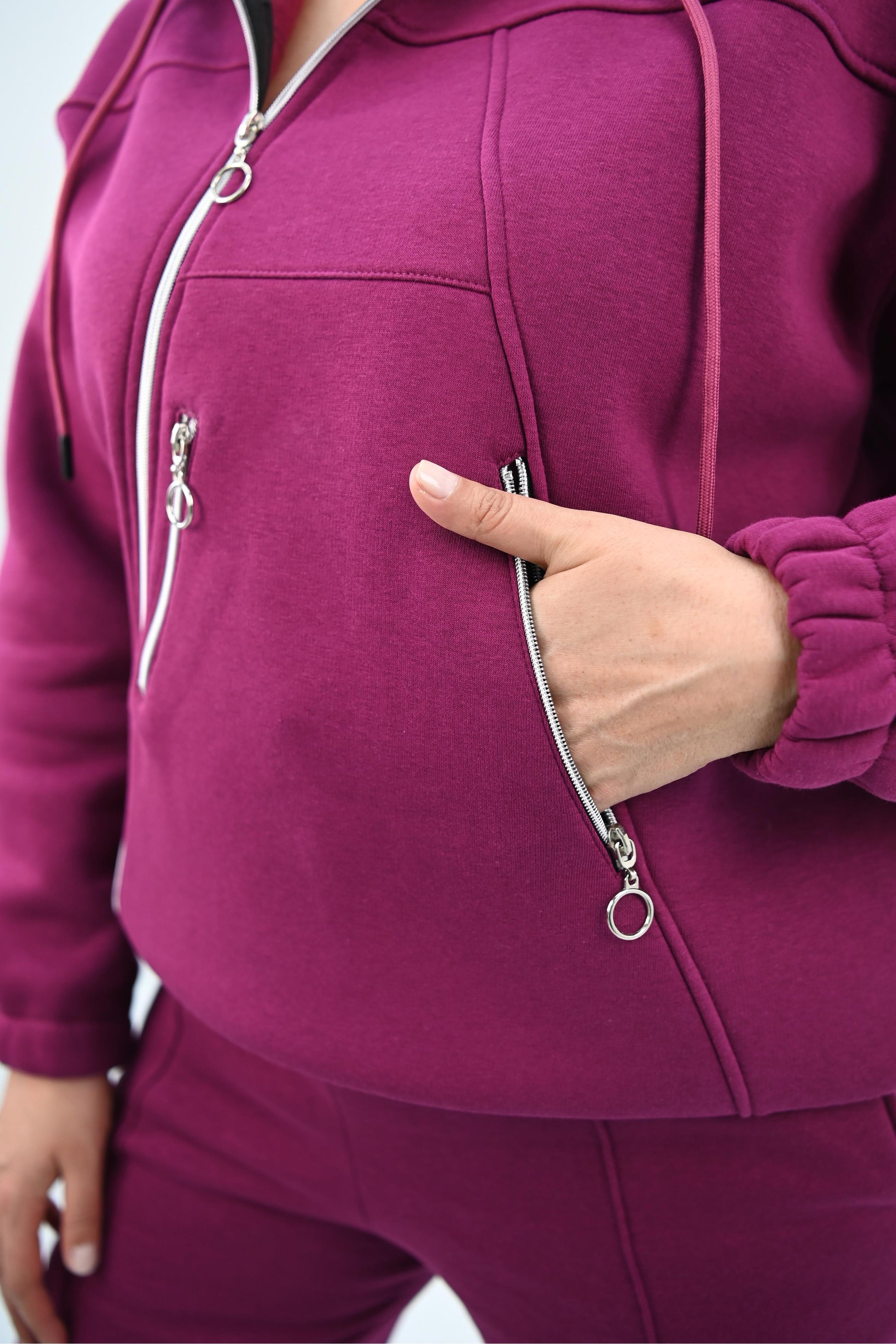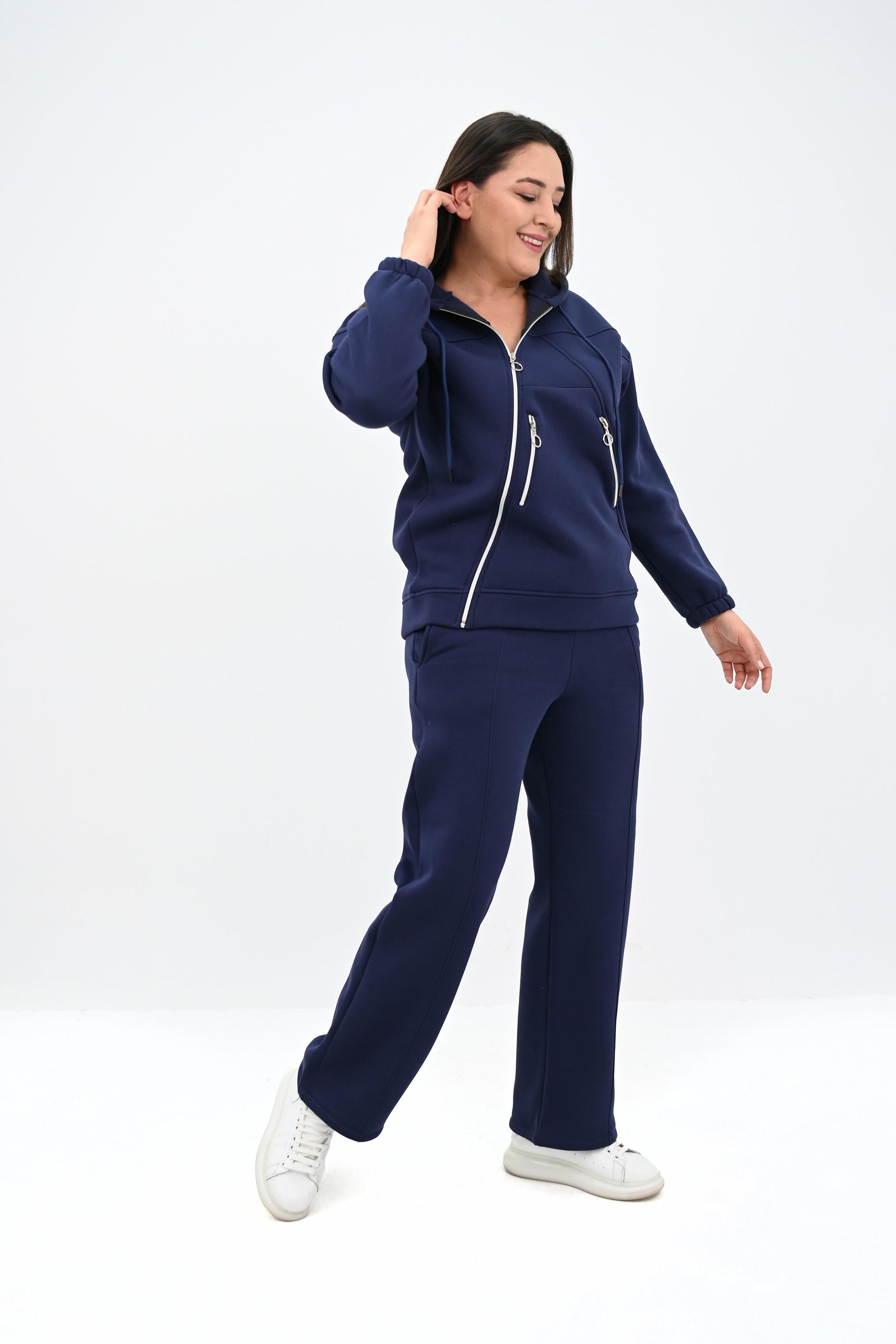 Kadın Büyük Beden Kapüşonlu Yan Fermuar Detaylı Eşofman Takımı 8163-25