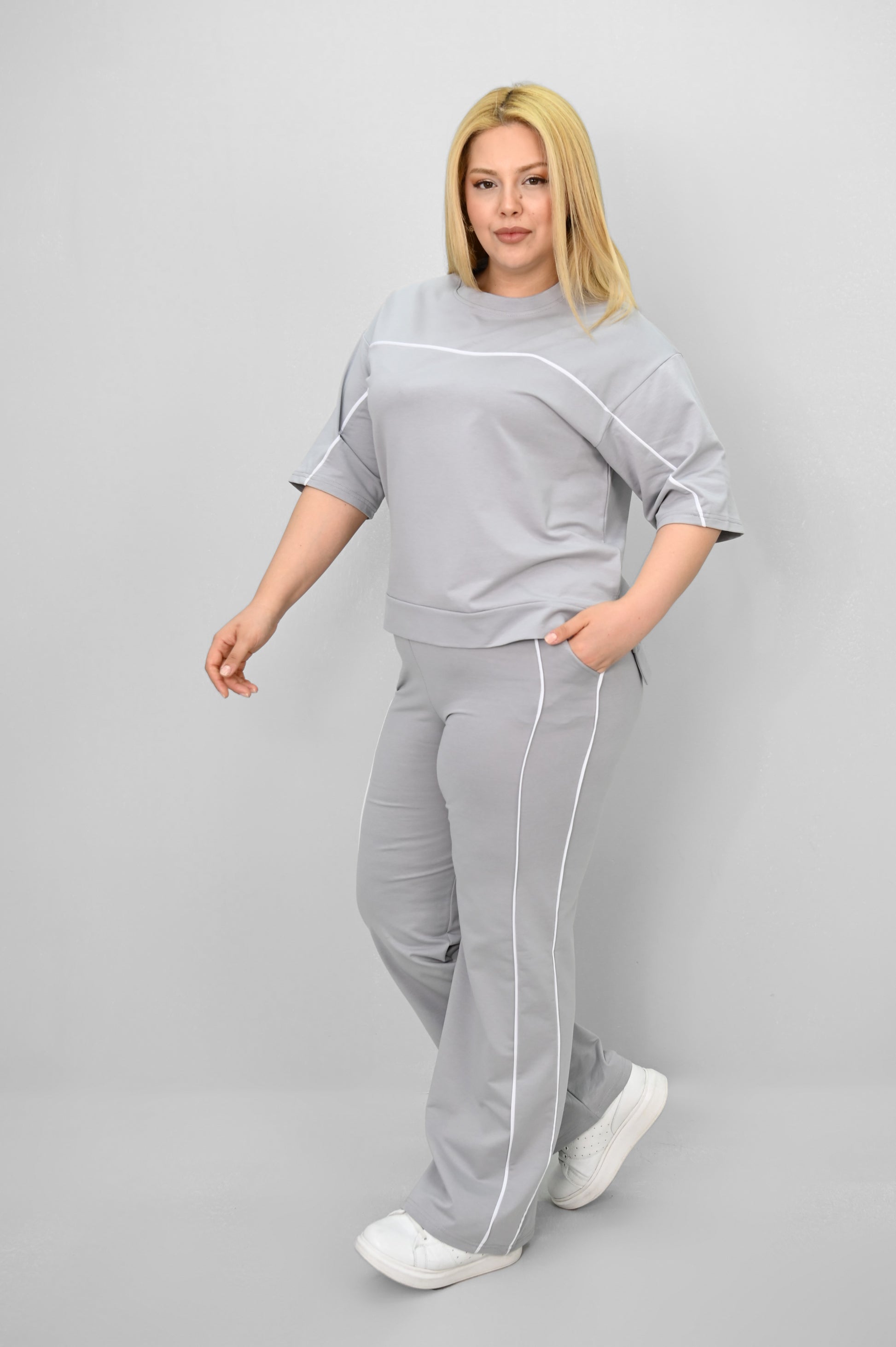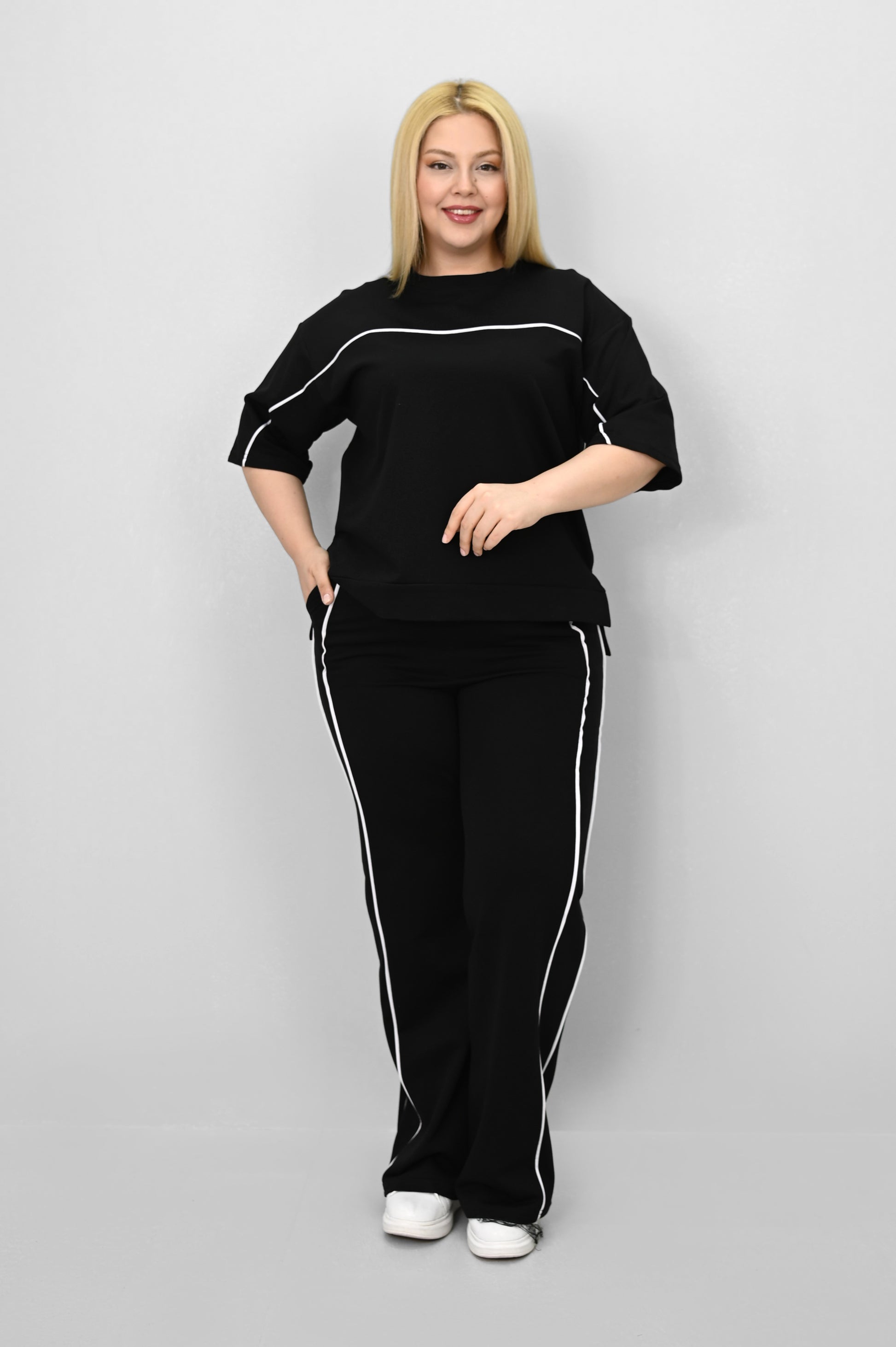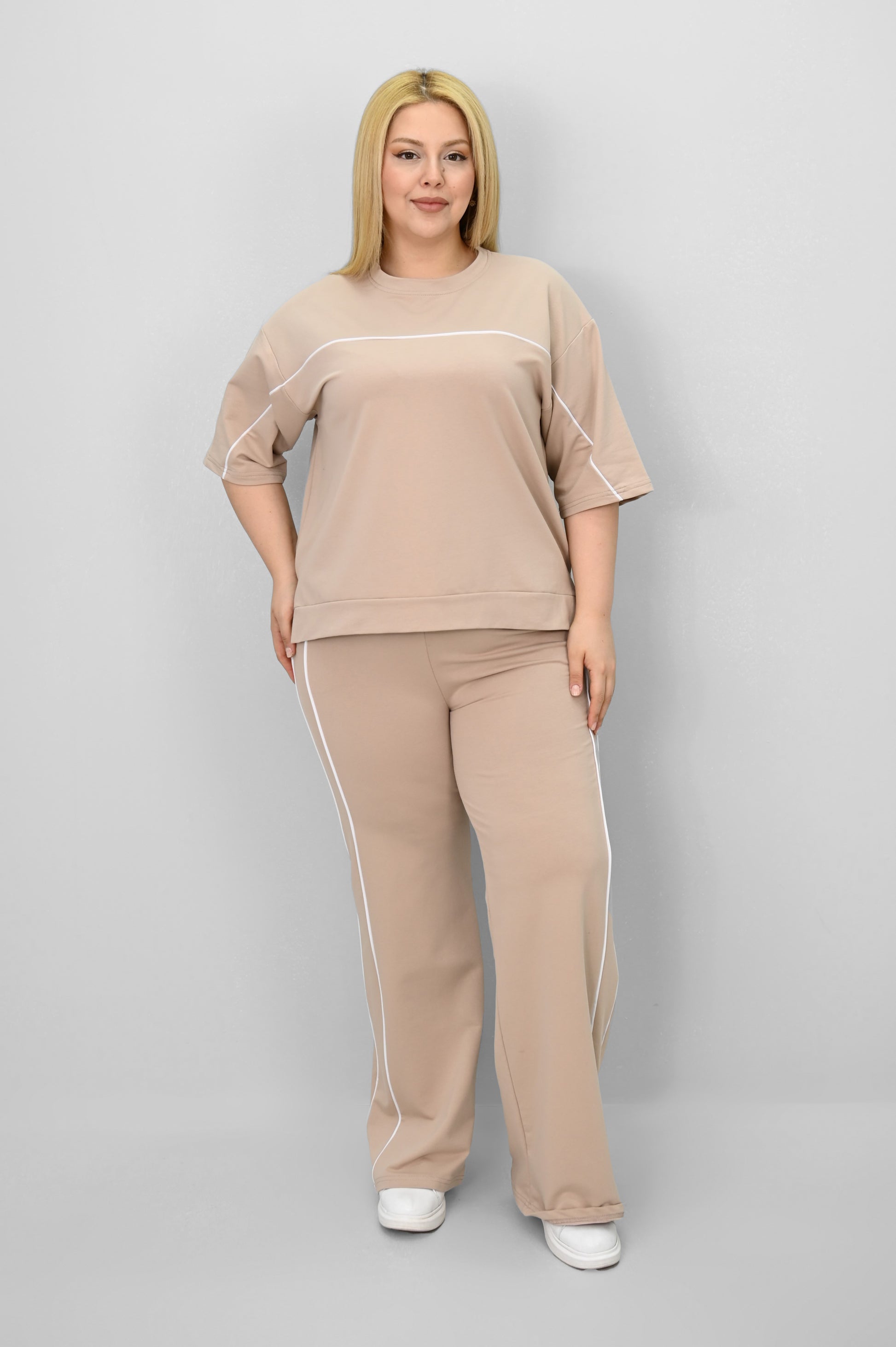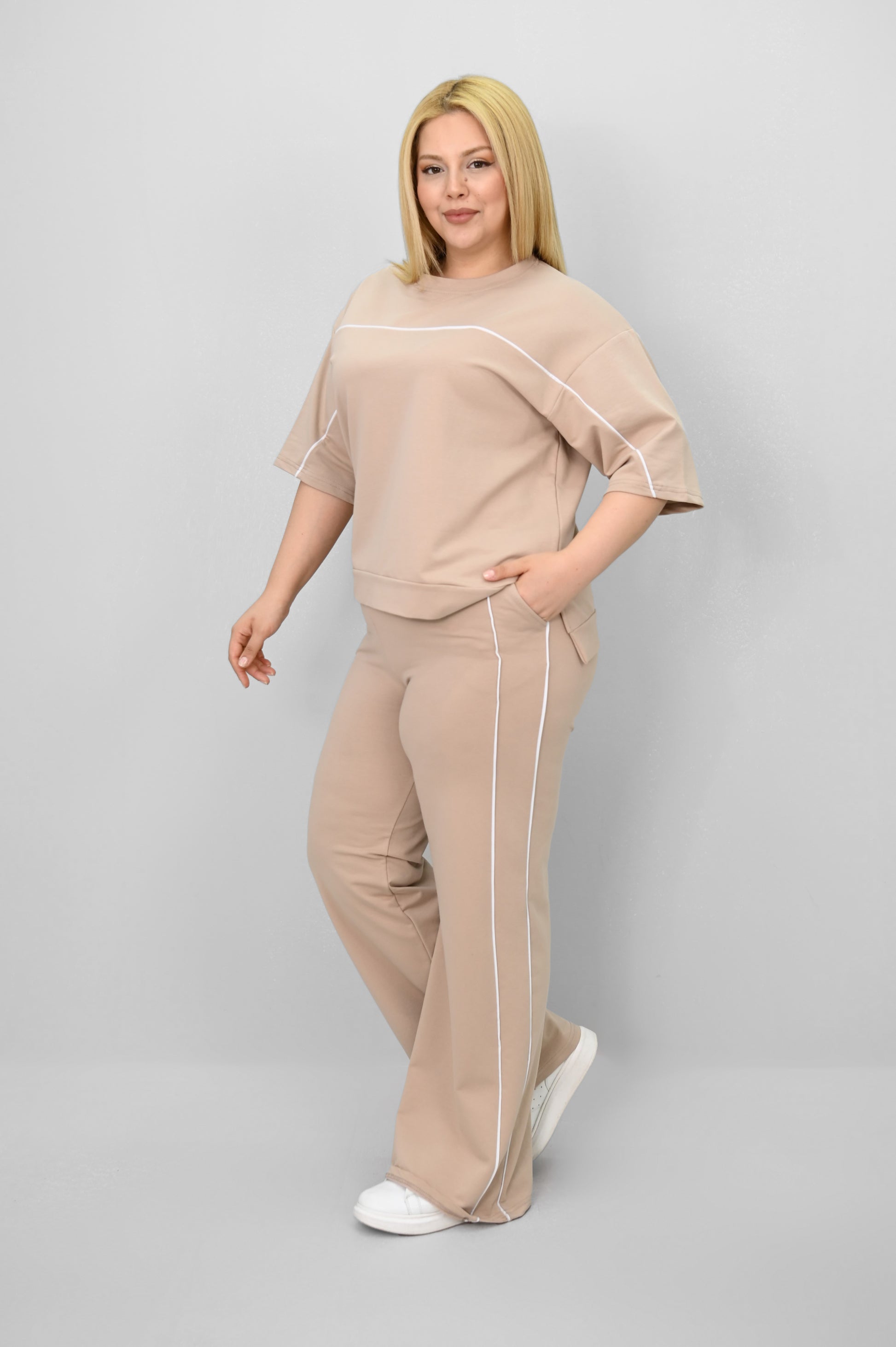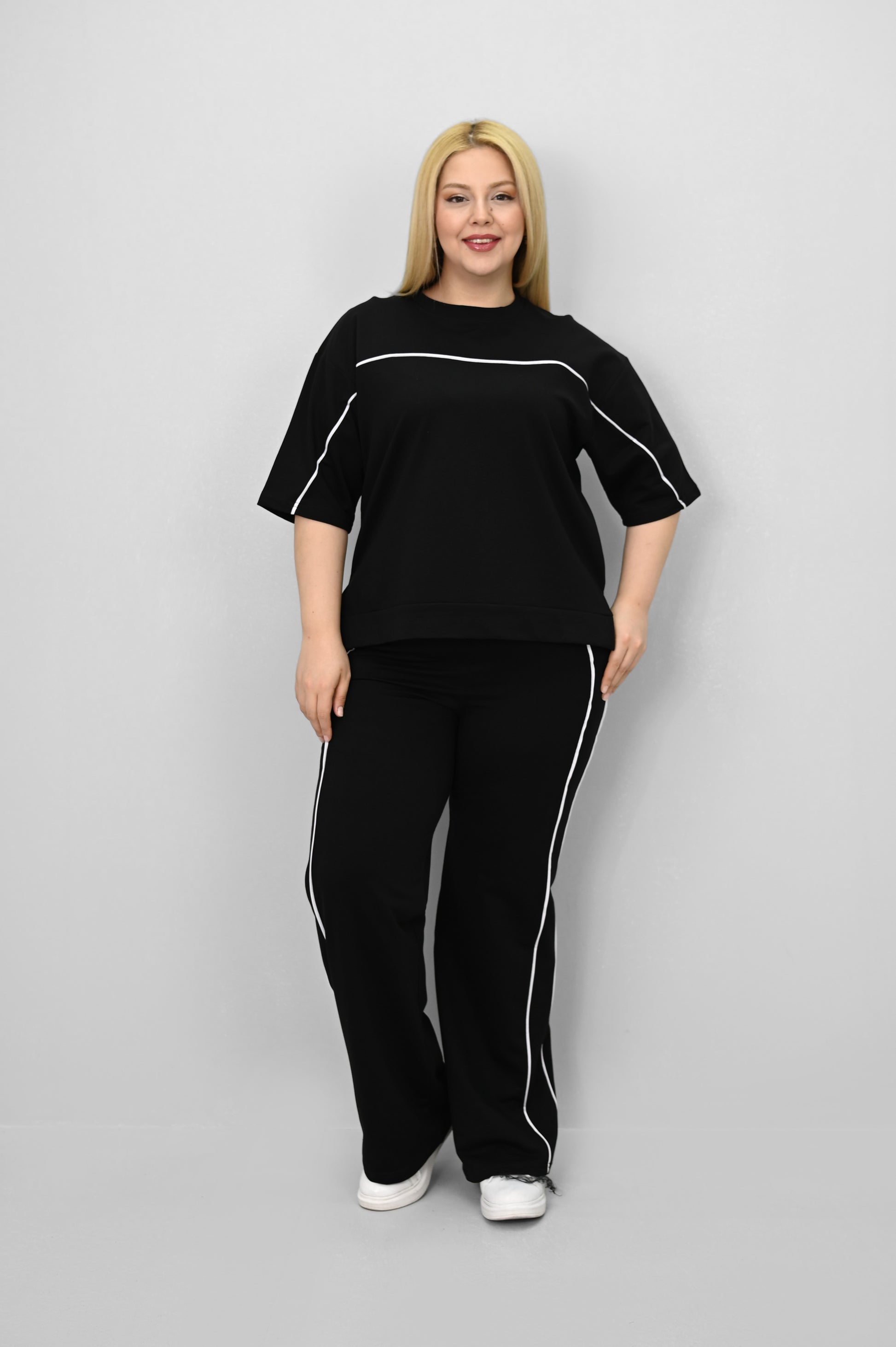 Kadın Büyük Beden Kısa Kollu Ara Biye Detaylı Bol Paça Eşofman Takımı 8189-25