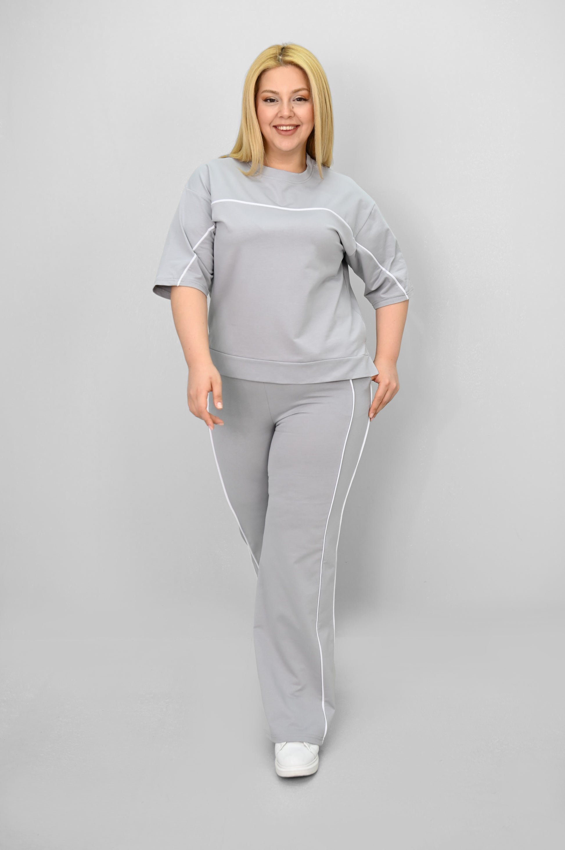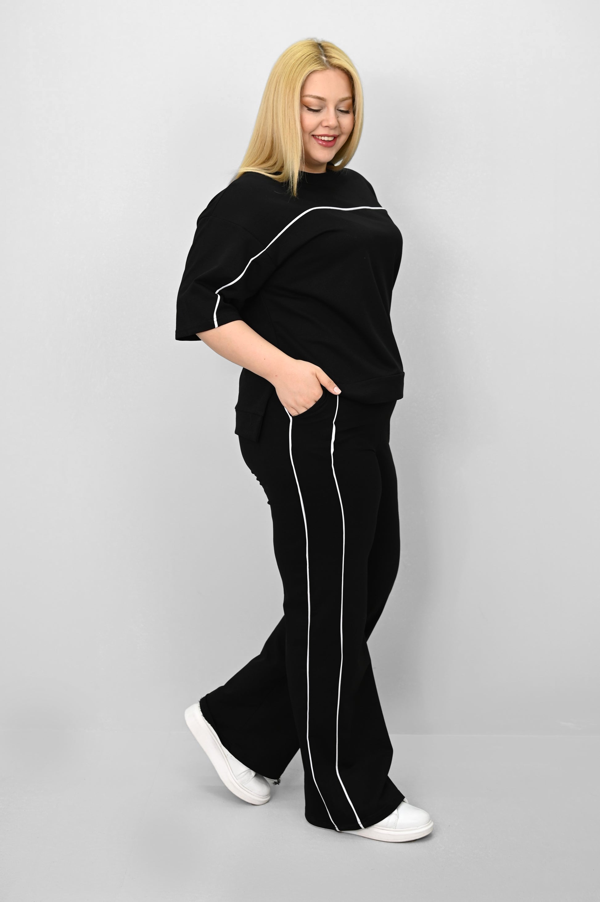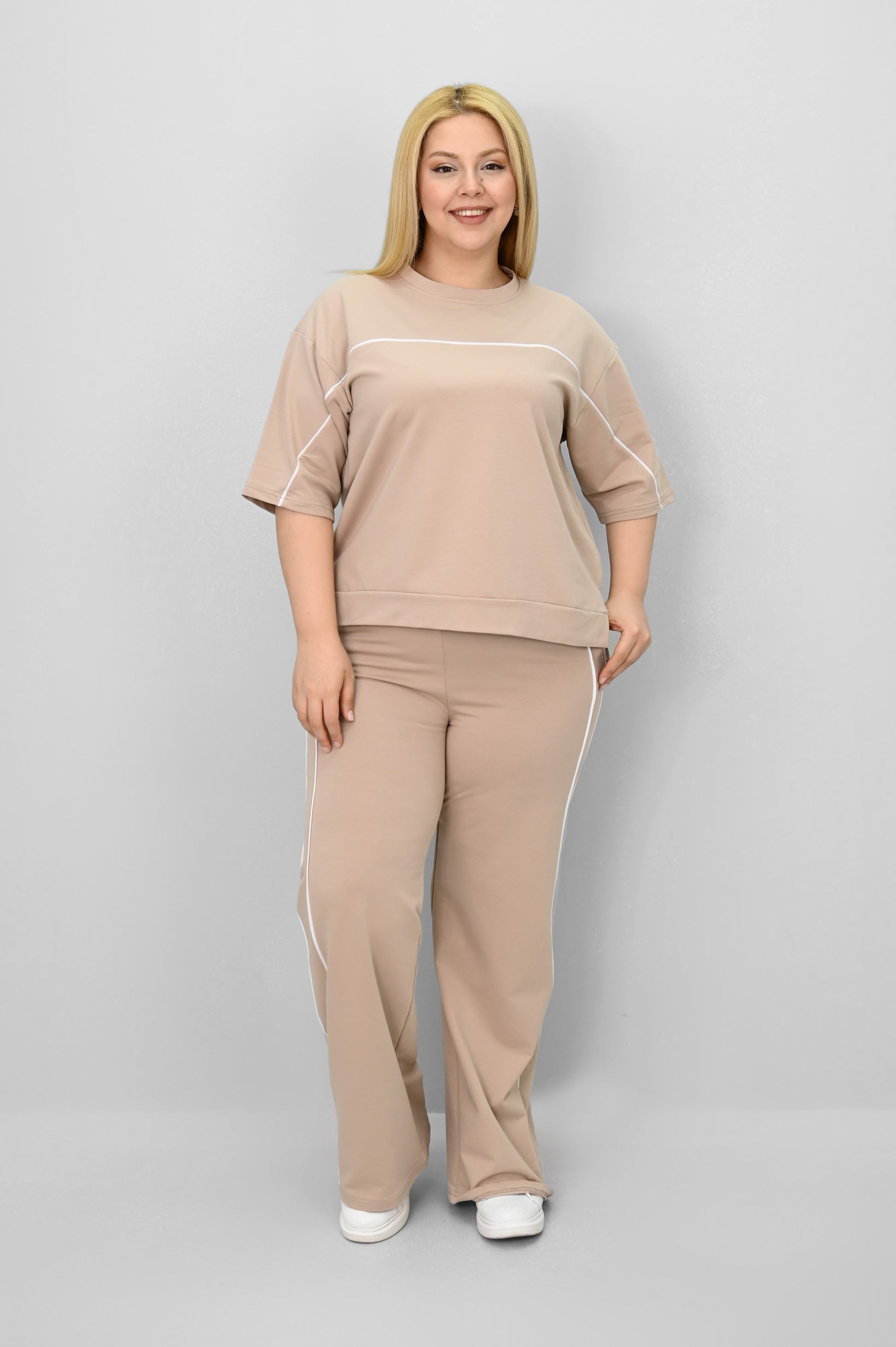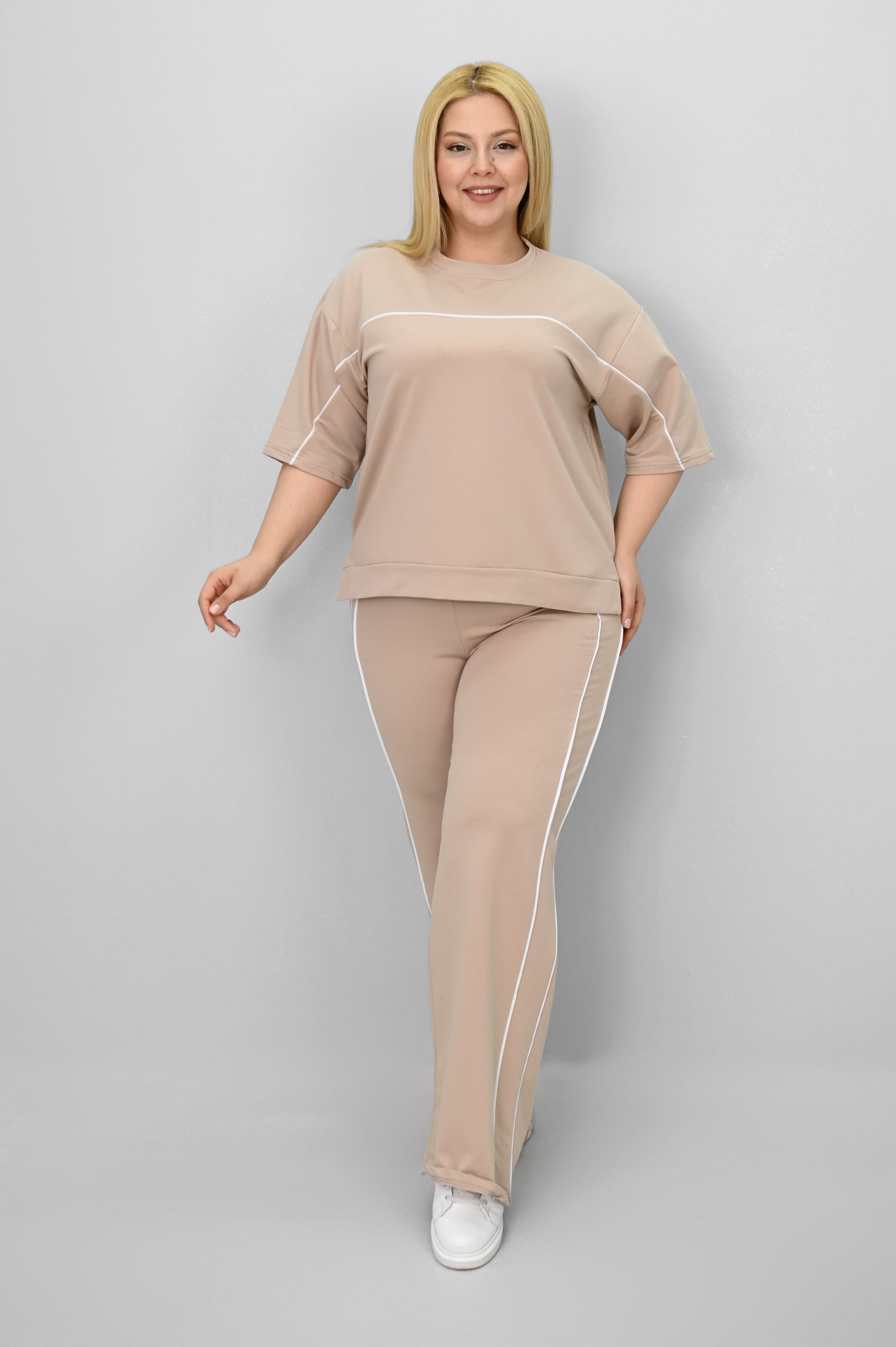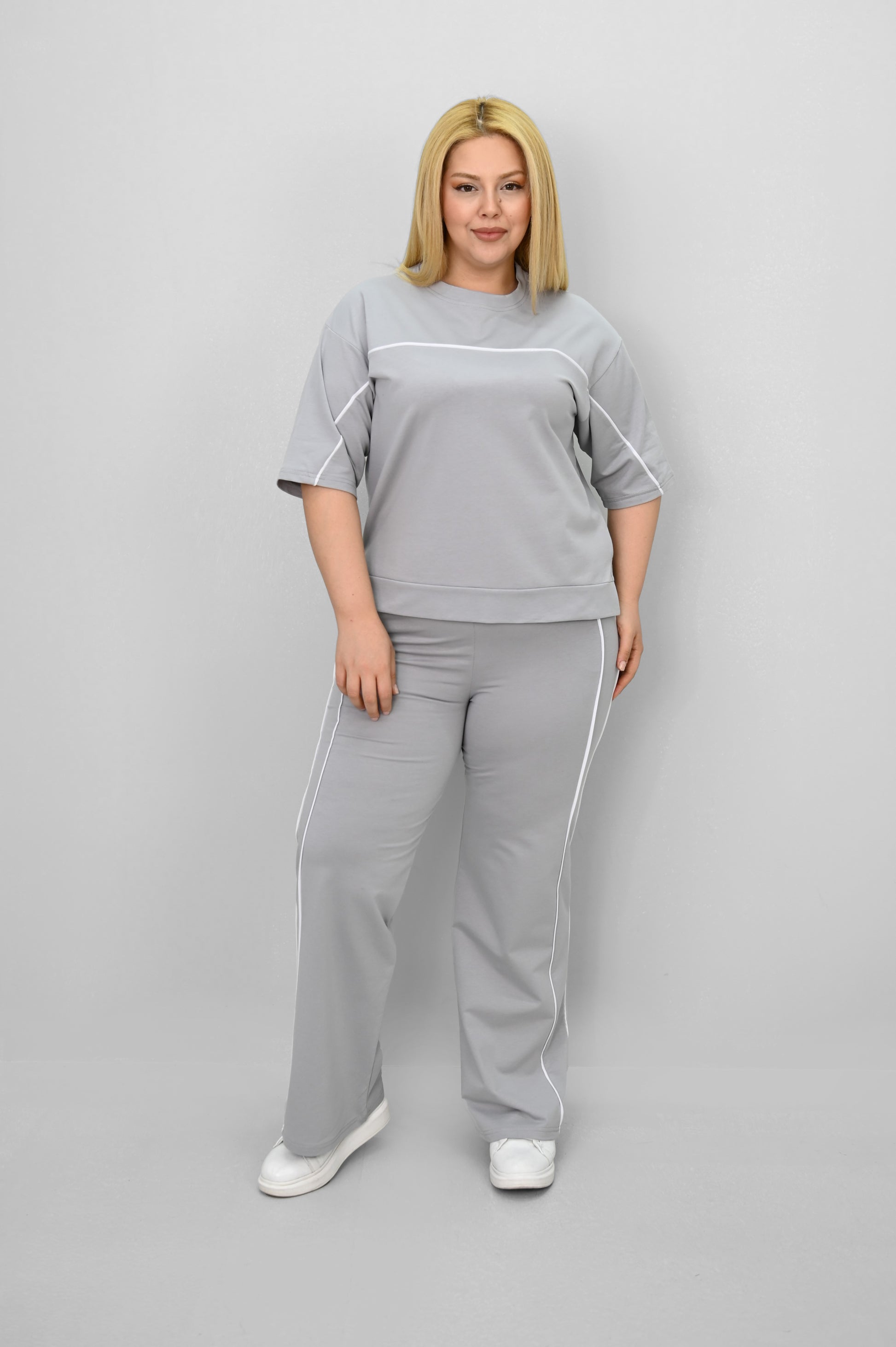 Kadın Büyük Beden Kısa Kollu Ara Biye Detaylı Bol Paça Eşofman Takımı 8189-25