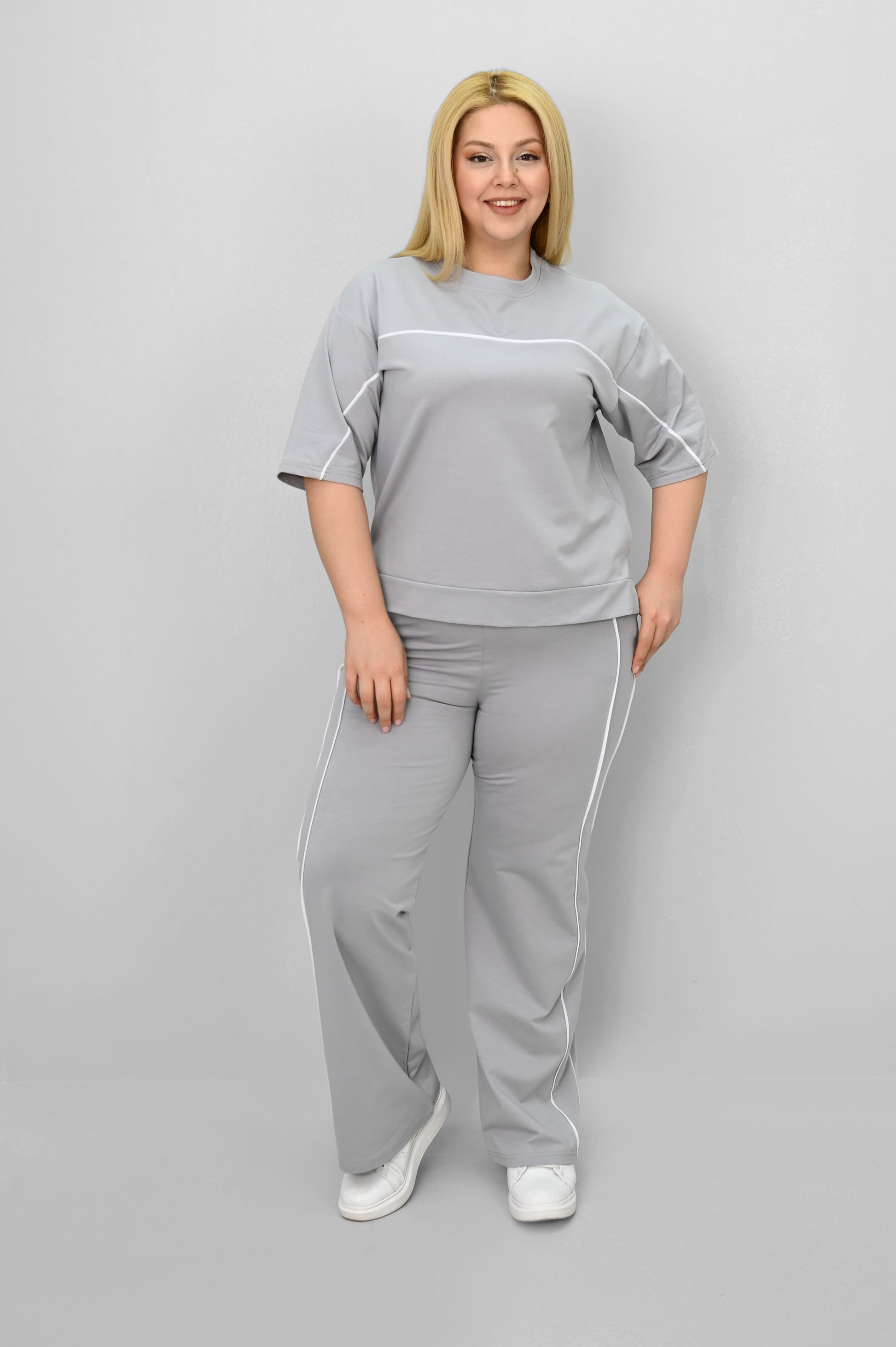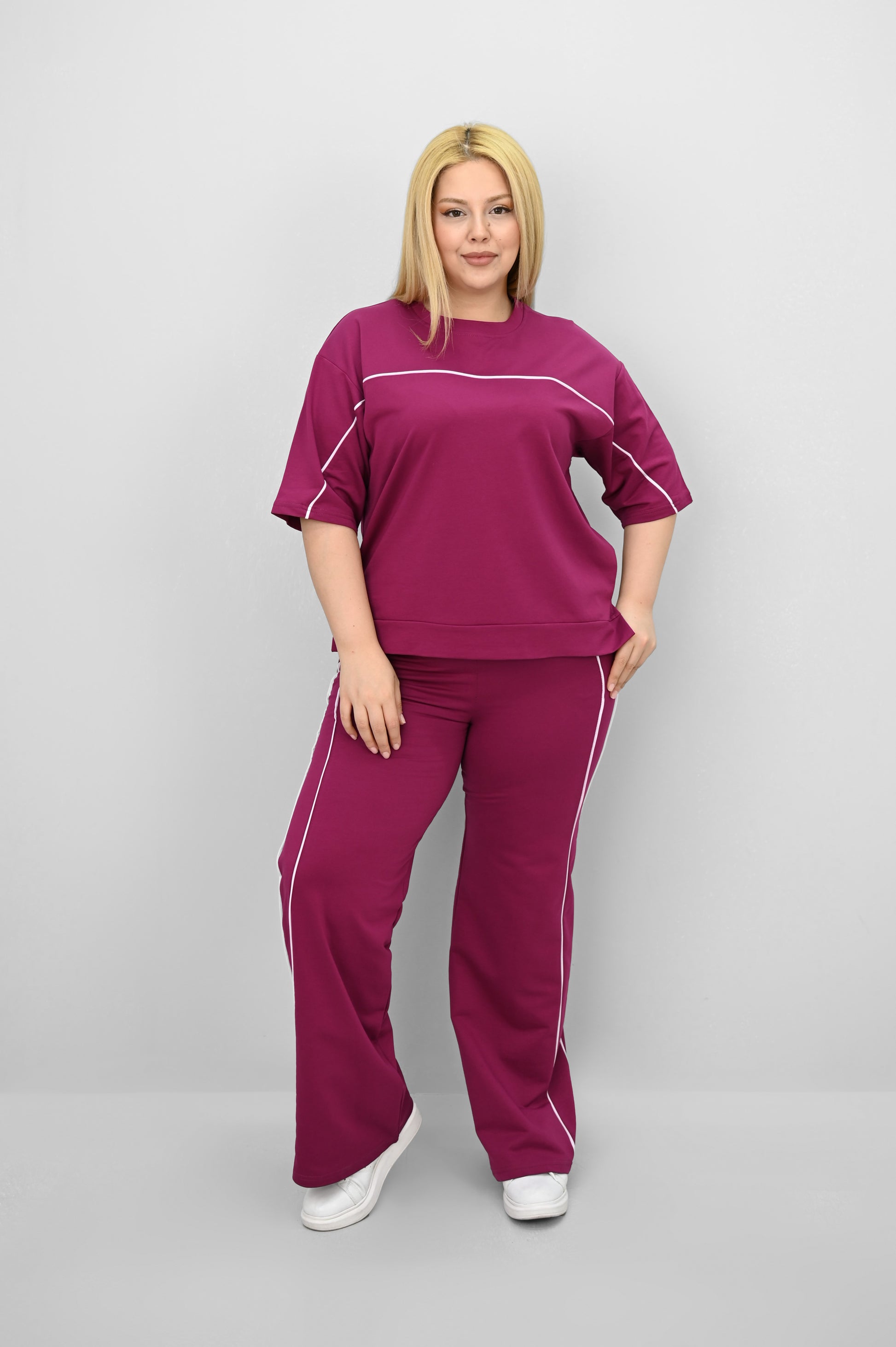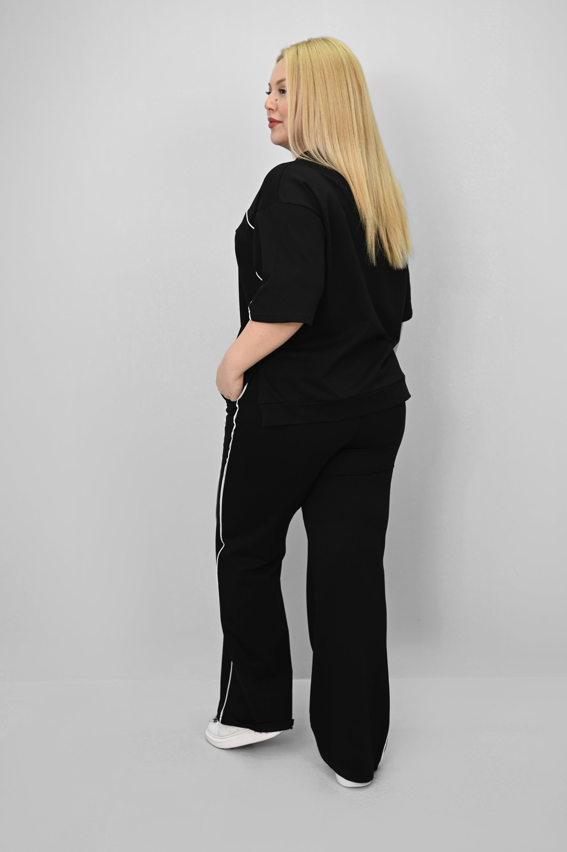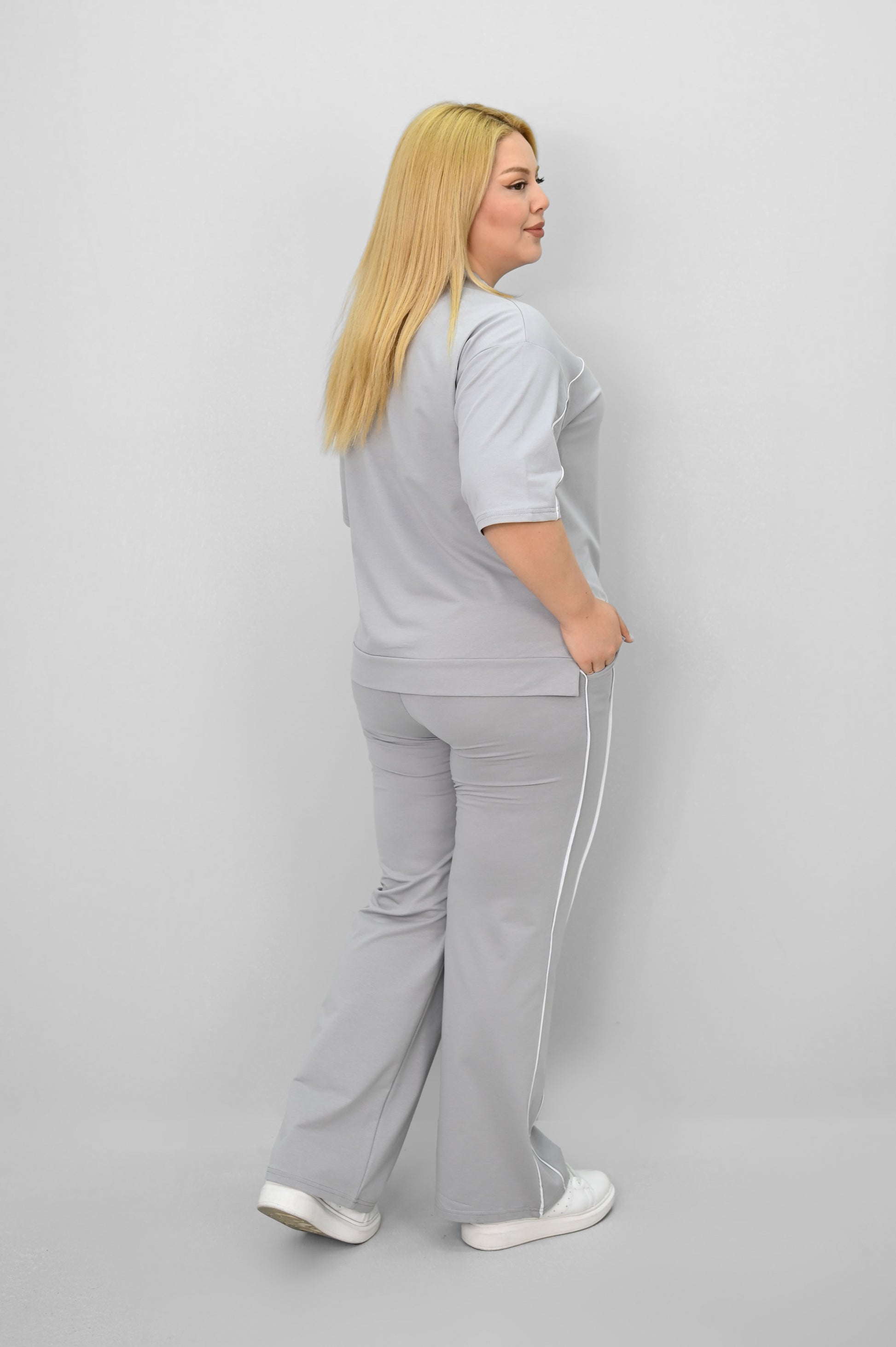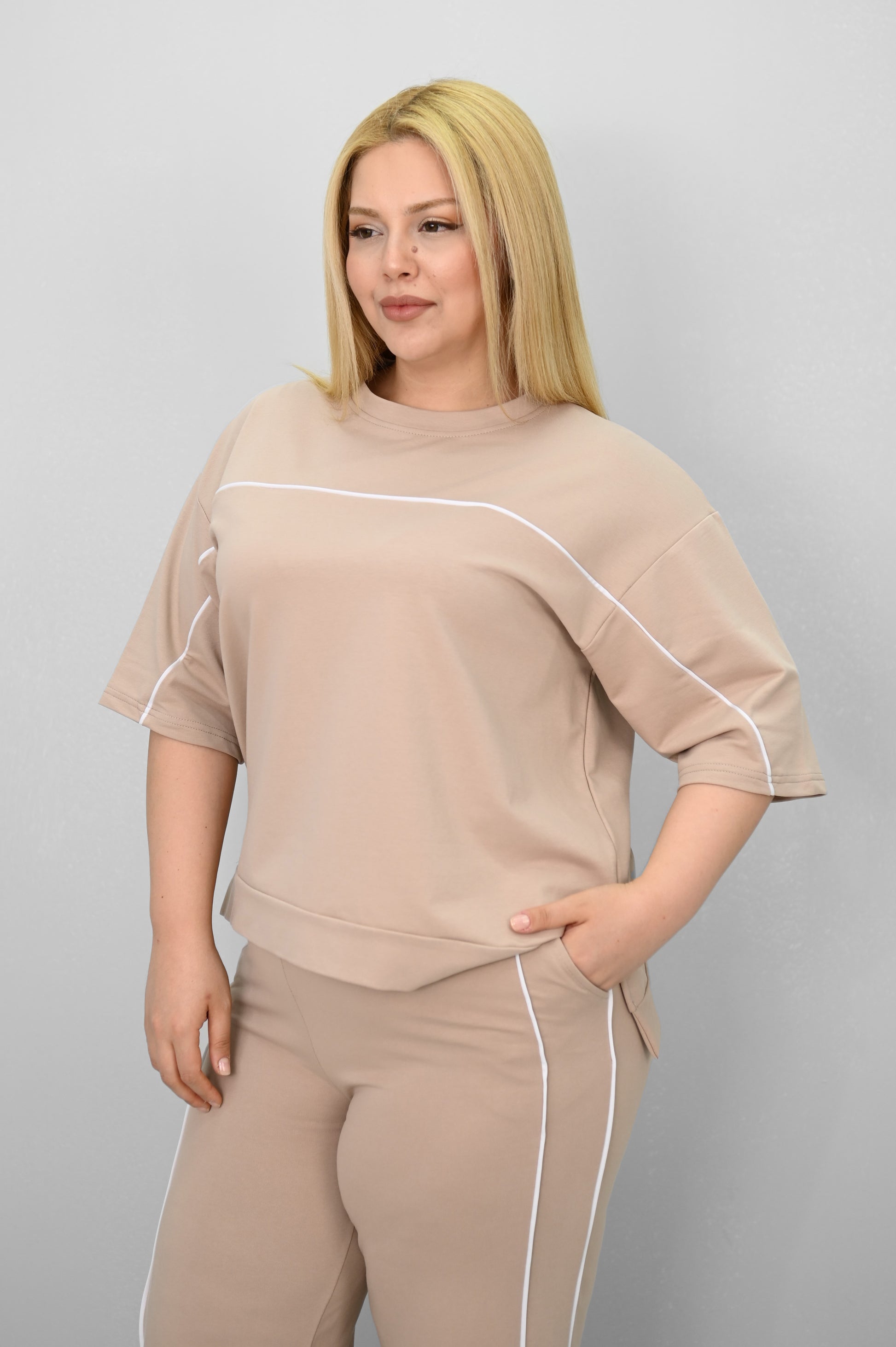 Kadın Büyük Beden Kısa Kollu Ara Biye Detaylı Bol Paça Eşofman Takımı 8189-25