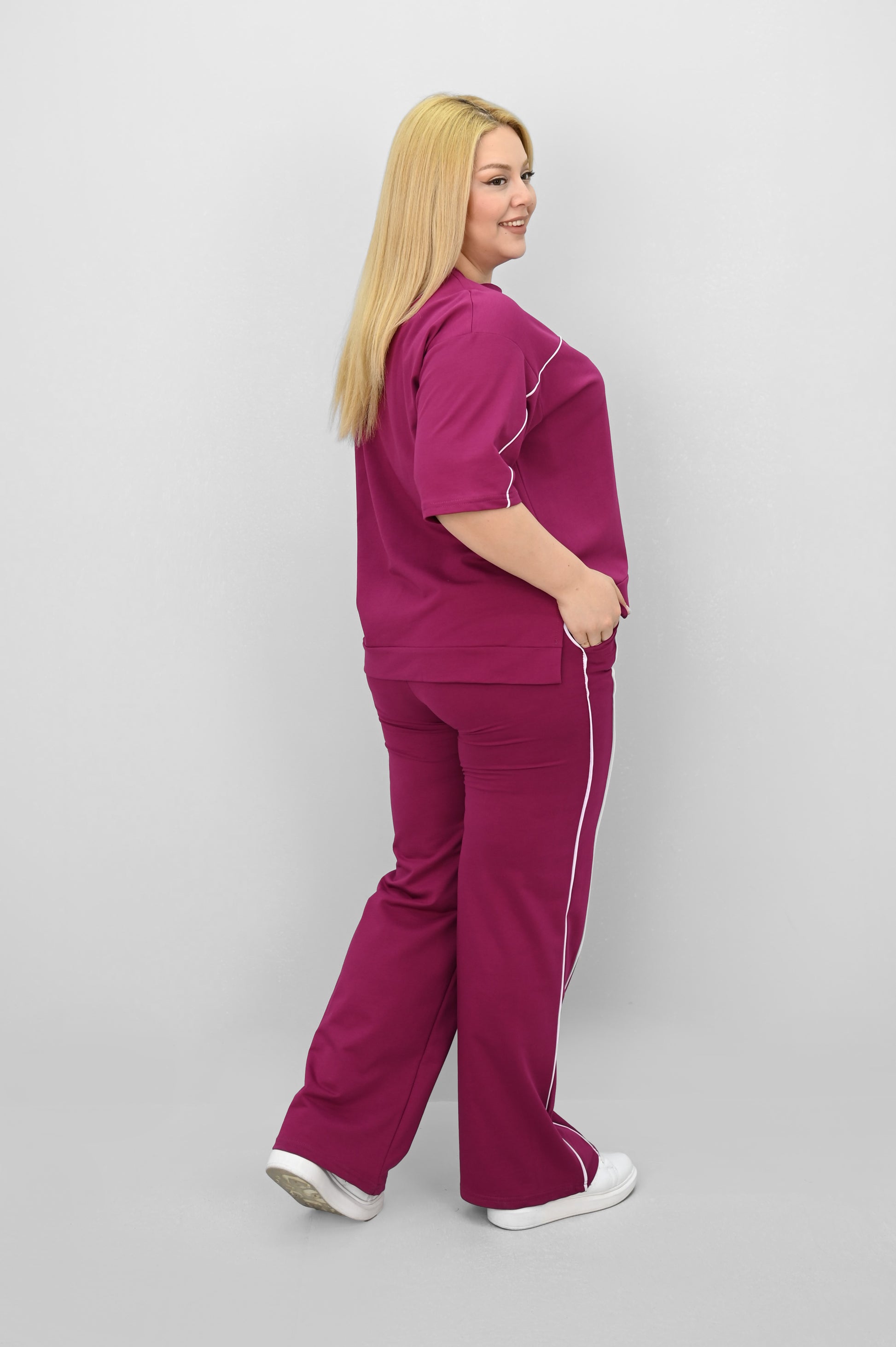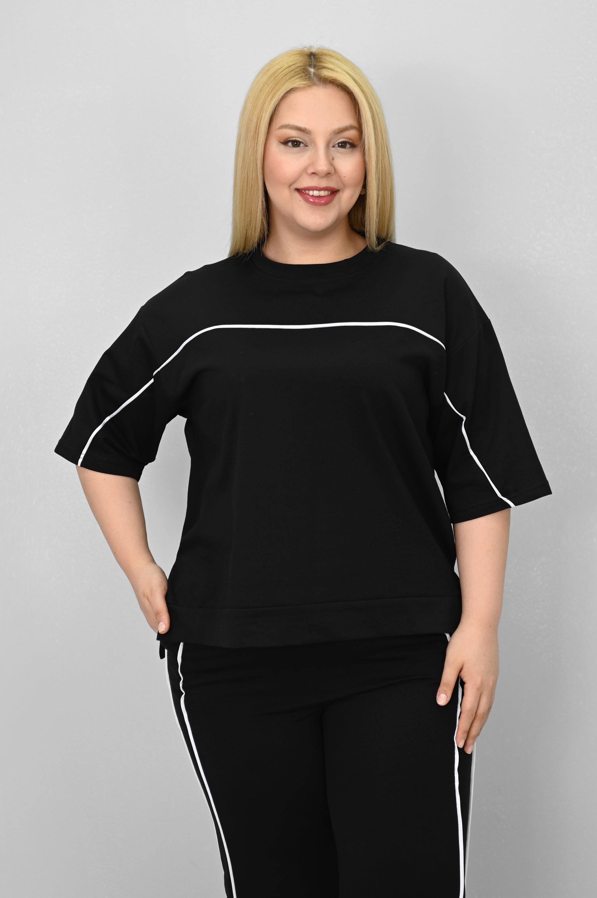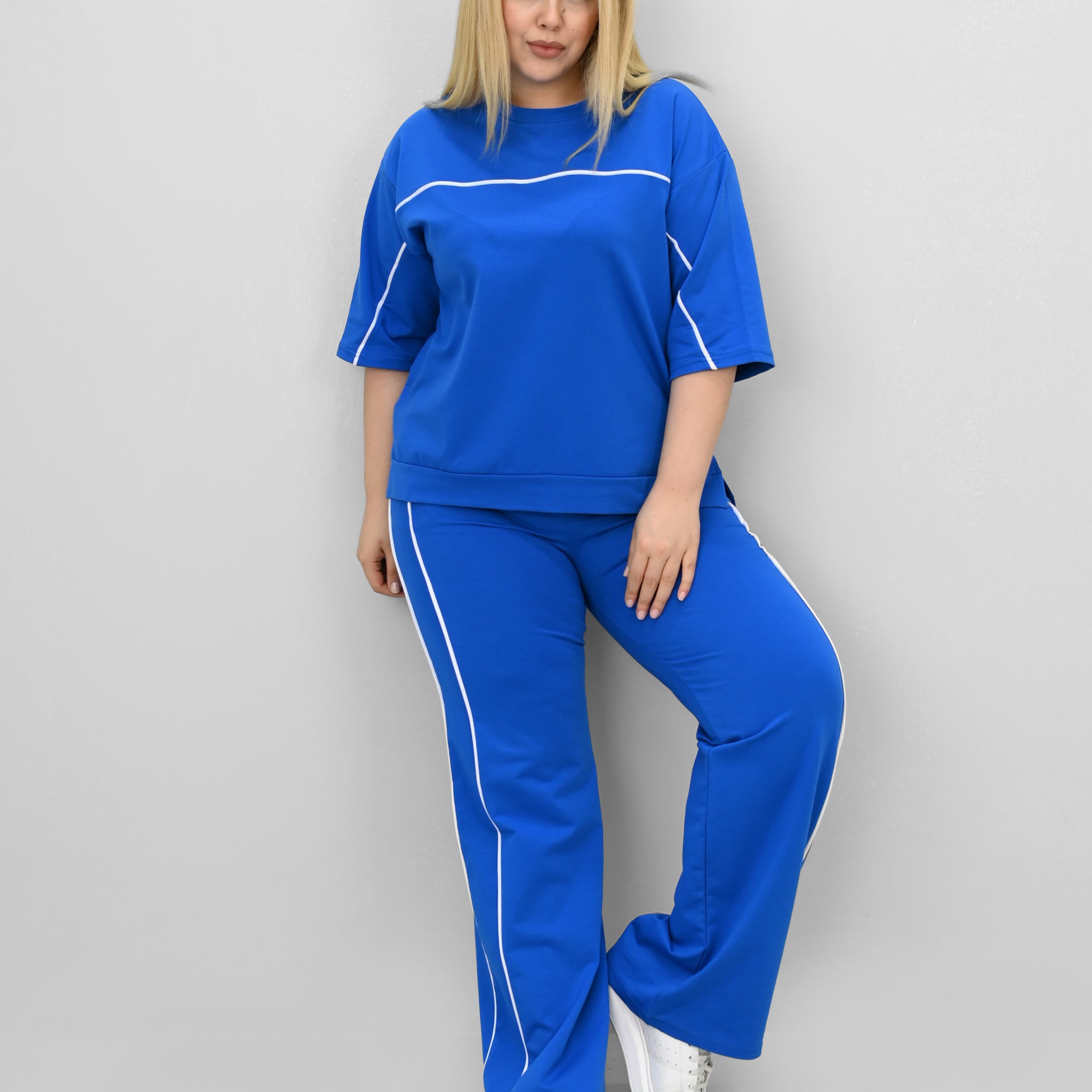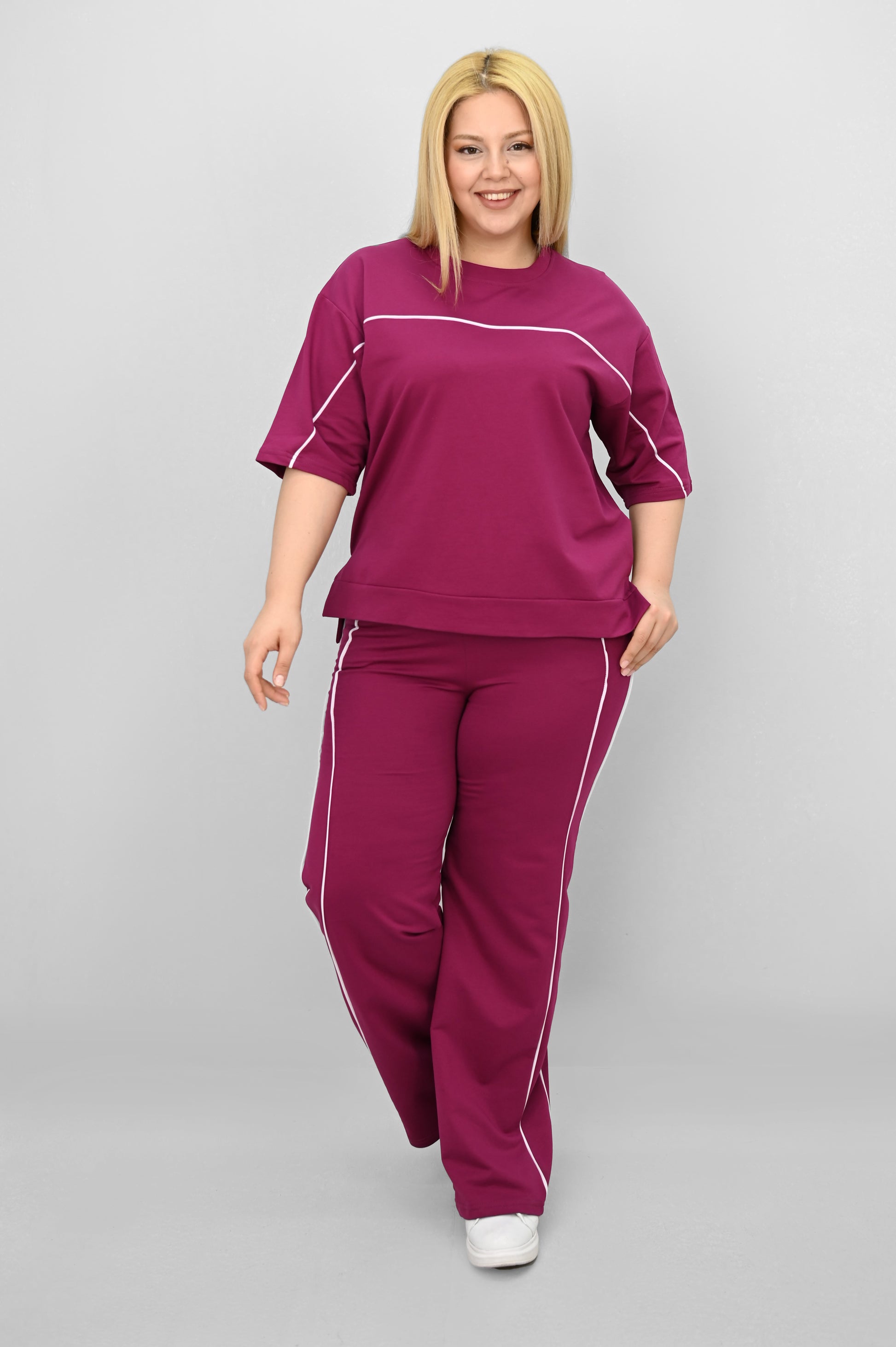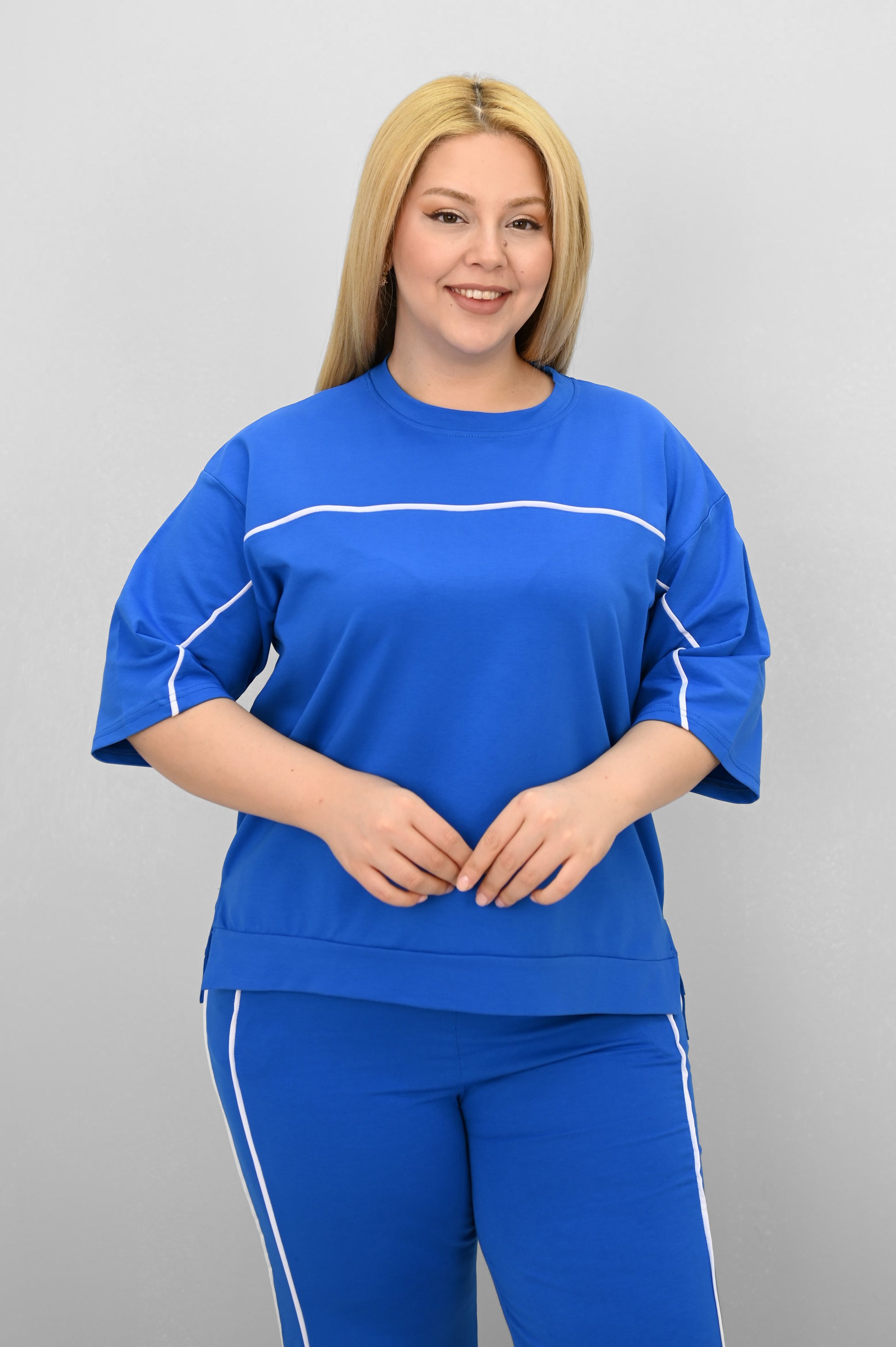Kadın Büyük Beden Kısa Kollu Ara Biye Detaylı Bol Paça Eşofman Takımı 8189-25