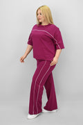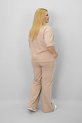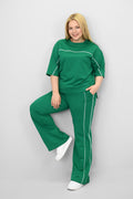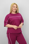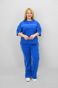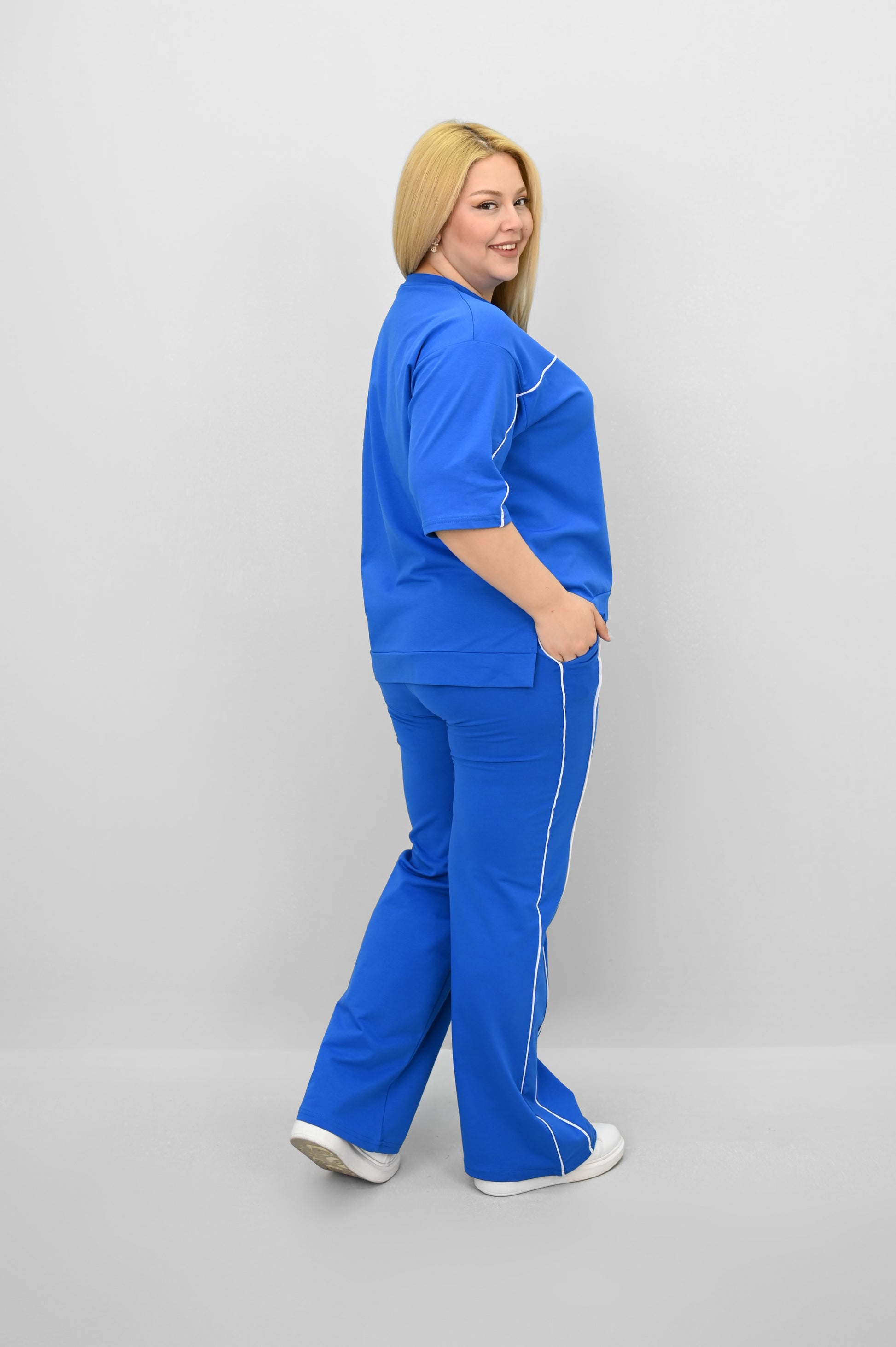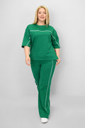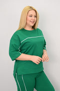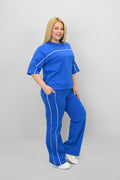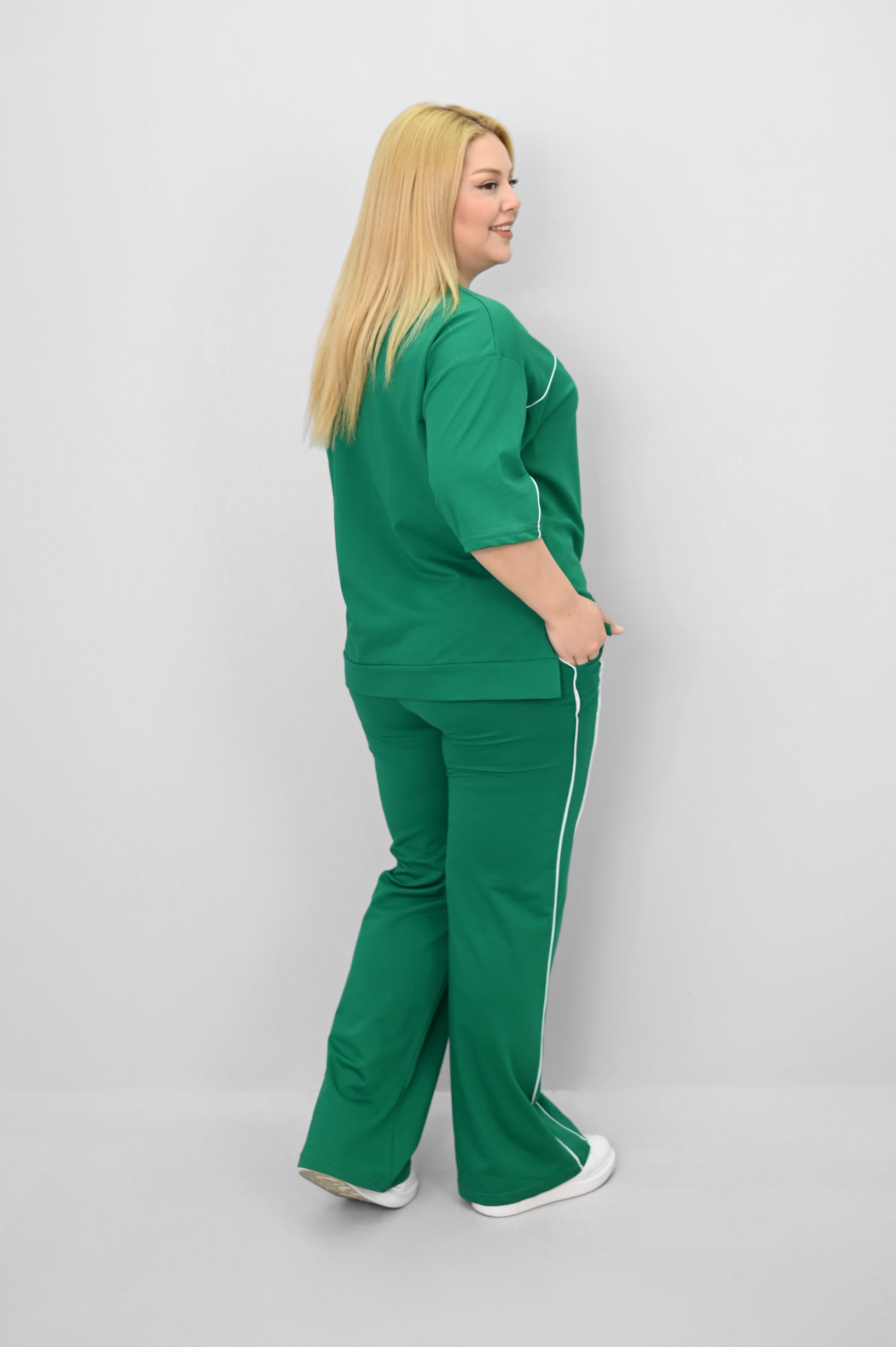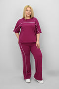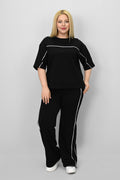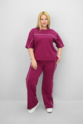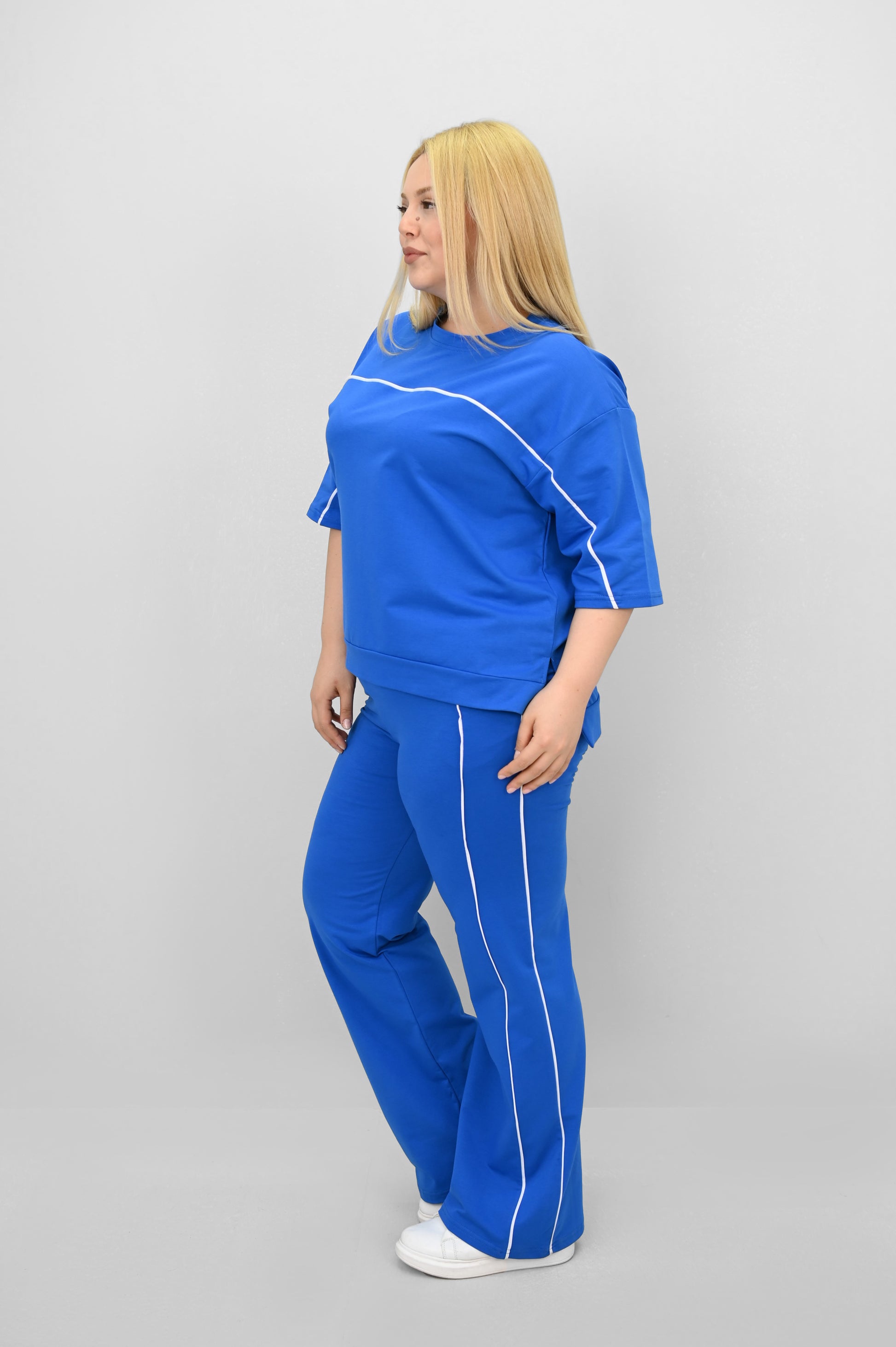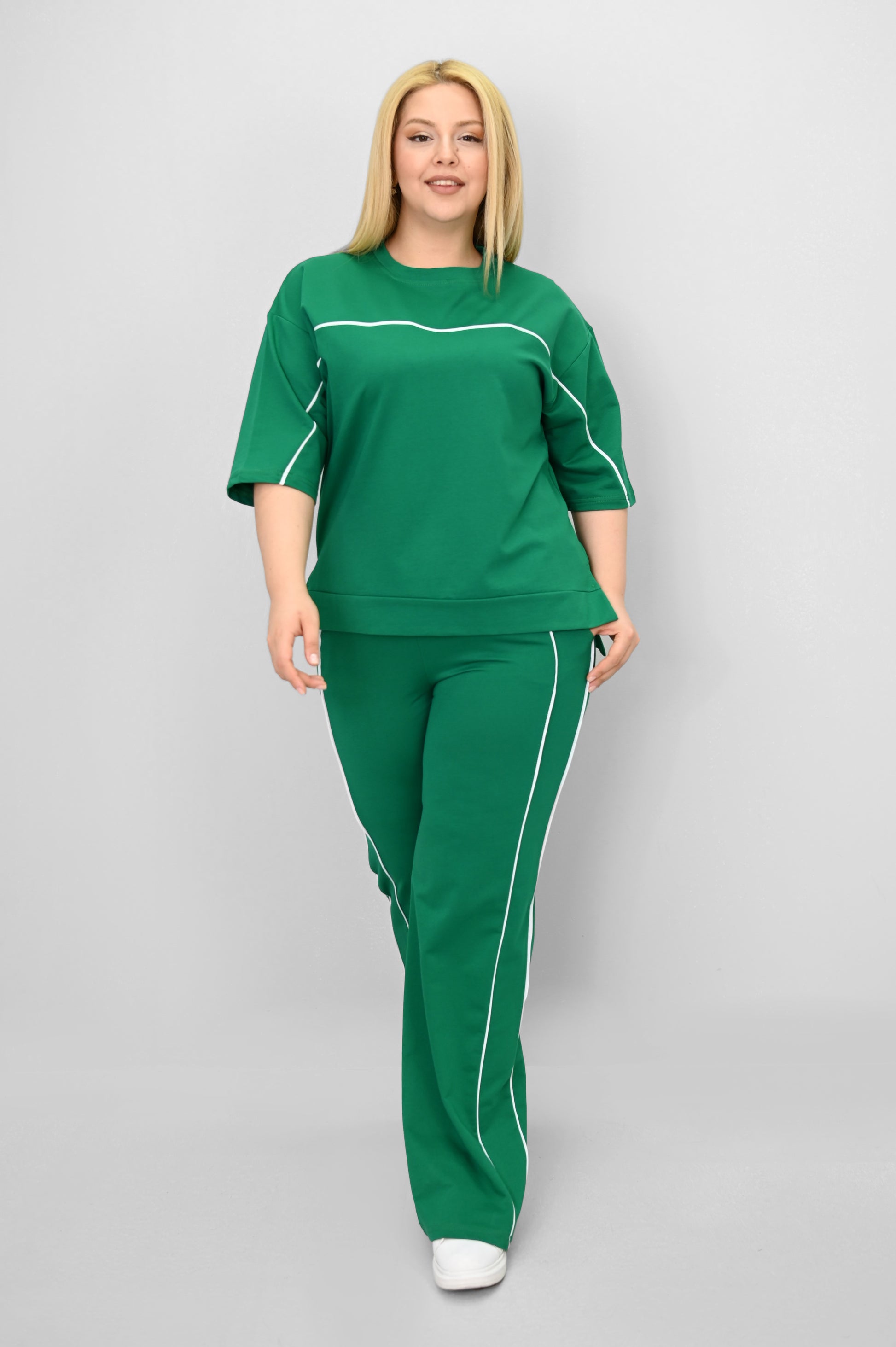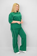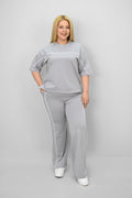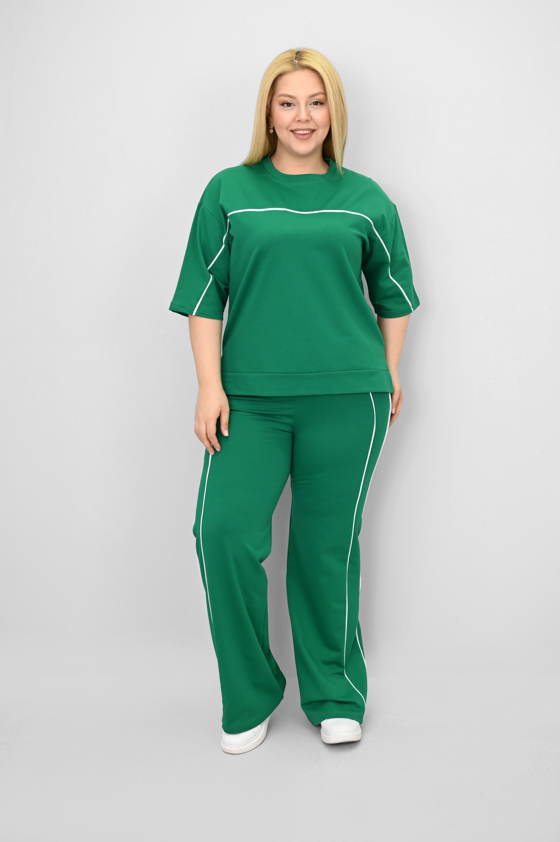 Kadın Büyük Beden Kısa Kollu Ara Biye Detaylı Bol Paça Eşofman Takımı 8189-25