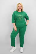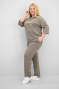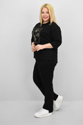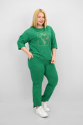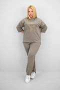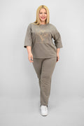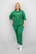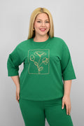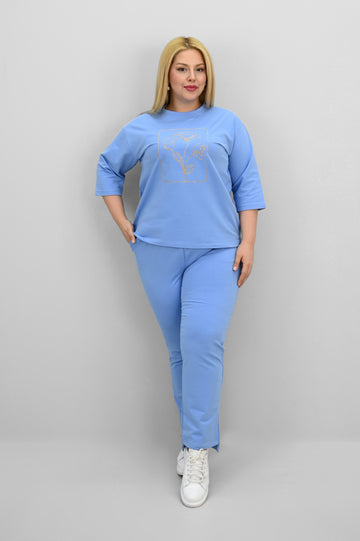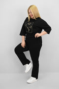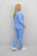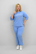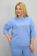 Kadın Büyük Beden Kısa Kollu Çiçek İşlemeli Eşofman Takımı 8199-25