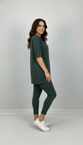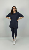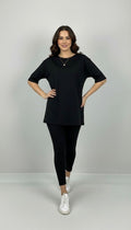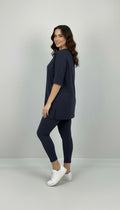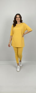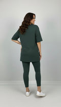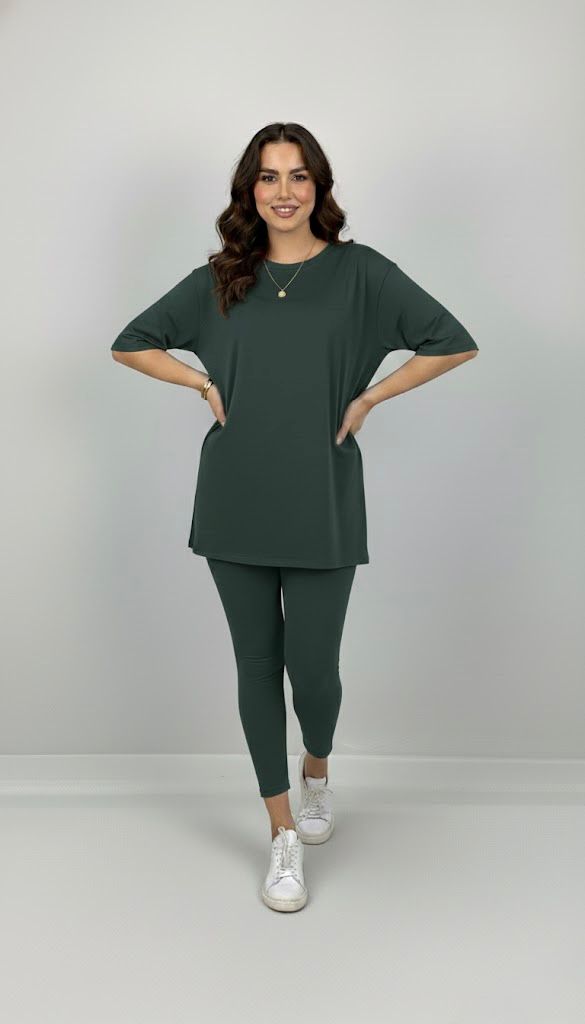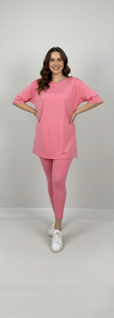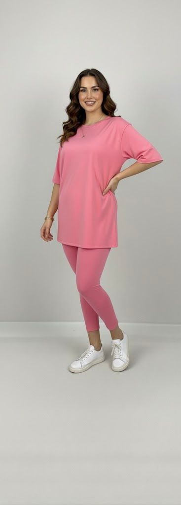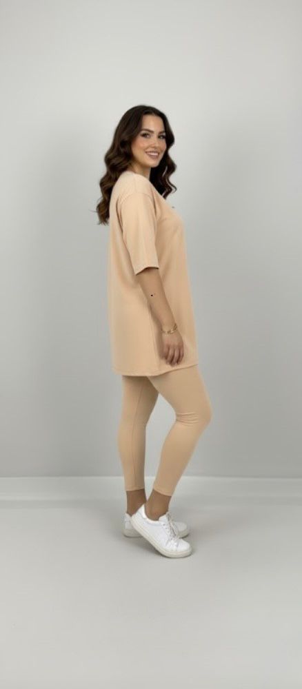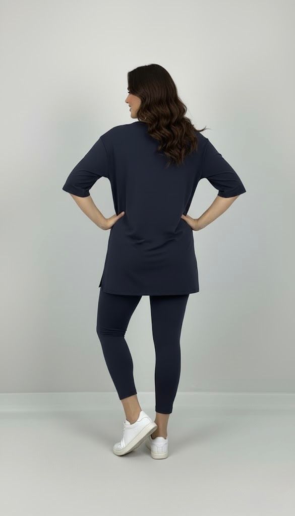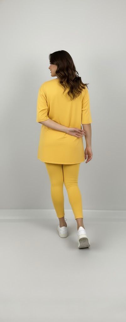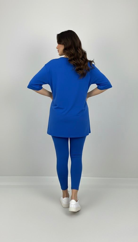 Kadın büyük beden tayt takımı, 42-52 bedene uyumludur. Üst parça kısa kollu ve bisiklet yaka modeldir. Oversize kesimi sayesinde ferah bir kullanım sunarken, tişört uzunluğu baseni kapatacak şekilde tasarlanmıştır. Alt parça ise yüksek bel tayt olup, vücuda tam oturur ve hareket özgürlüğü sağlar. Esnek yapısıyla gün boyu konfor sunan likralı süprem kumaştan üretilmiştir. Manken ’in üzerindeki beden 44 bedendir. (Bedenler arası +/- 2cm fark olmaktadır.) Model Ölçüleri Boy: 1,72 Kilo: 90 Göğüs: 104 Bel: 88 Basen: 115