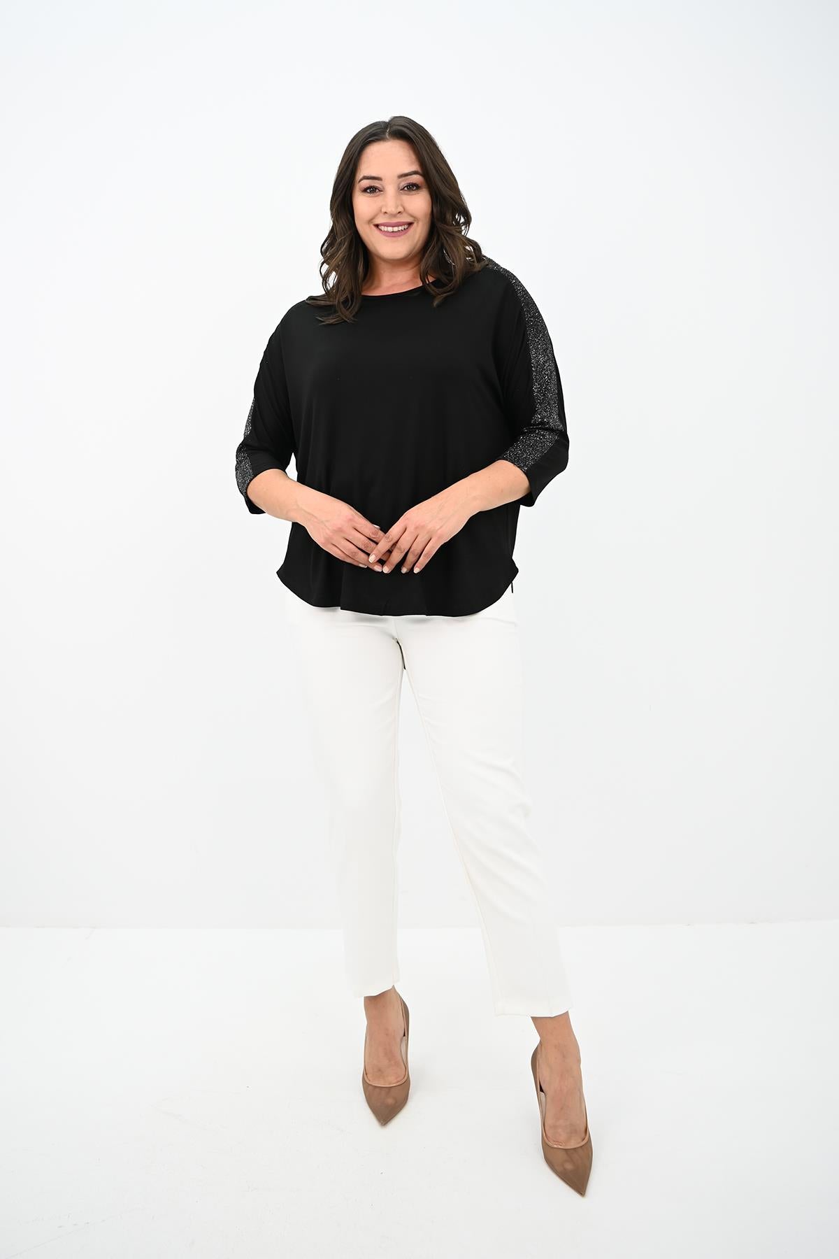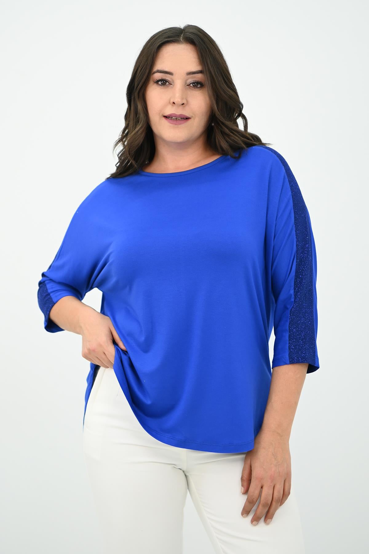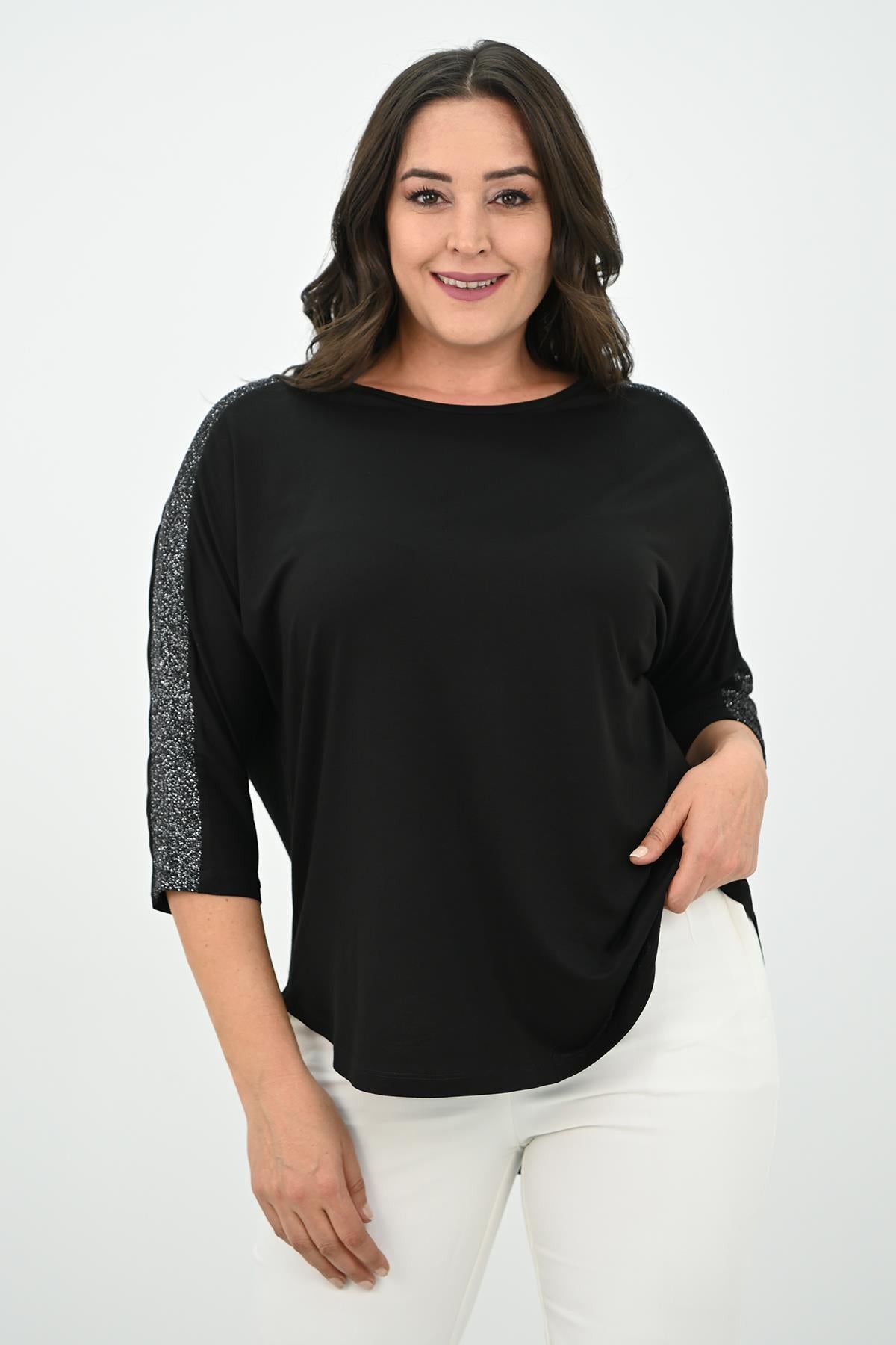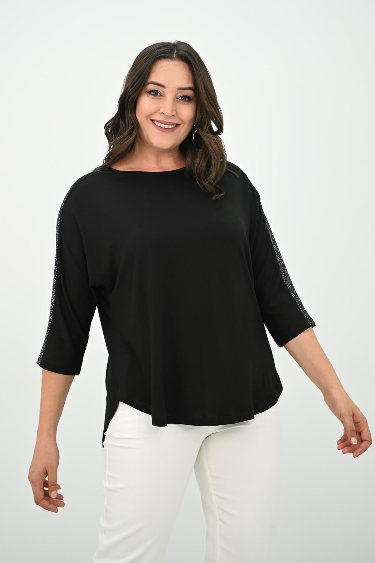 Kadın Büyük Beden Kolları Sim Detaylı Bluz 1855