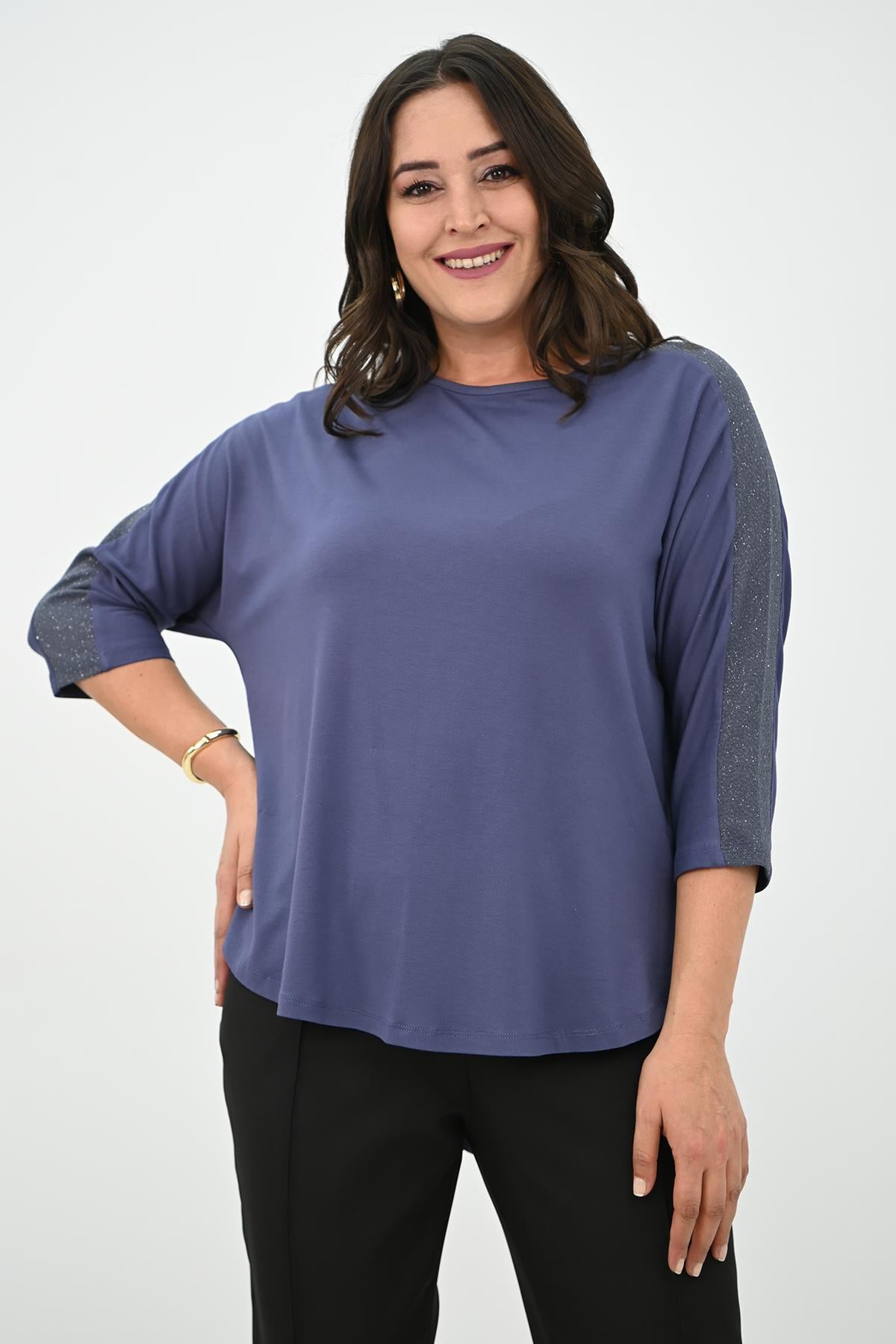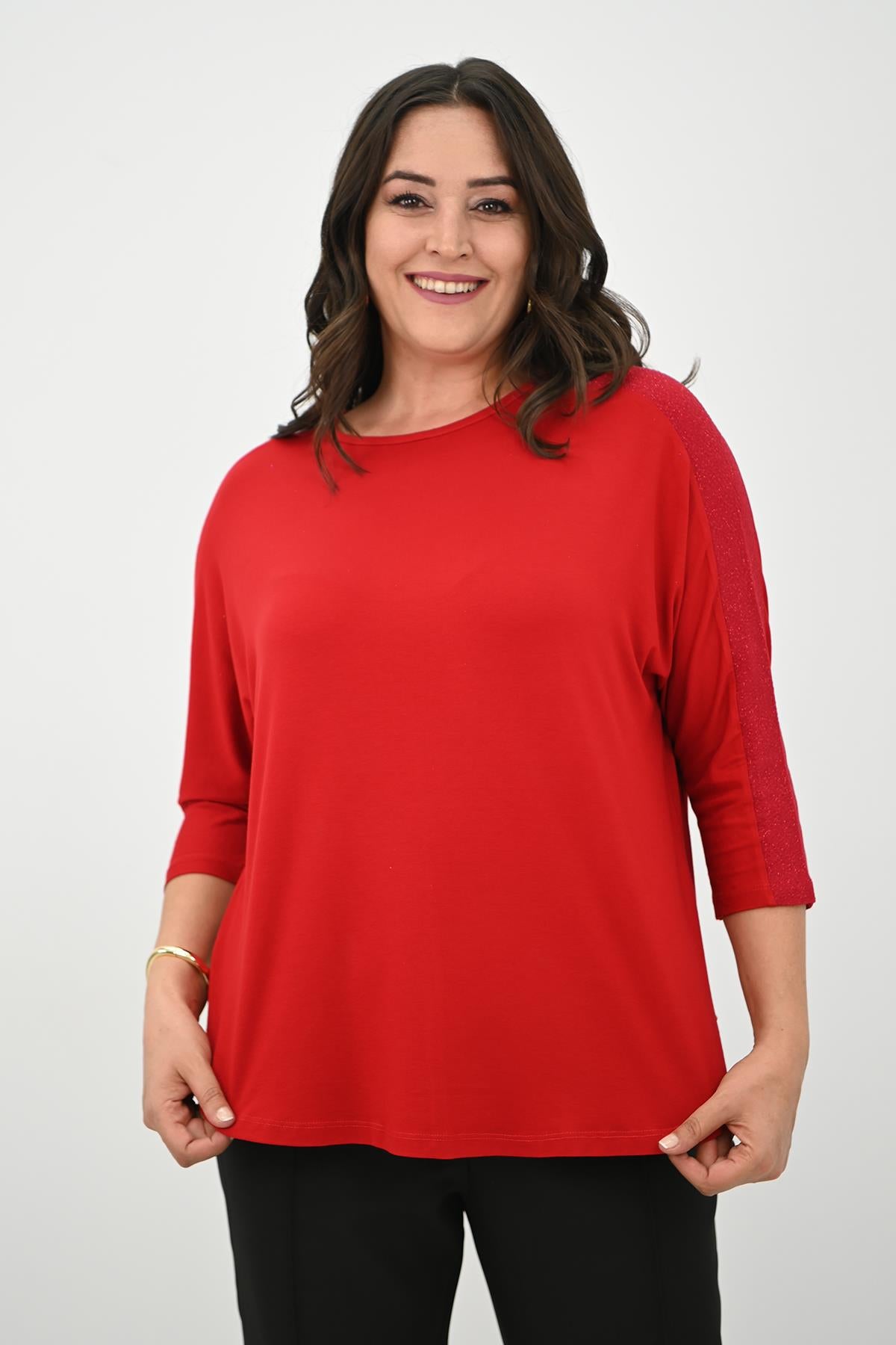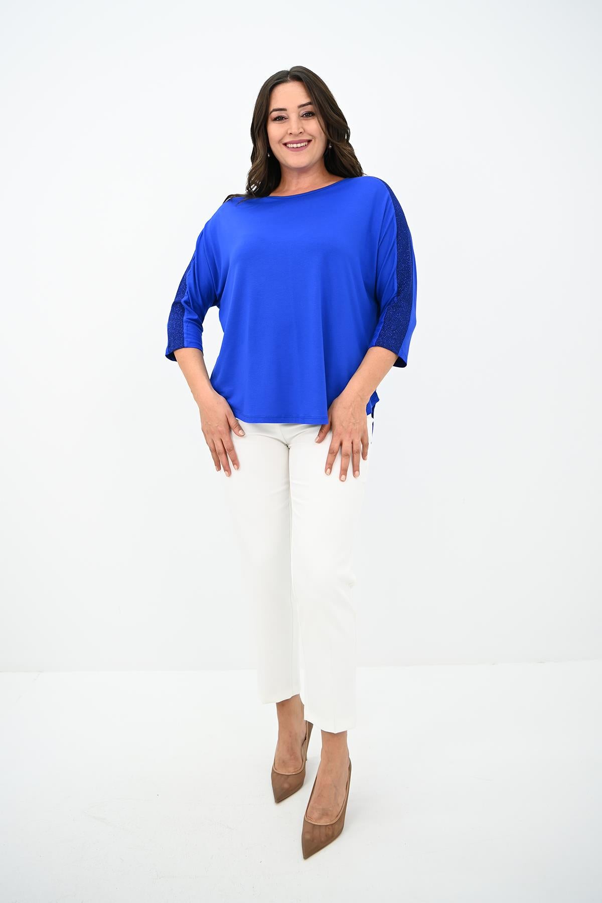 Kadın Büyük Beden Kolları Sim Detaylı Bluz 1855