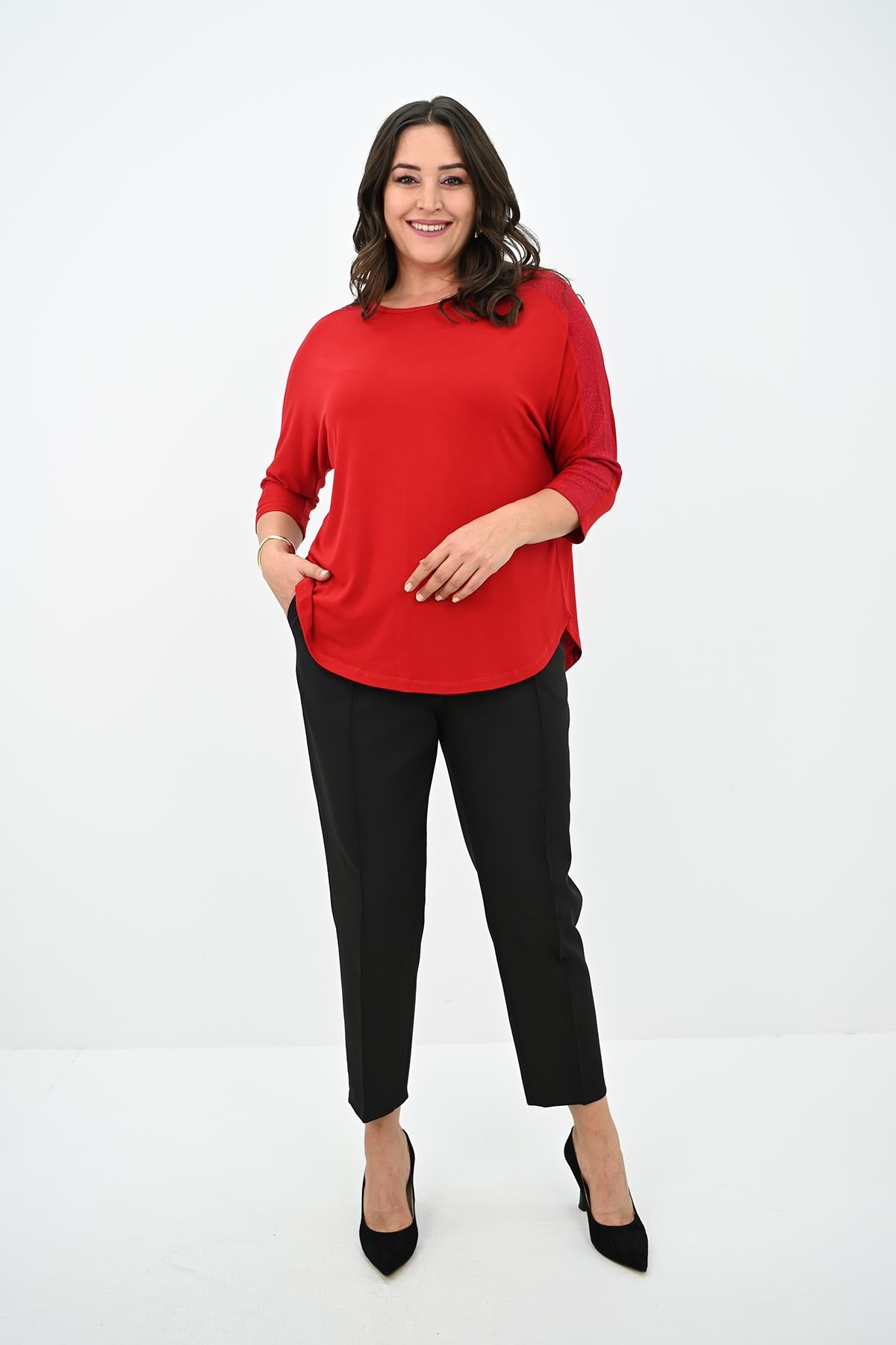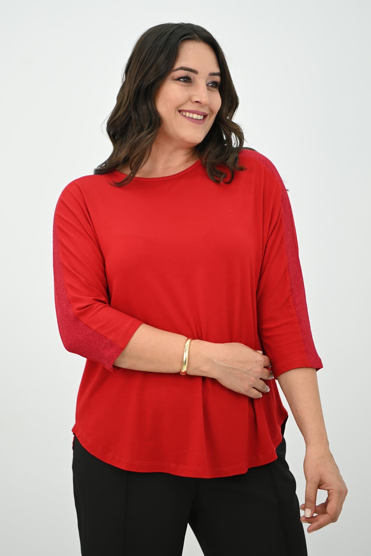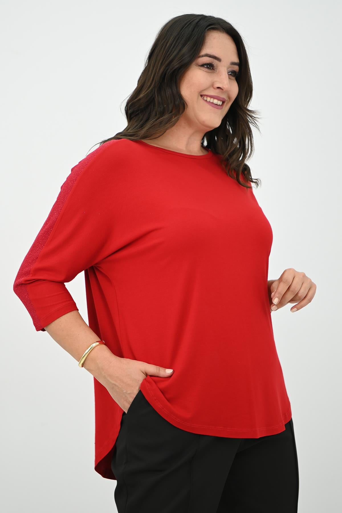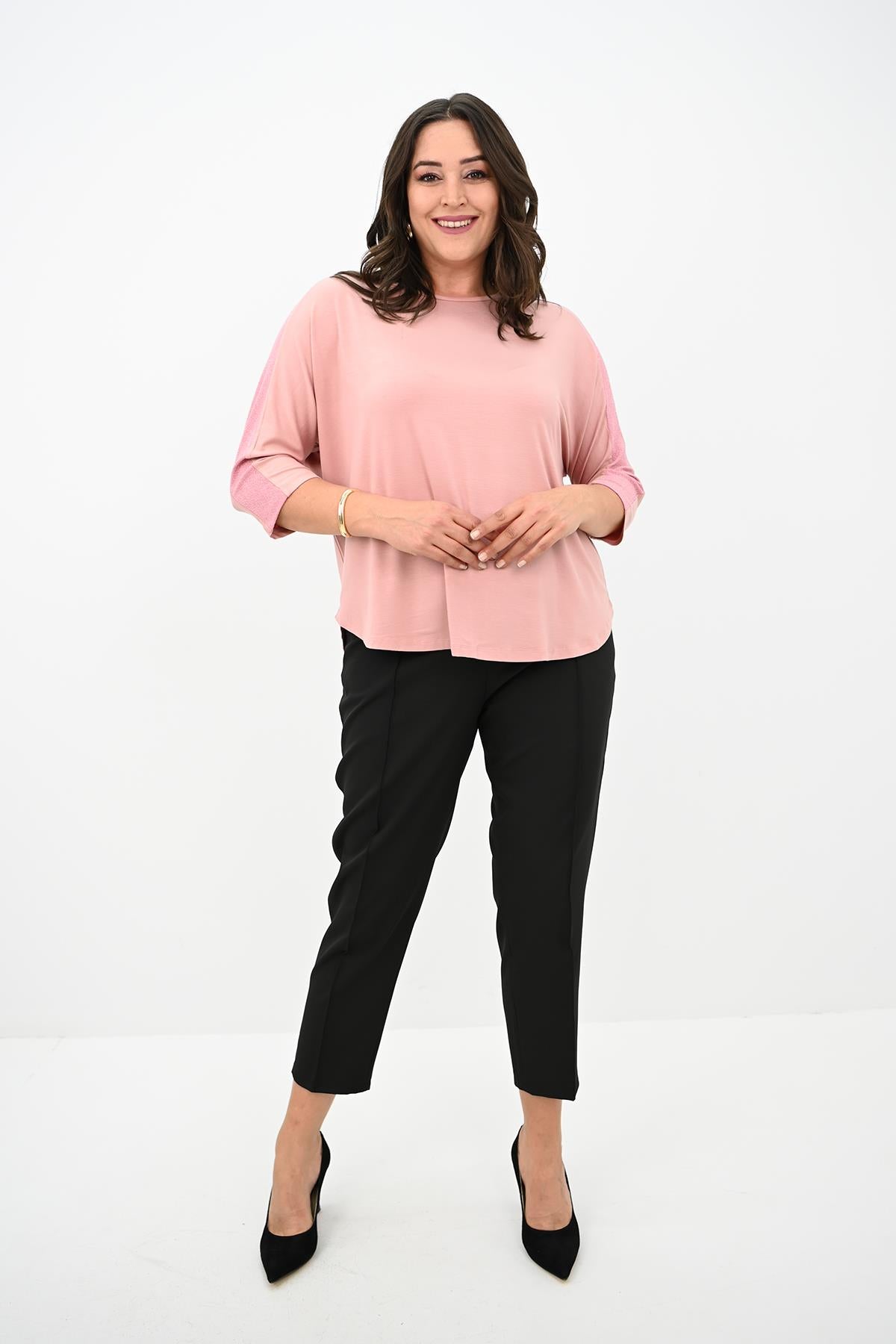 Kadın Büyük Beden Kolları Sim Detaylı Bluz 1855
