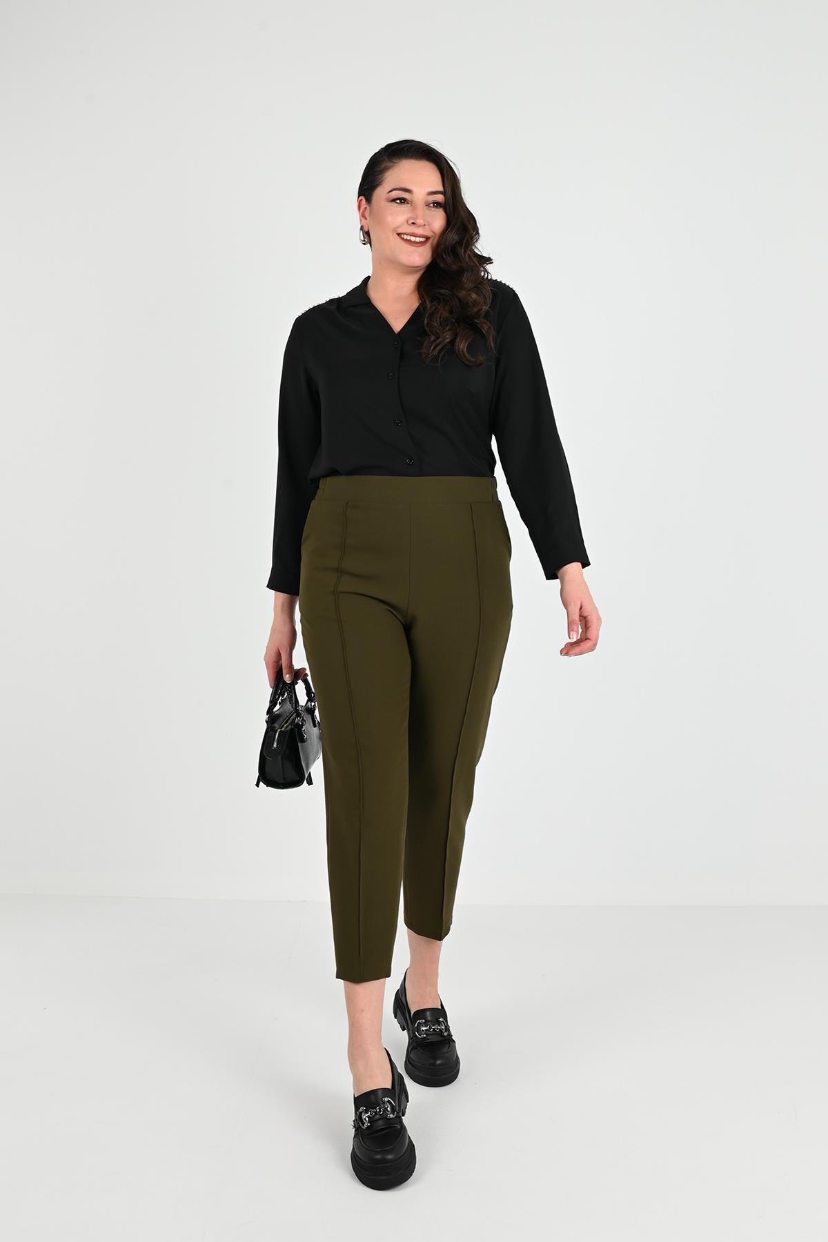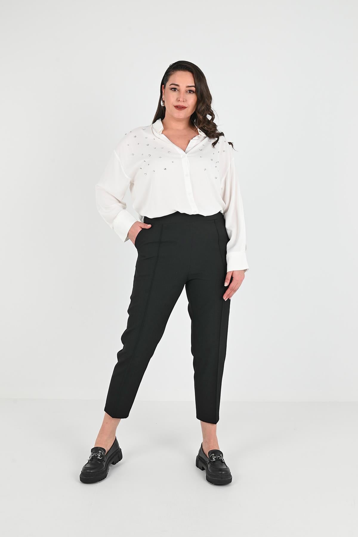 Kadın Büyük Beden Şeritli Kumaş Pantolon 6228-24