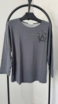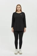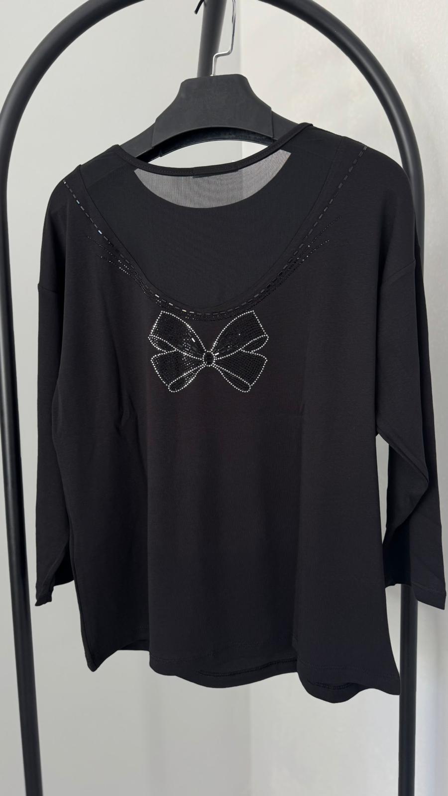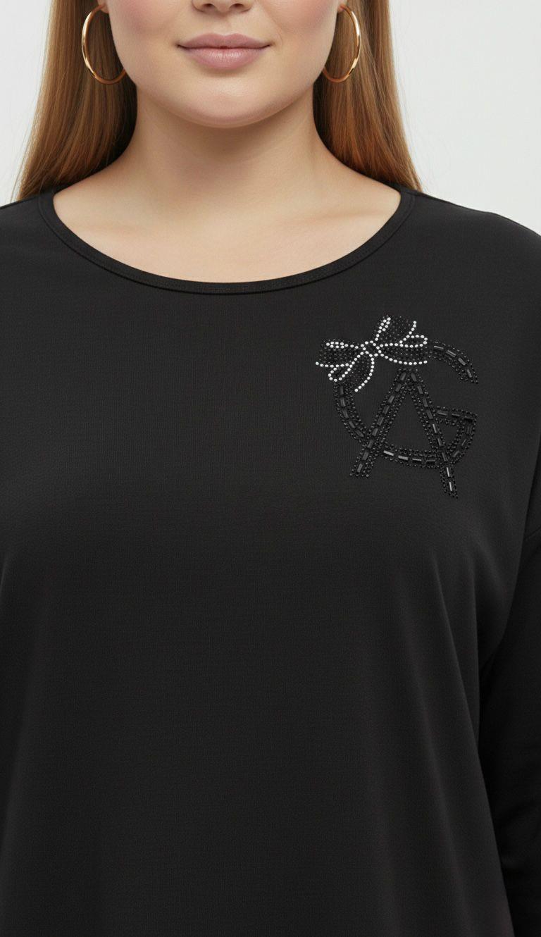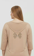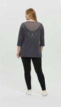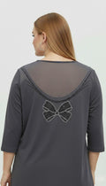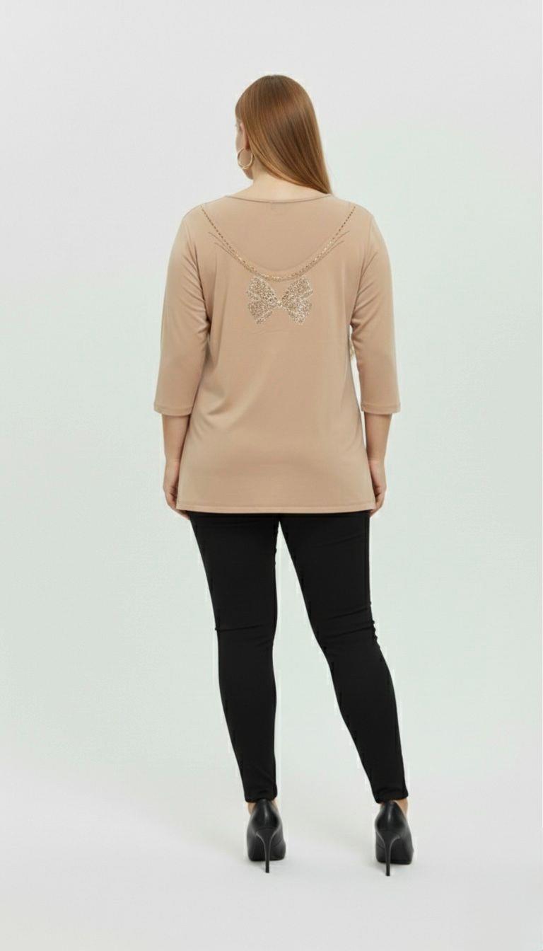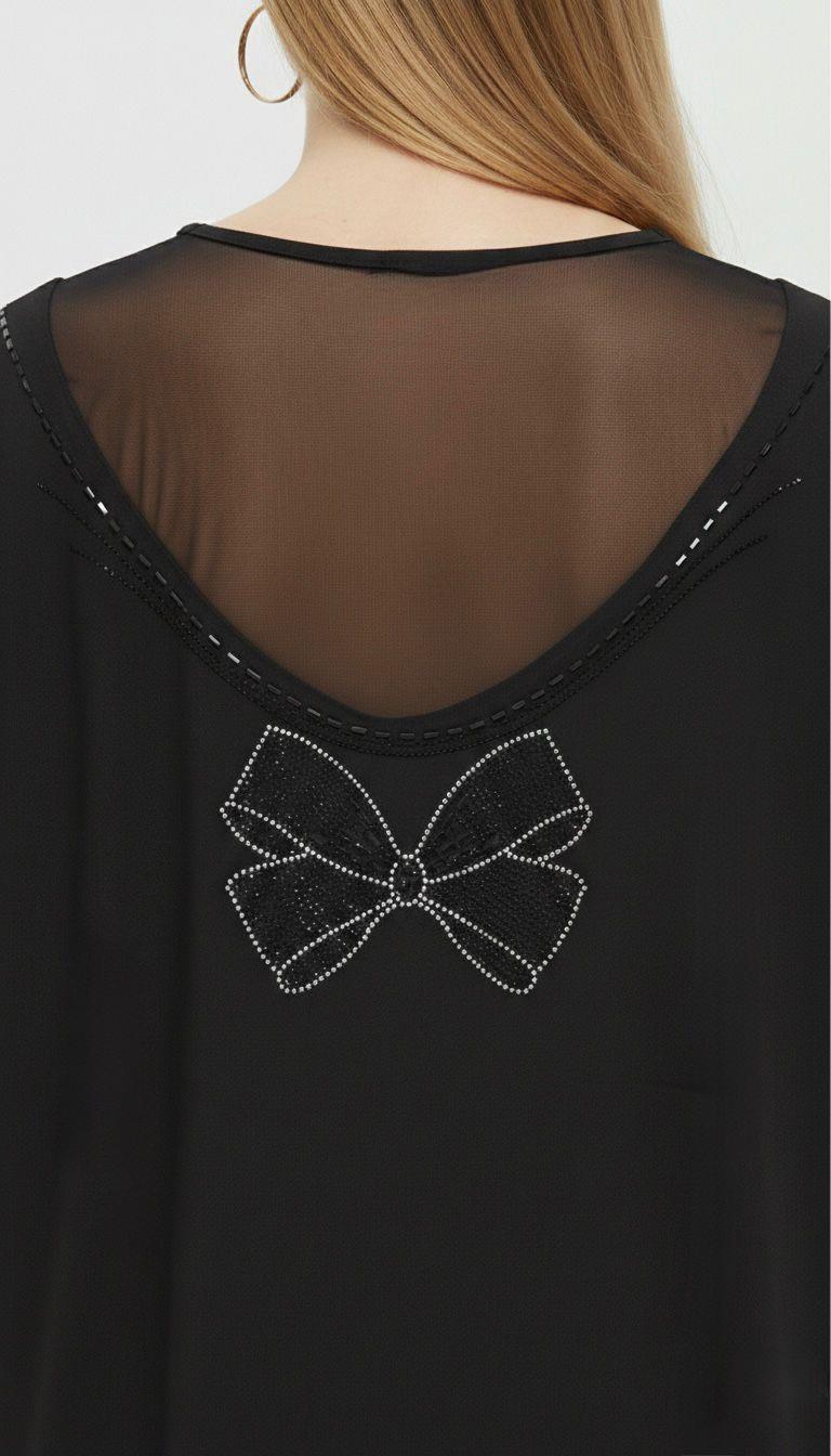 Kadın Büyük Beden Sırtı V Tül ve Taş Baskı Detaylı Truvakar Kol Bluz 2028-26