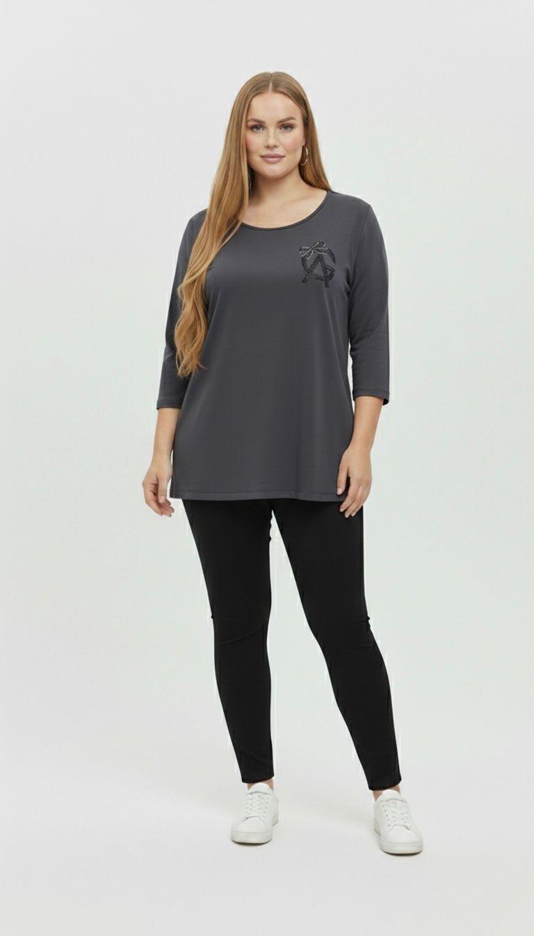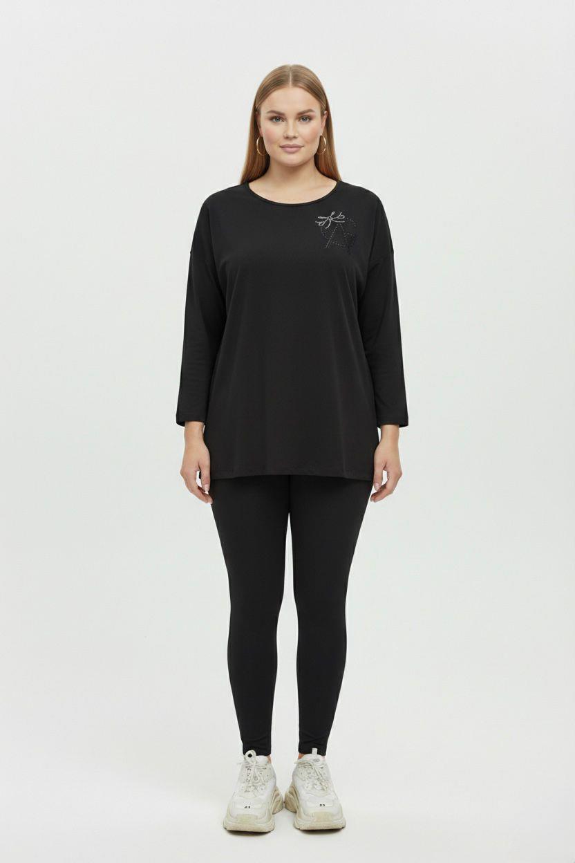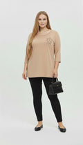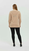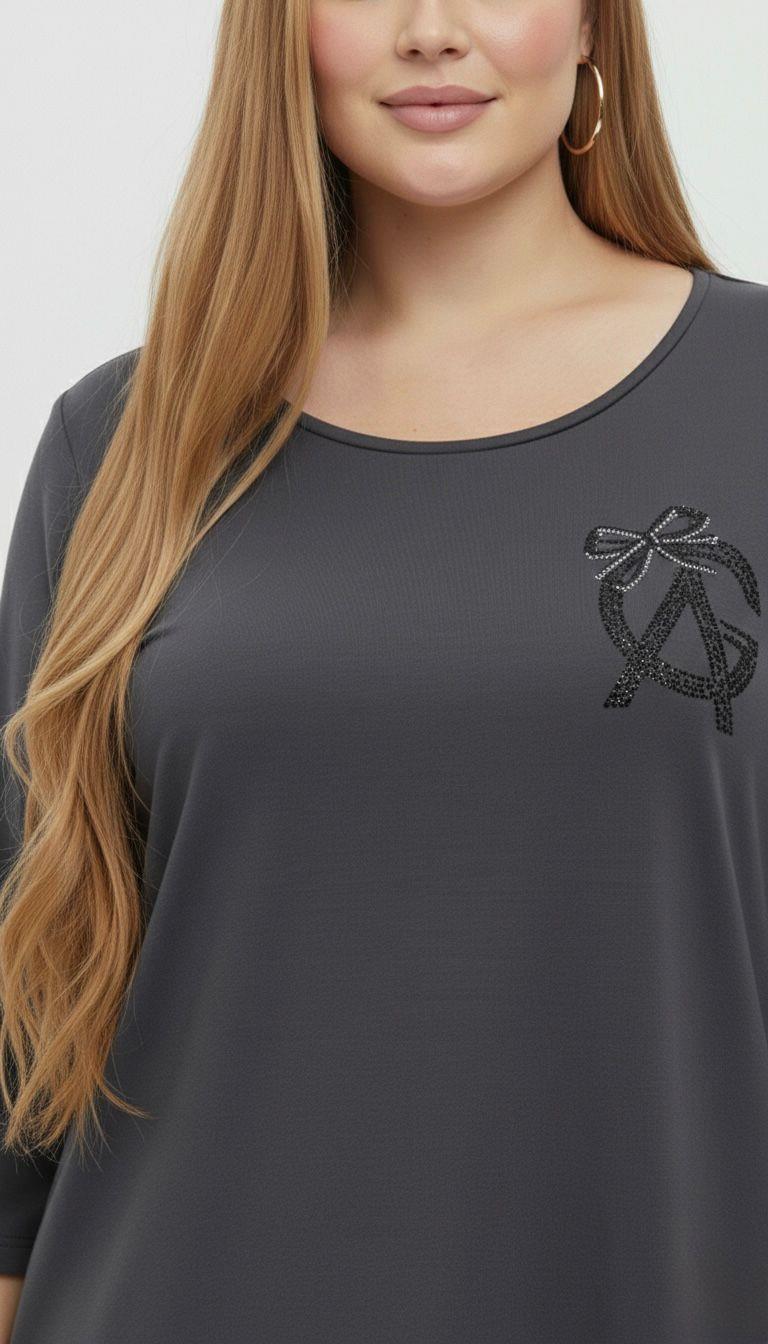 Gündüzden geceye her ortama uyum sağlayacak bu bluz, 42-50 bedene uyumludur. Bluzun ön kısmında şık bir taş baskı amblem bulunurken, arka kısmında derin V şeklinde tül detayı ve fiyonk formunda göz alıcı taş yapıştırma baskı yer almaktadır. Arkadaki tül ve taş işleme detayları, bluza sofistike ve feminen bir hava katarak özel günlerde de tercih edilmesini sağlar. Rahat hareket imkanı sunan yuvarlak yaka kesimi ve modern bir görünüm sağlayan truvakar kol yapısına sahiptir. Cildinize dost, yumuşak dokulu kumaşı sayesinde gün boyu konforlu bir kullanım sunar. Manken ’in üzerindeki beden 44 (XXL Beden) bedendir. (Bedenler arası +/- 2cm fark olmaktadır.) Model Ölçüleri Boy: 1,72 Kilo: 90 Göğüs: 104 Bel: 88 Basen: 115