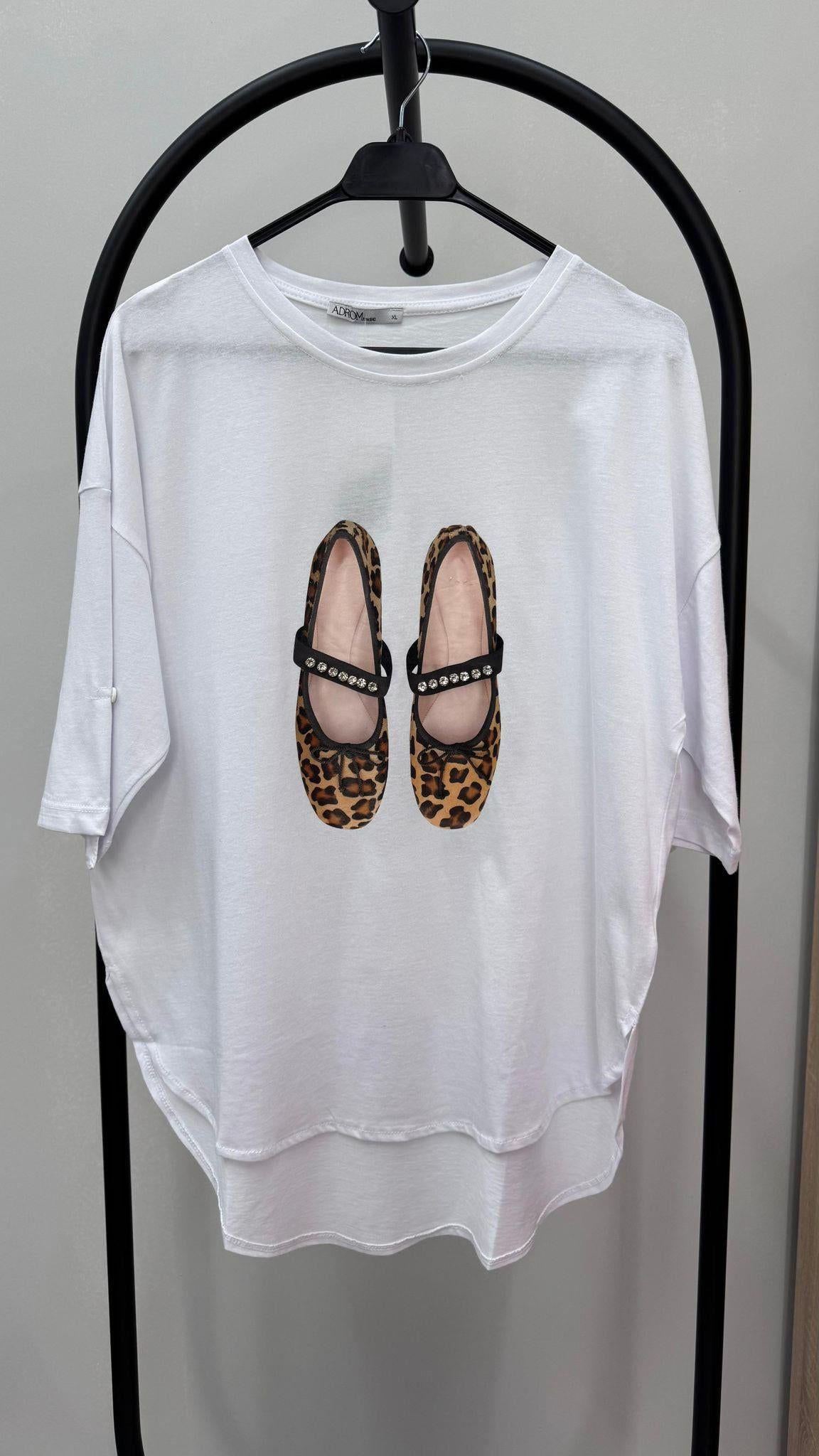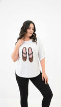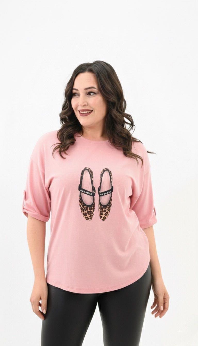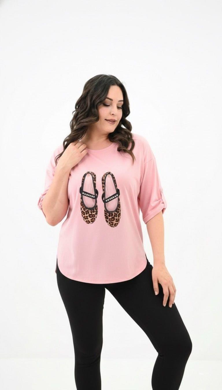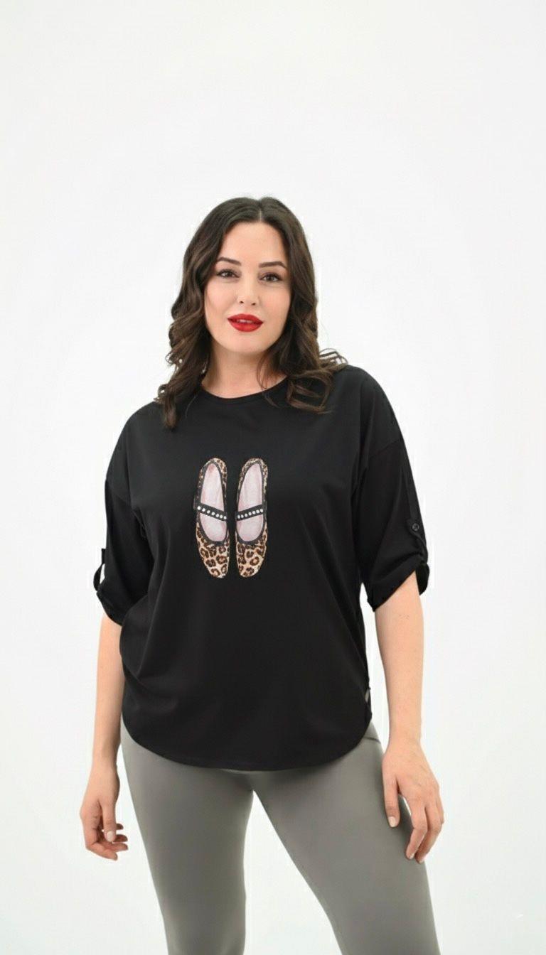 Kadın Büyük Beden Taş İşlemeli Baskı Desenli Oval Kesim Tişört 1927-25