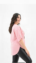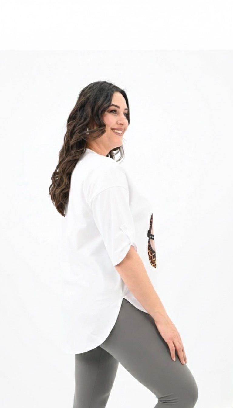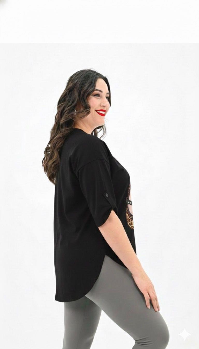 Şıklığı ve rahatlığı bir arada sunan bu büyük beden tişört, 42-50 bedene uyumludur. Bisiklet yaka formu sayesinde her stile uyum sağlarken, taş işleme ve baskı detayları ürüne göz alıcı bir görünüm kazandırır. Duble kol tasarımı, düğme katlamalı yapısıyla hem spor hem de şık bir hava oluşturur. Önü kısa arkası uzun oval kesimi, vücudu ideal şekilde sararak konforlu ve akıcı bir duruş sunar. Yumuşak kumaştır. Manken ’in üzerindeki beden 44 bedendir. (Bedenler arası +/- 2cm fark olmaktadır.) Model Ölçüleri Boy: 1,72 Kilo: 90 Göğüs: 104 Bel: 88 Basen: 115