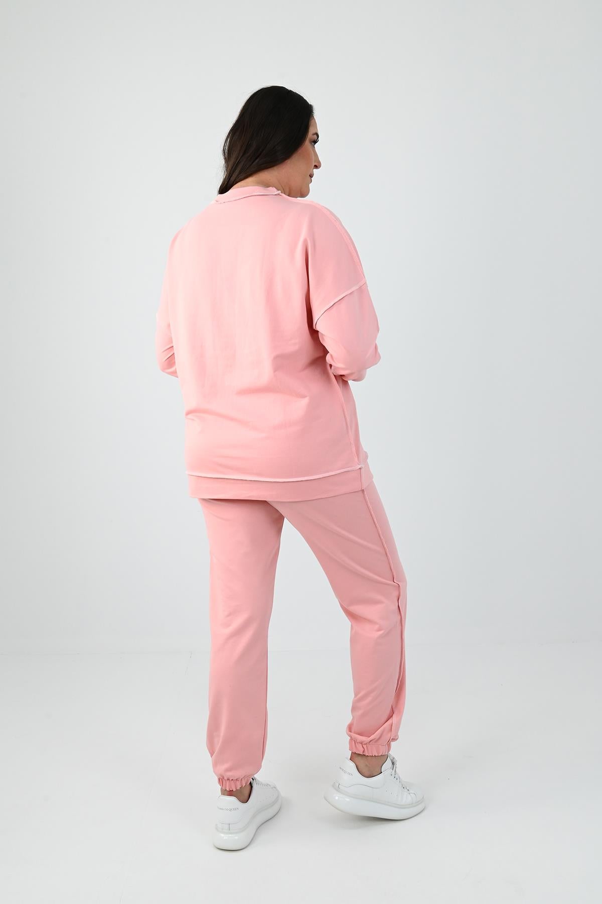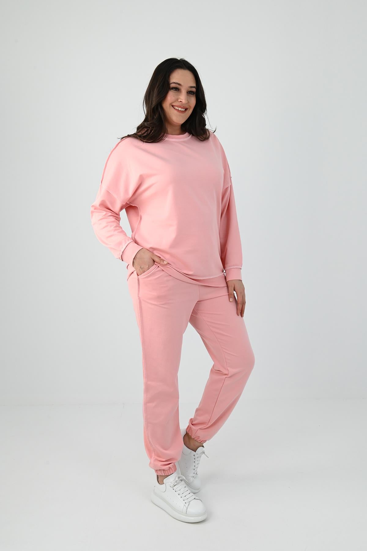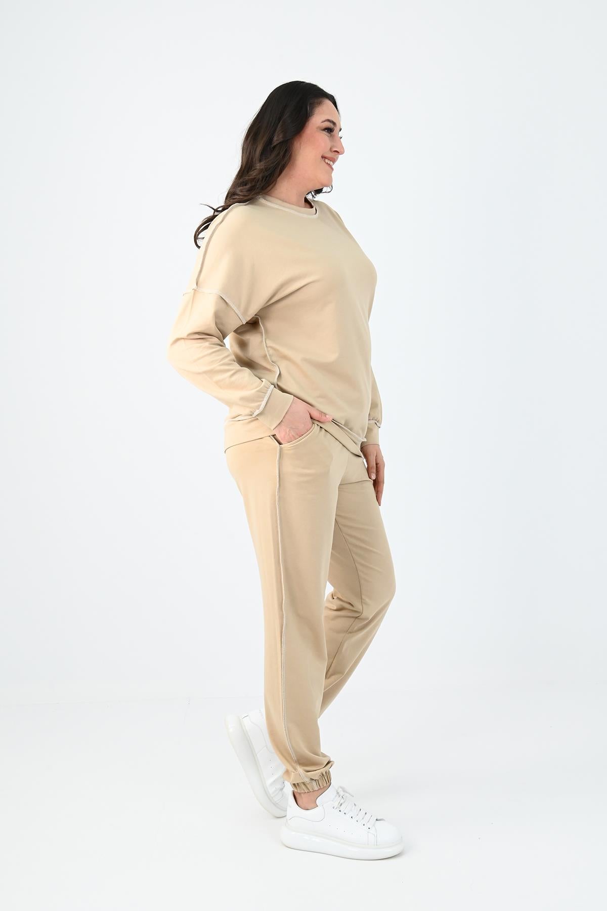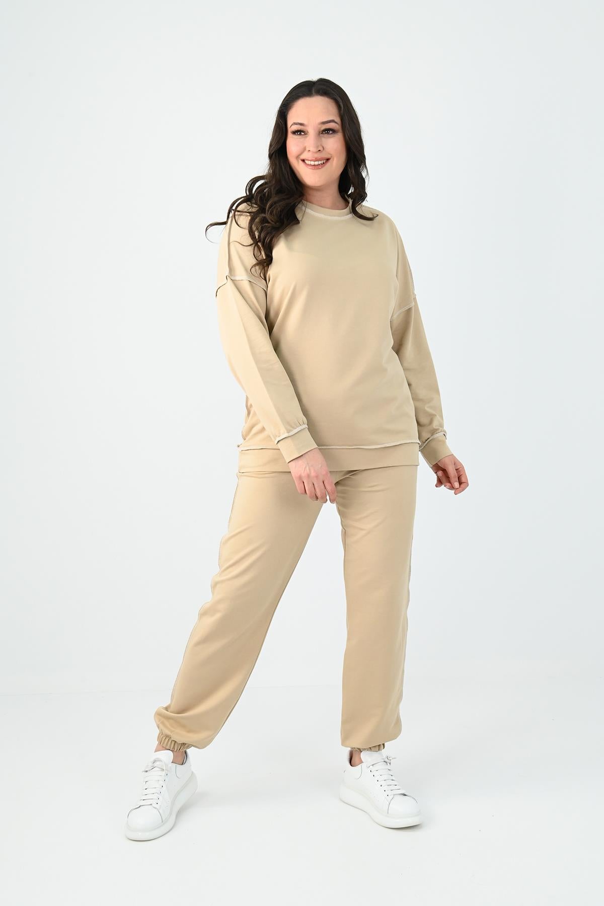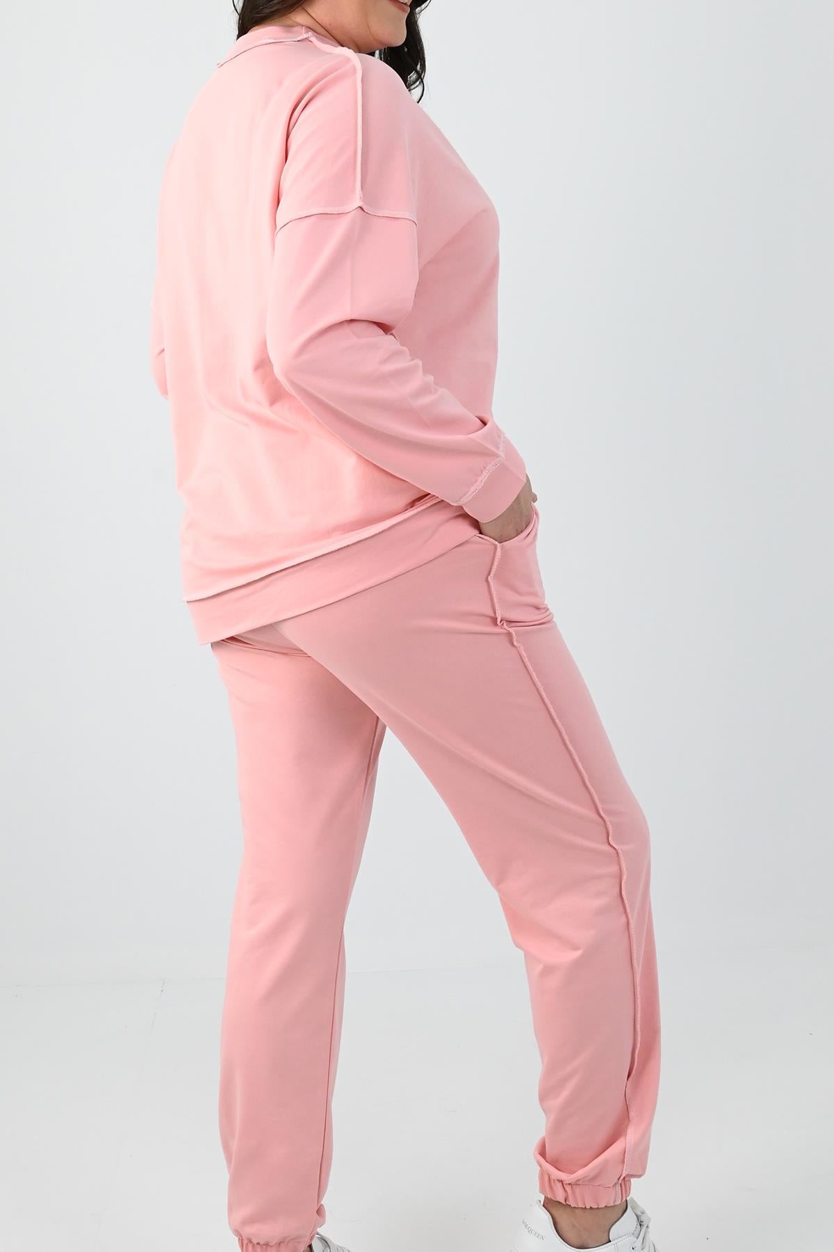 Kadın Büyük Beden Ters Dikişli Eşofman Takımı 8082