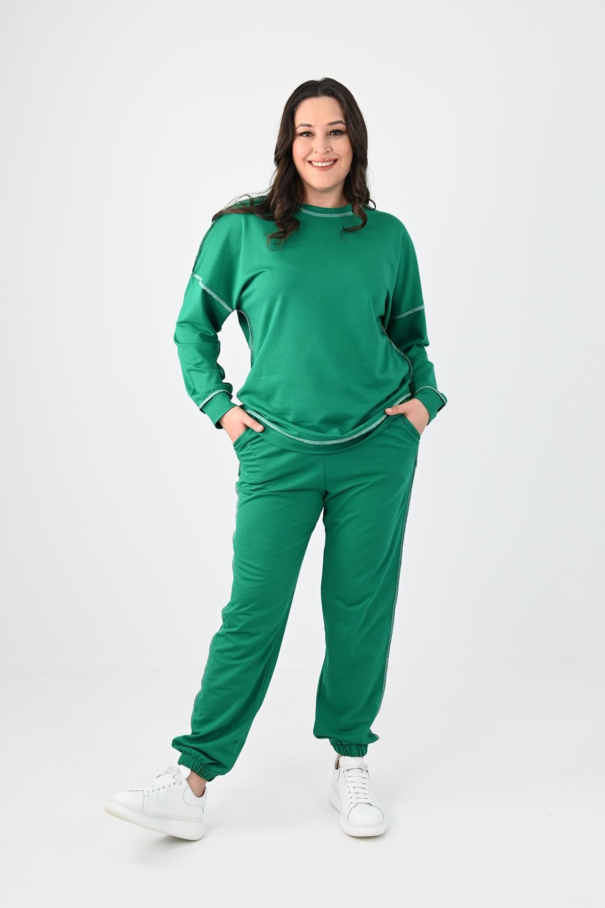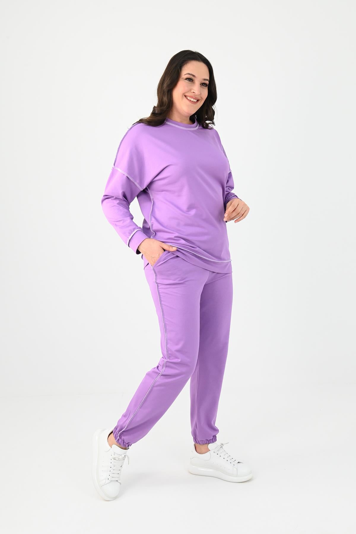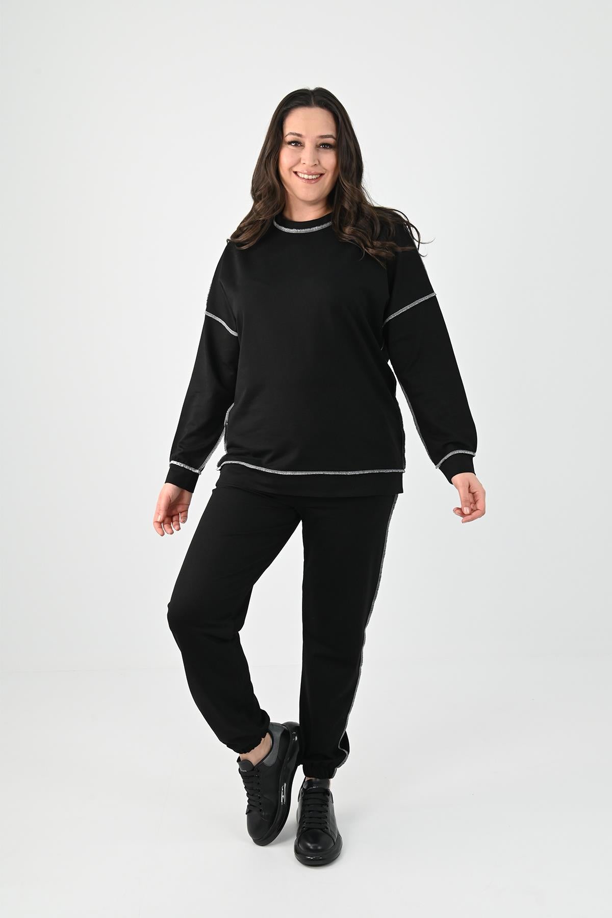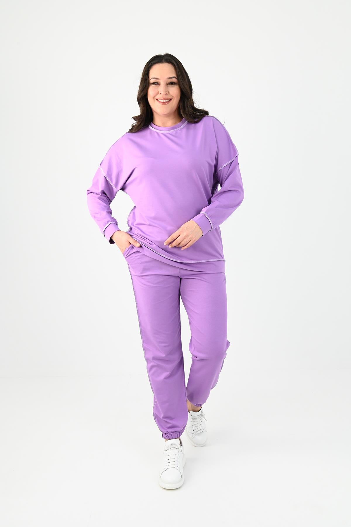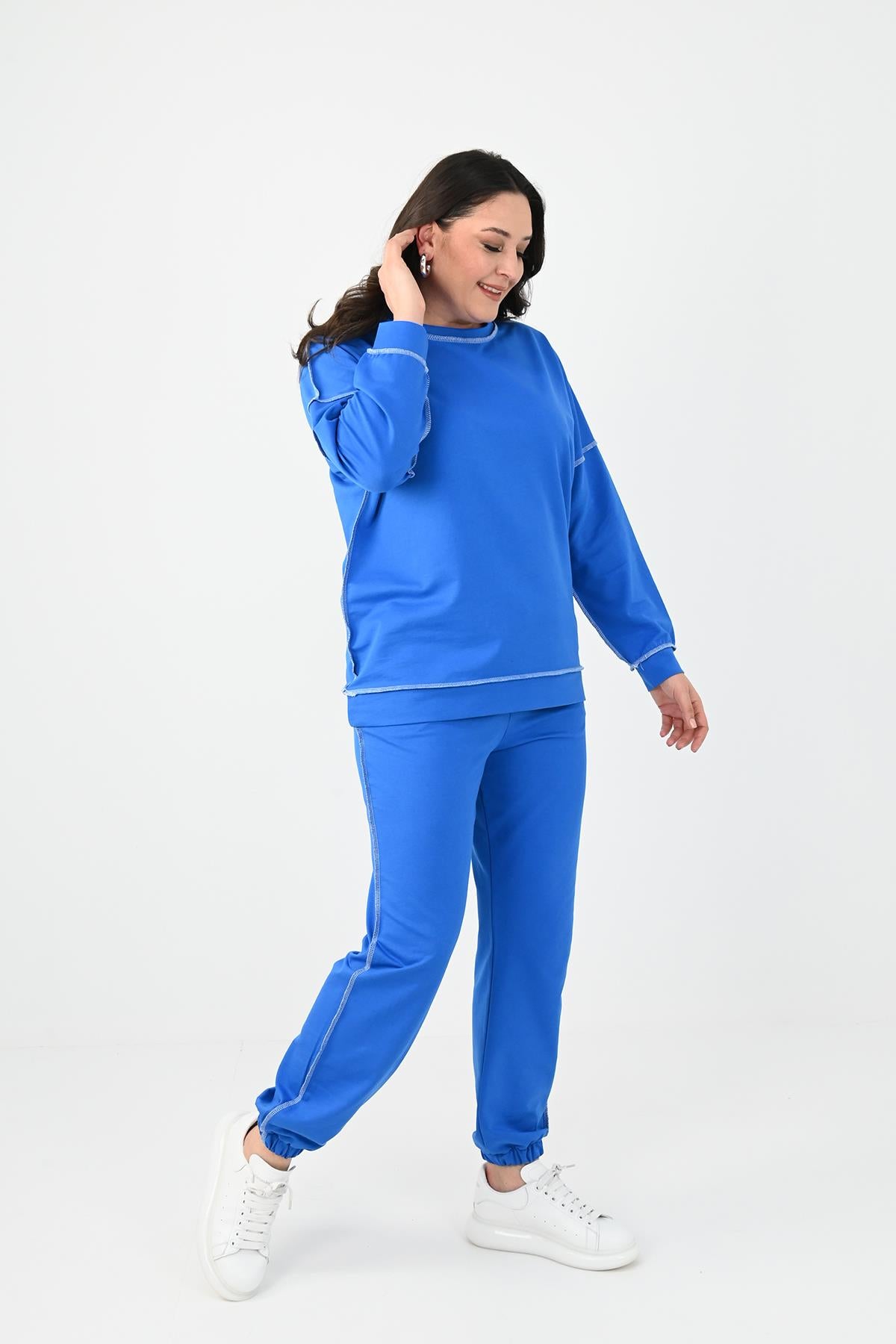 Kadın Büyük Beden Ters Dikişli Eşofman Takımı 8082