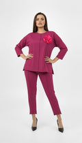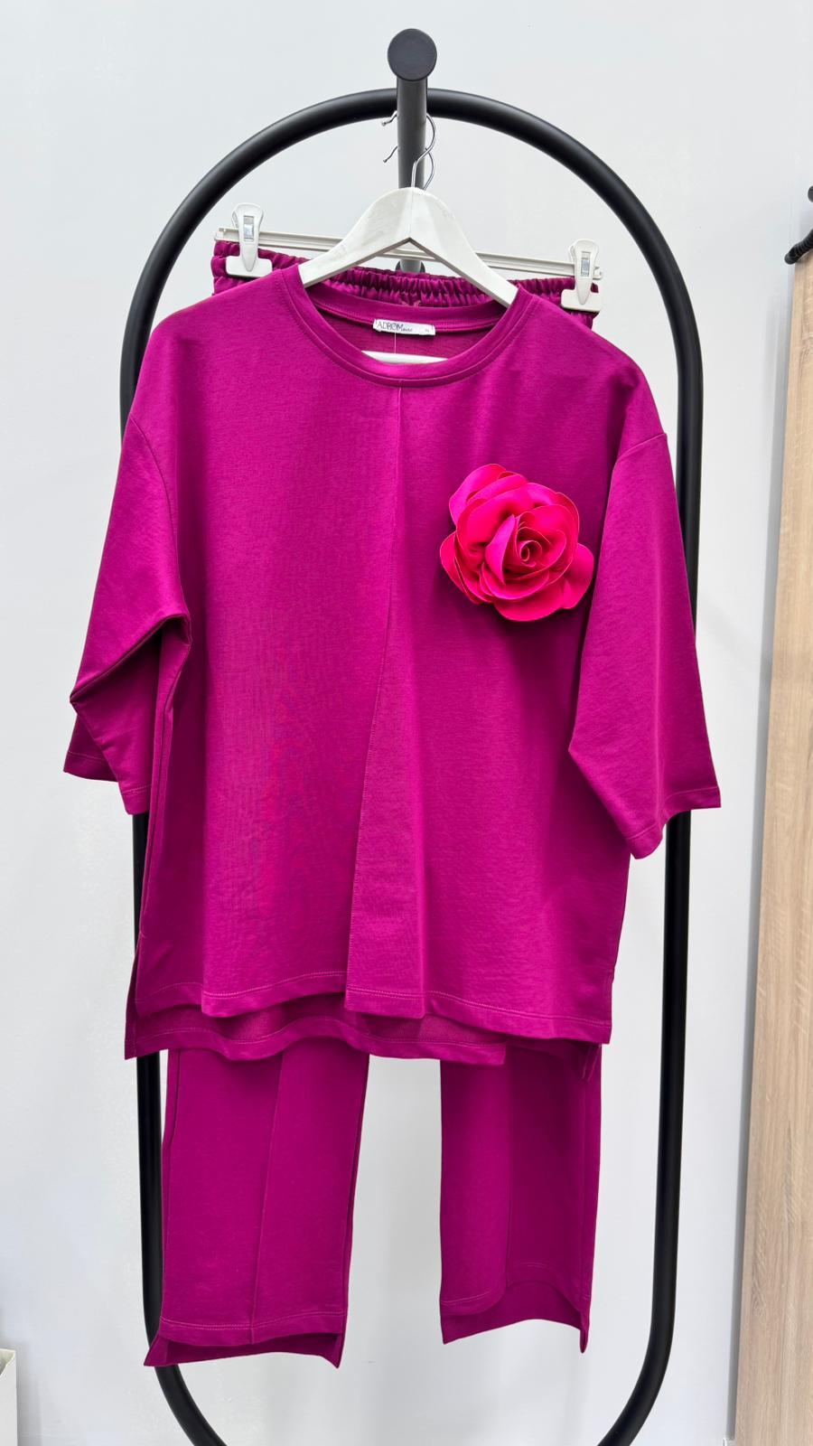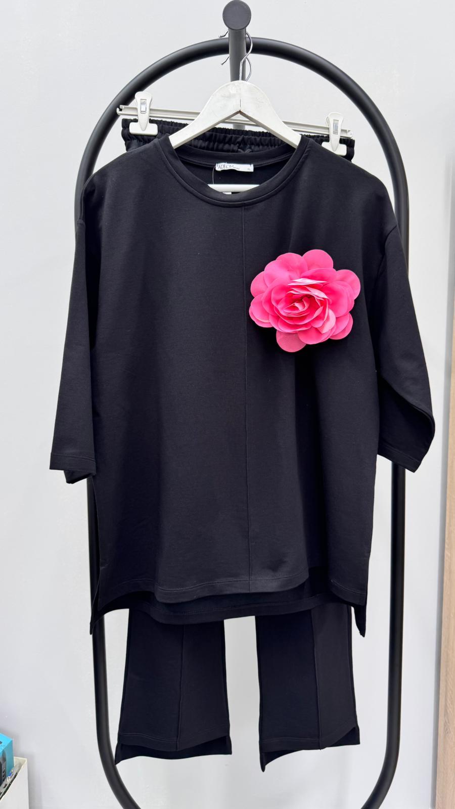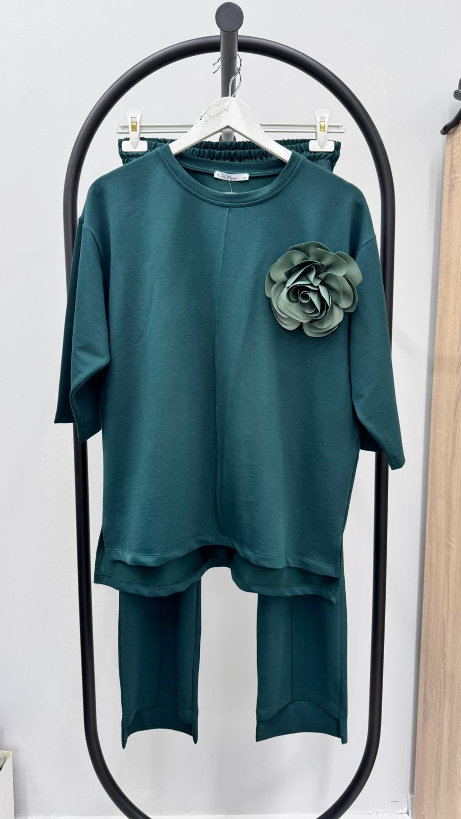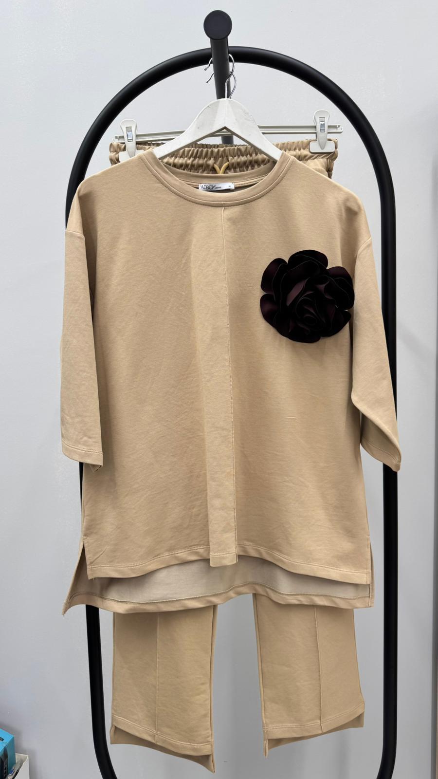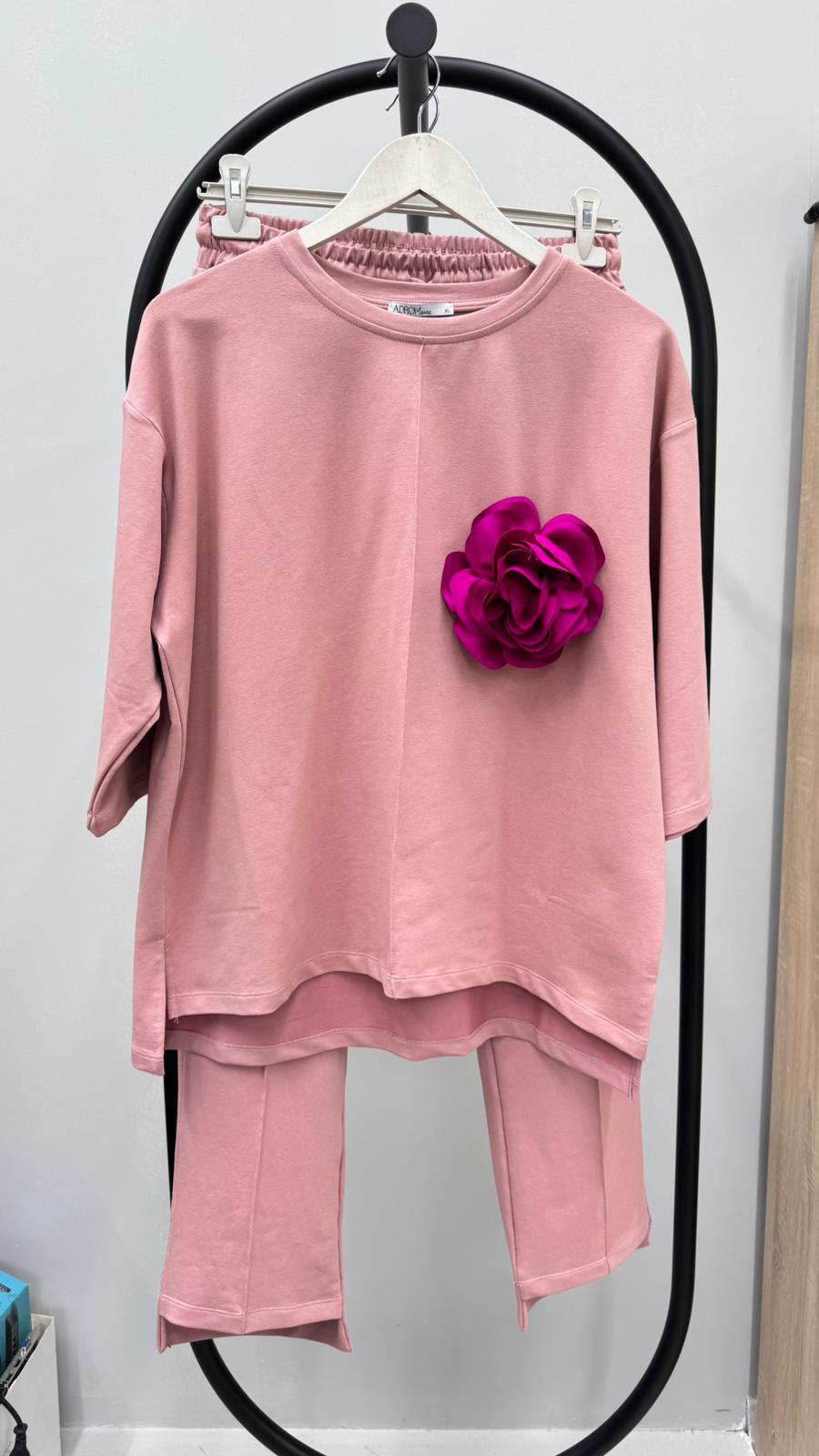 Kadın Büyük Beden Truvakar Kol Çiçek Detaylı İki İplik Eşofman Takımı 8224-26