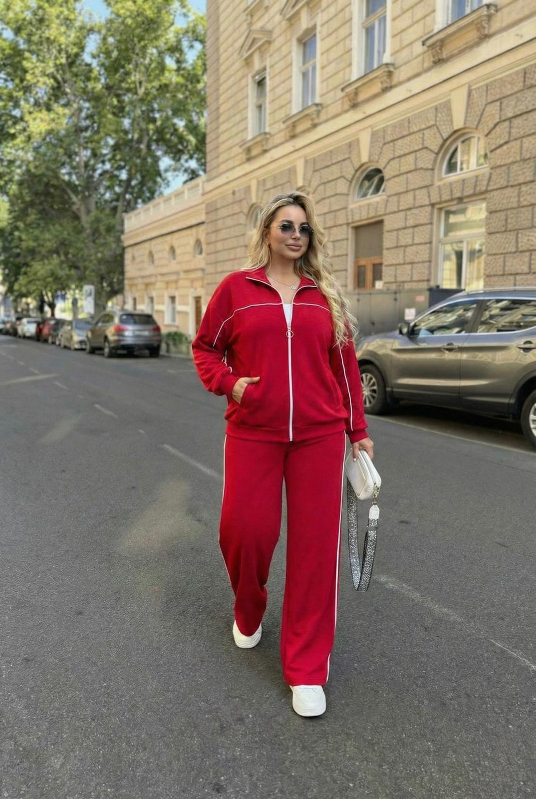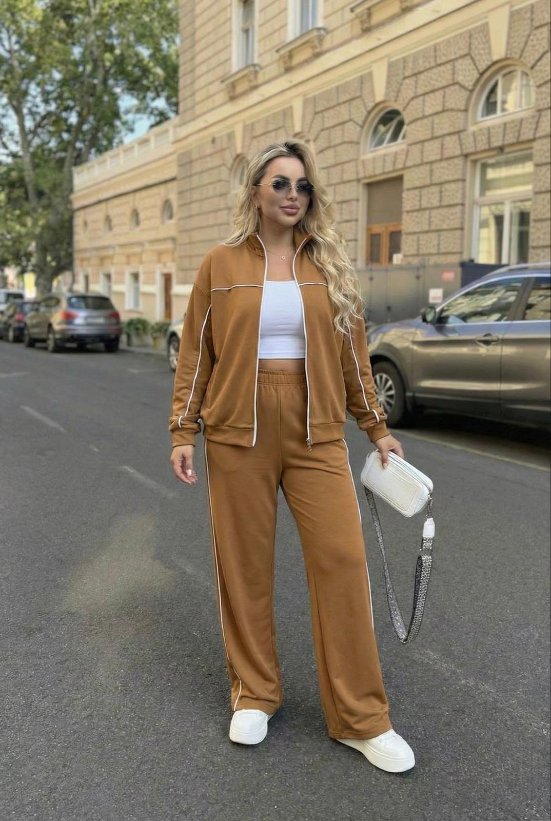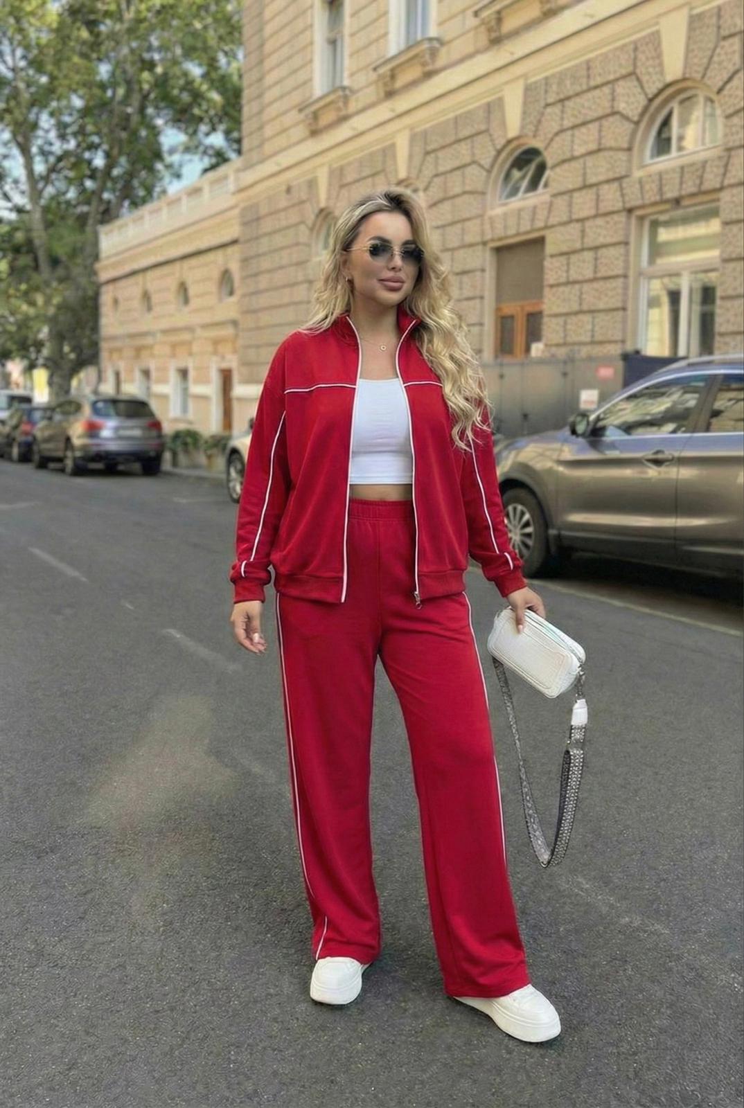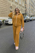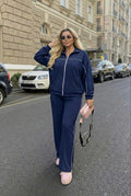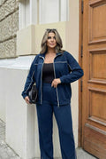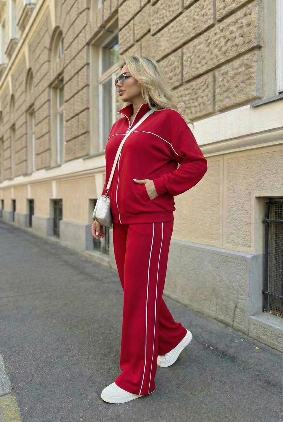 Kadın Büyük Beden Uzun Kollu Fermuarlı Ara Biye Detaylı Bol Paça Eşofman Takımı 8240-26