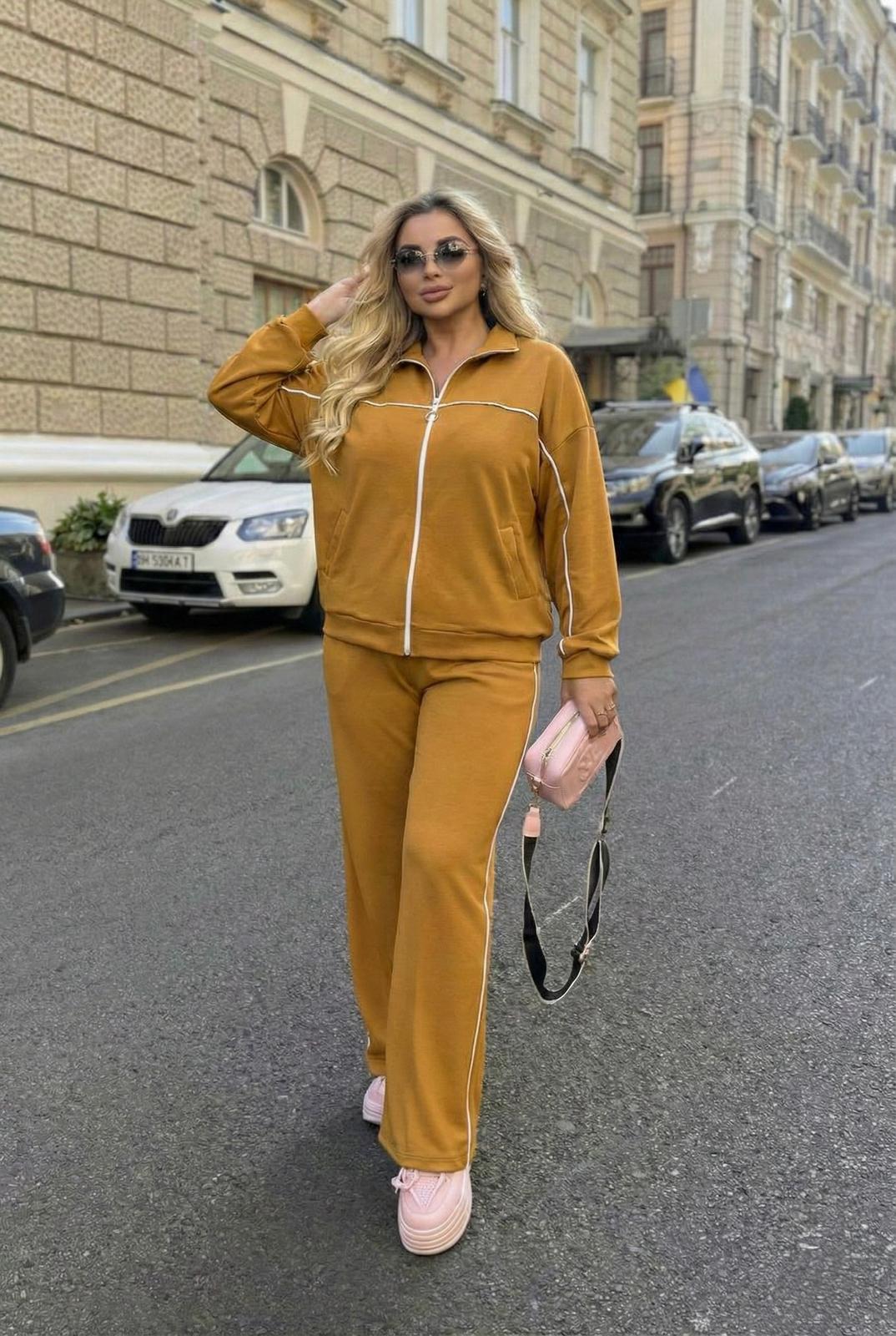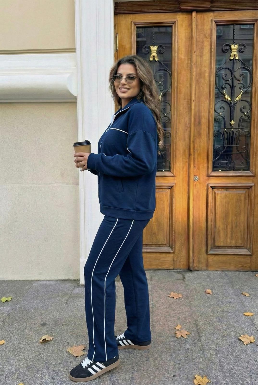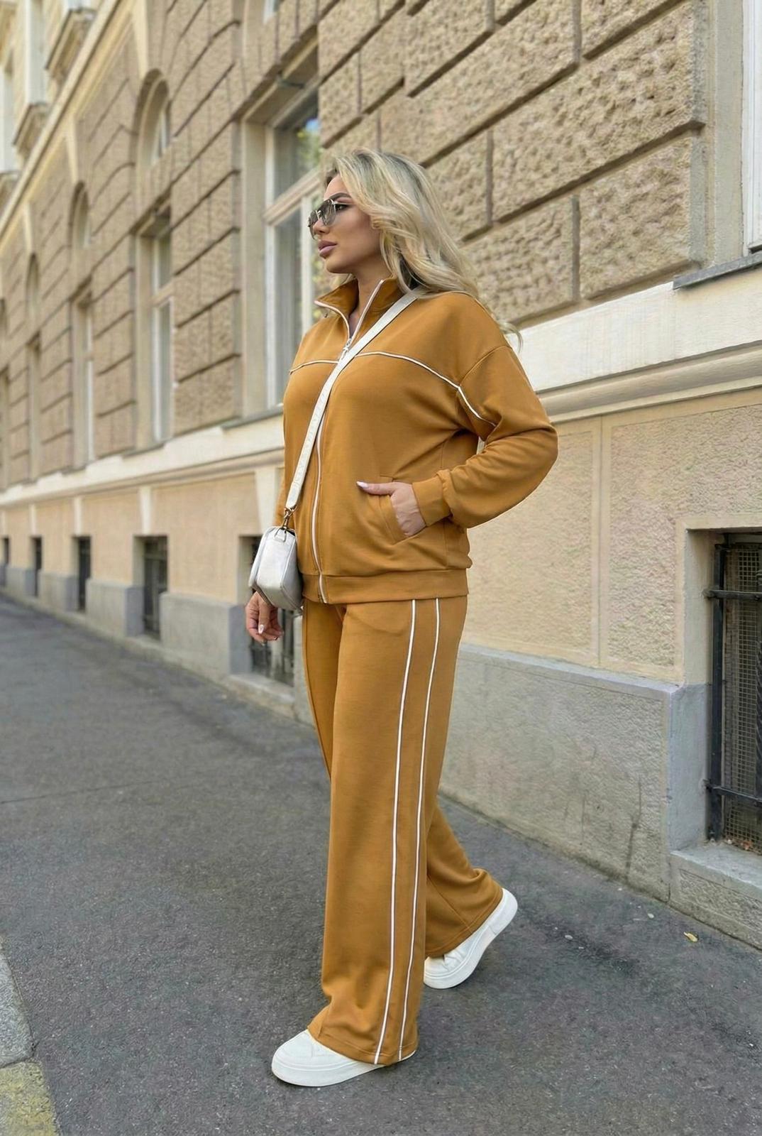 Kadın büyük beden uzun kollu eşofman takımı, 42-50 bedene uyumludur. Üst parçası fermuarlı yapıda olup düşük omuz kesimi sayesinde salaş ve konforlu bir duruş sunar. Ara biye detayları takıma sportif ve dinamik bir görünüm kazandırırken, üst kısmında fonksiyonel cep detayı yer almaktadır. Alt parçası bol paça formunda tasarlanmış olup beli lastiklidir ve gün boyu rahat kullanım sağlar. Yumuşak dokulu, esnek ve nefes alabilen kumaşı sayesinde hem ev giyiminde hem de günlük kombinlerde keyifle tercih edilebilir. Manken ’in üzerindeki beden 44 bedendir. (Bedenler arası +/- 2cm fark olmaktadır.) Model Ölçüleri Boy: 1,72 Kilo: 90 Göğüs: 104 Bel: 88 Basen: 115