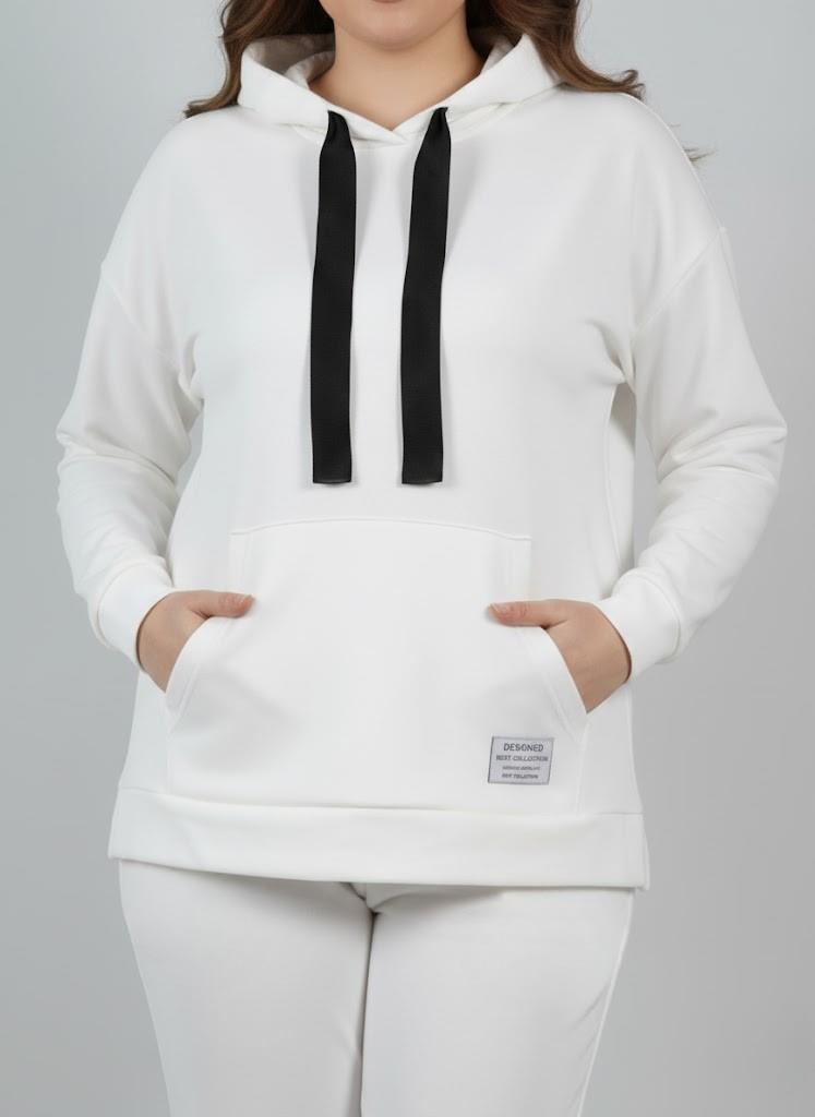 Kadın Büyük Beden Uzun Kollu Kapüşonlu Eşofman Takımı 8228-26