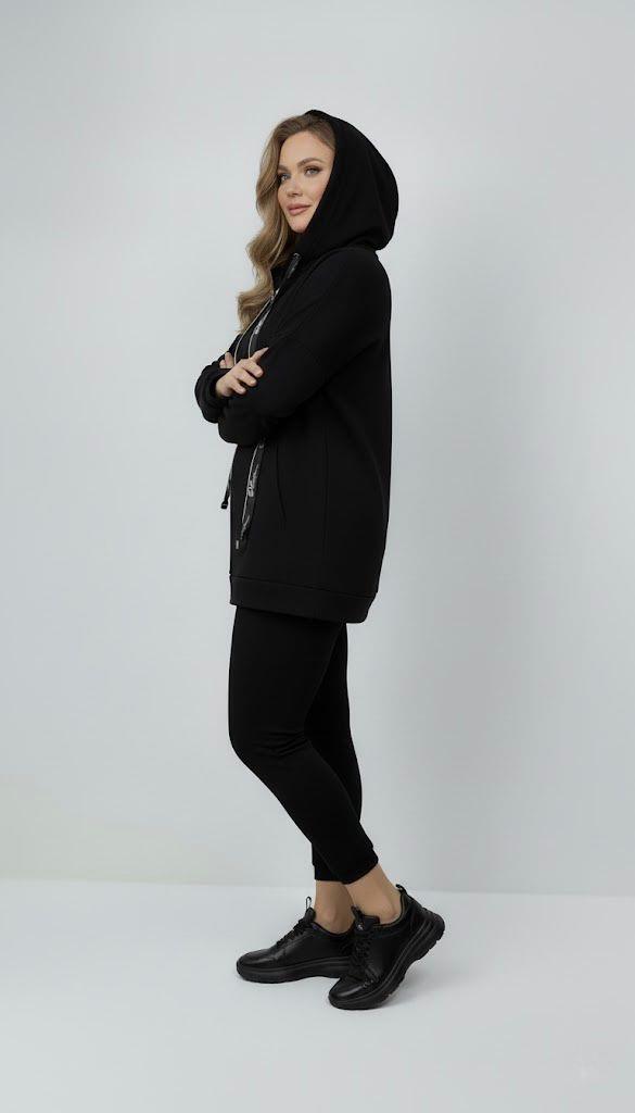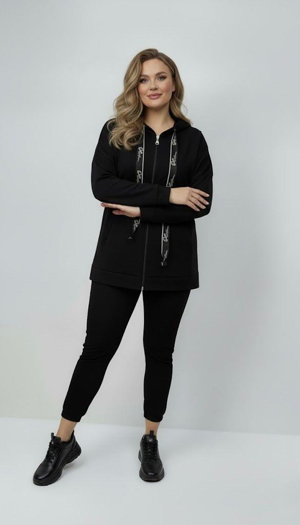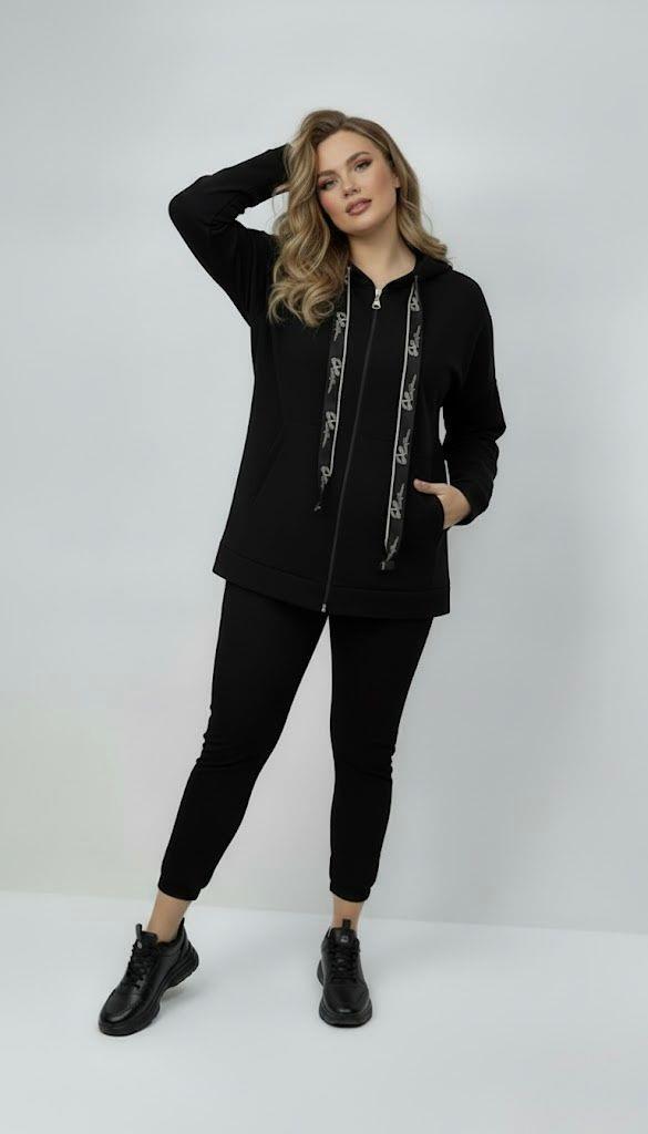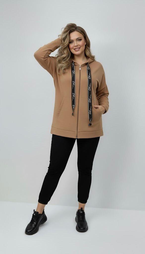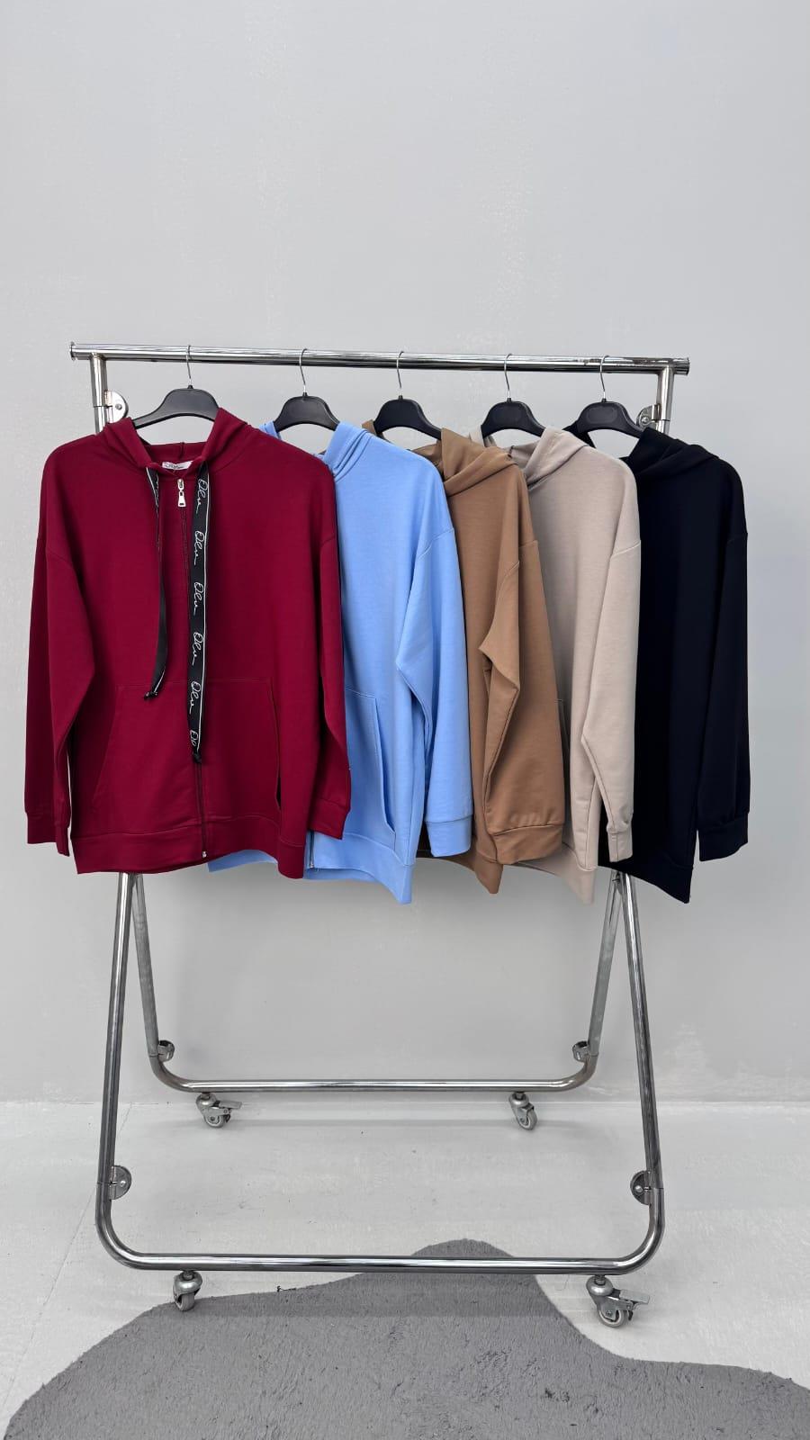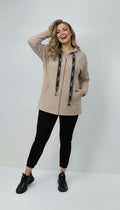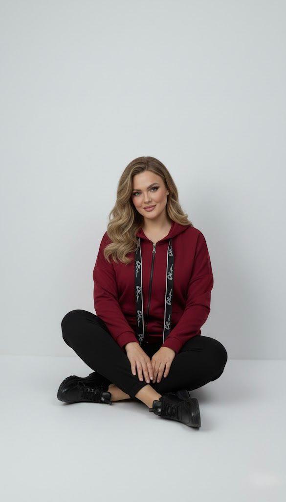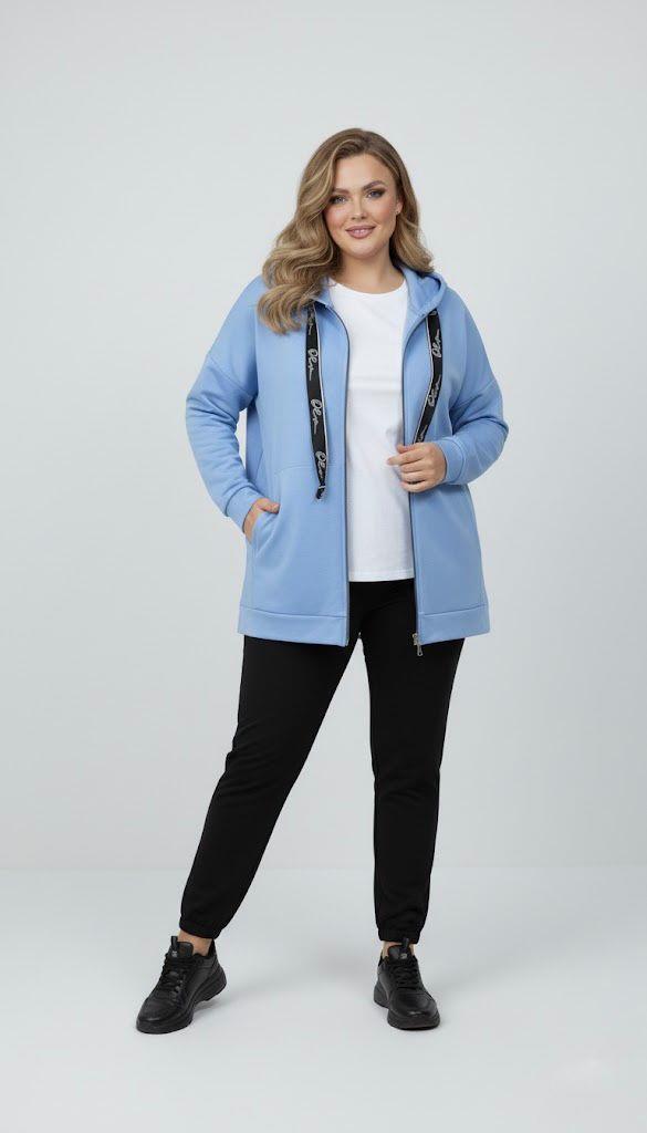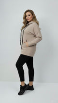 Kadın Büyük Beden Uzun Kollu Kapüşonlu Fermuar Detaylı Sweatshirt 2007