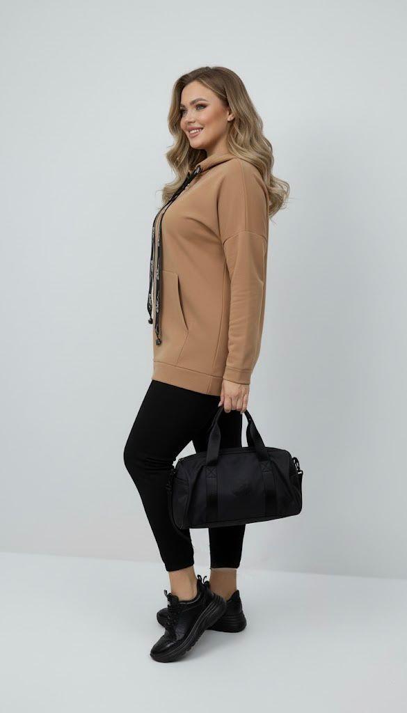 Kadın büyük beden uzun kollu sweatshirt, 42-52 bedene uyumludur. Ön kısmında kanguru cep ve fermuar detayı bulunur. Kapüşon kısmında yazı baskılı geniş kurdele aksesuar olarak kullanılmıştır ve modele dinamik bir görünüm kazandırır. Yumuşak dokulu iki iplik penye kumaş yapısı sayesinde gün boyu rahat bir kullanım sağlar. Günlük kombinlerde tayt, jean veya eşofman altlarıyla kolayca uyum sağlar. Manken ’in üzerindeki beden 44 bedendir. (Bedenler arası +/- 2cm fark olmaktadır.) Model Ölçüleri Boy: 1,72 Kilo: 90 Göğüs: 104 Bel: 88 Basen: 115